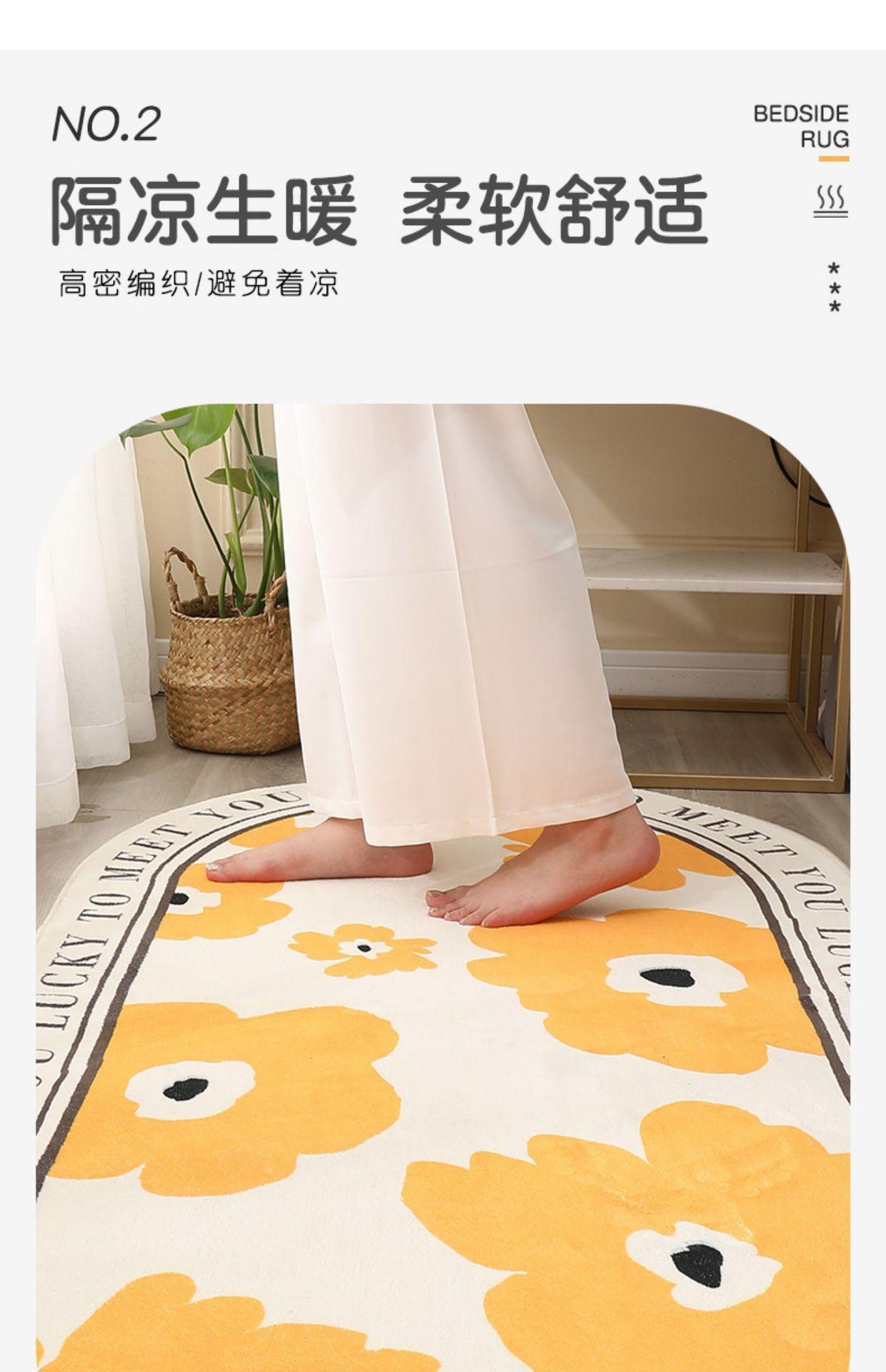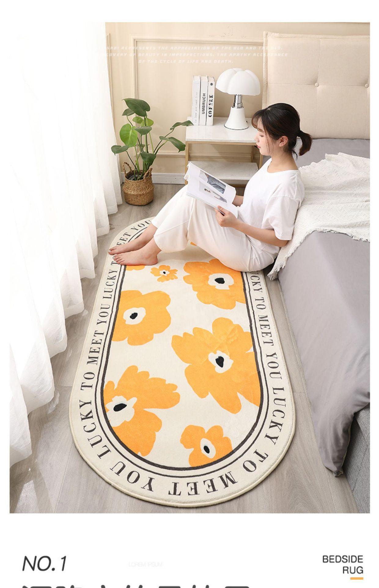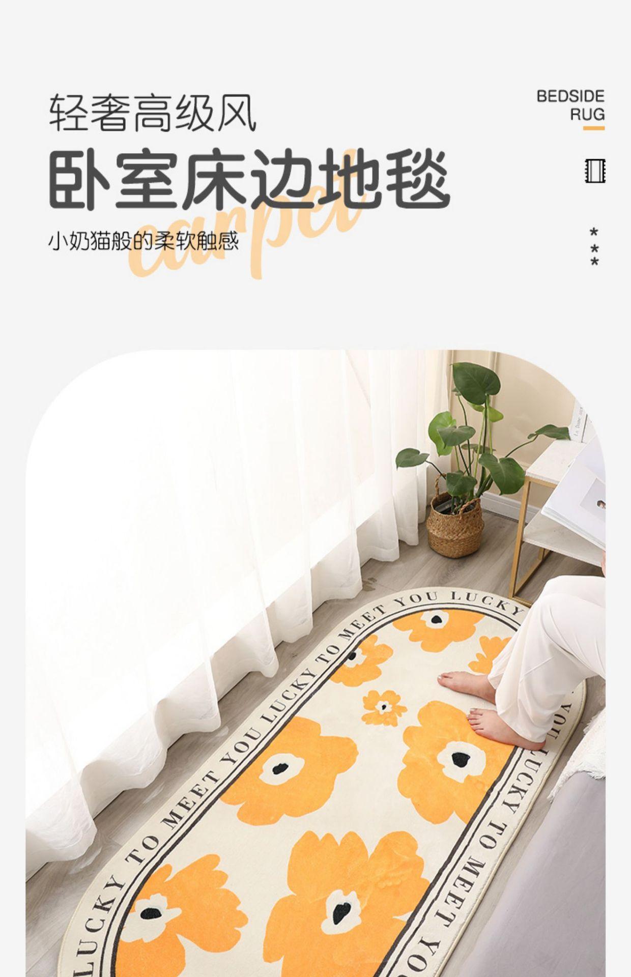 Alfombra Larga Dormitorio Estilo Ins Manta de Cabecera Habitación Ovalada Alfombra Delantera de Cama Lujo Ligero Alto Nivel Sentarse y Dormir
