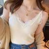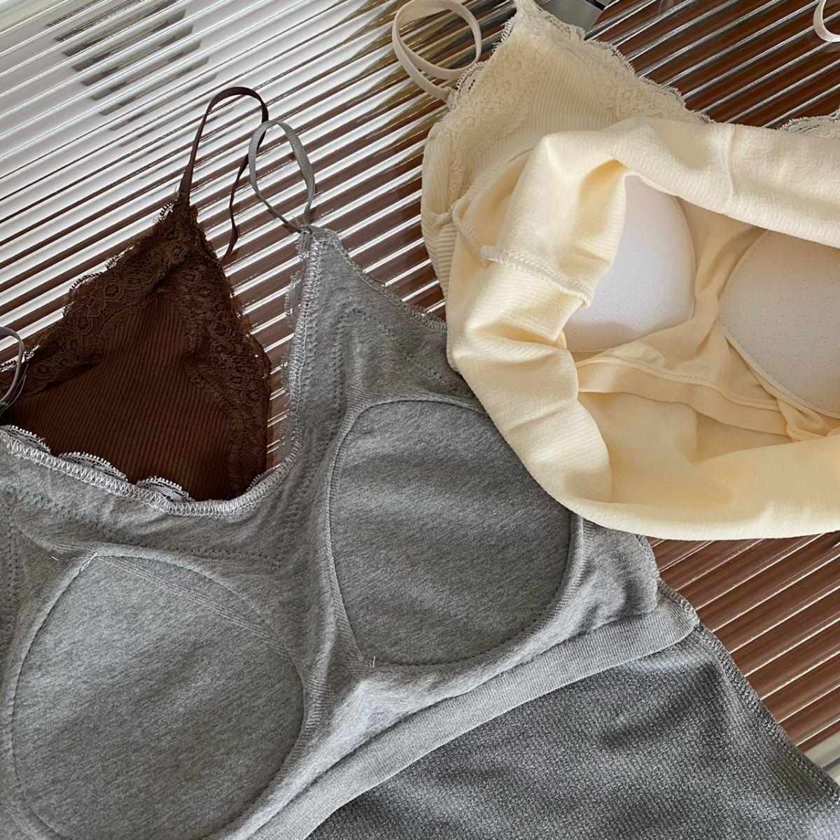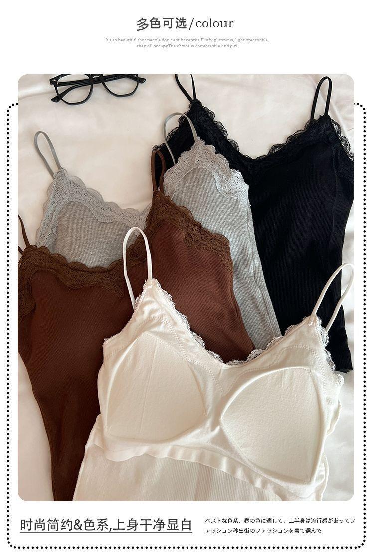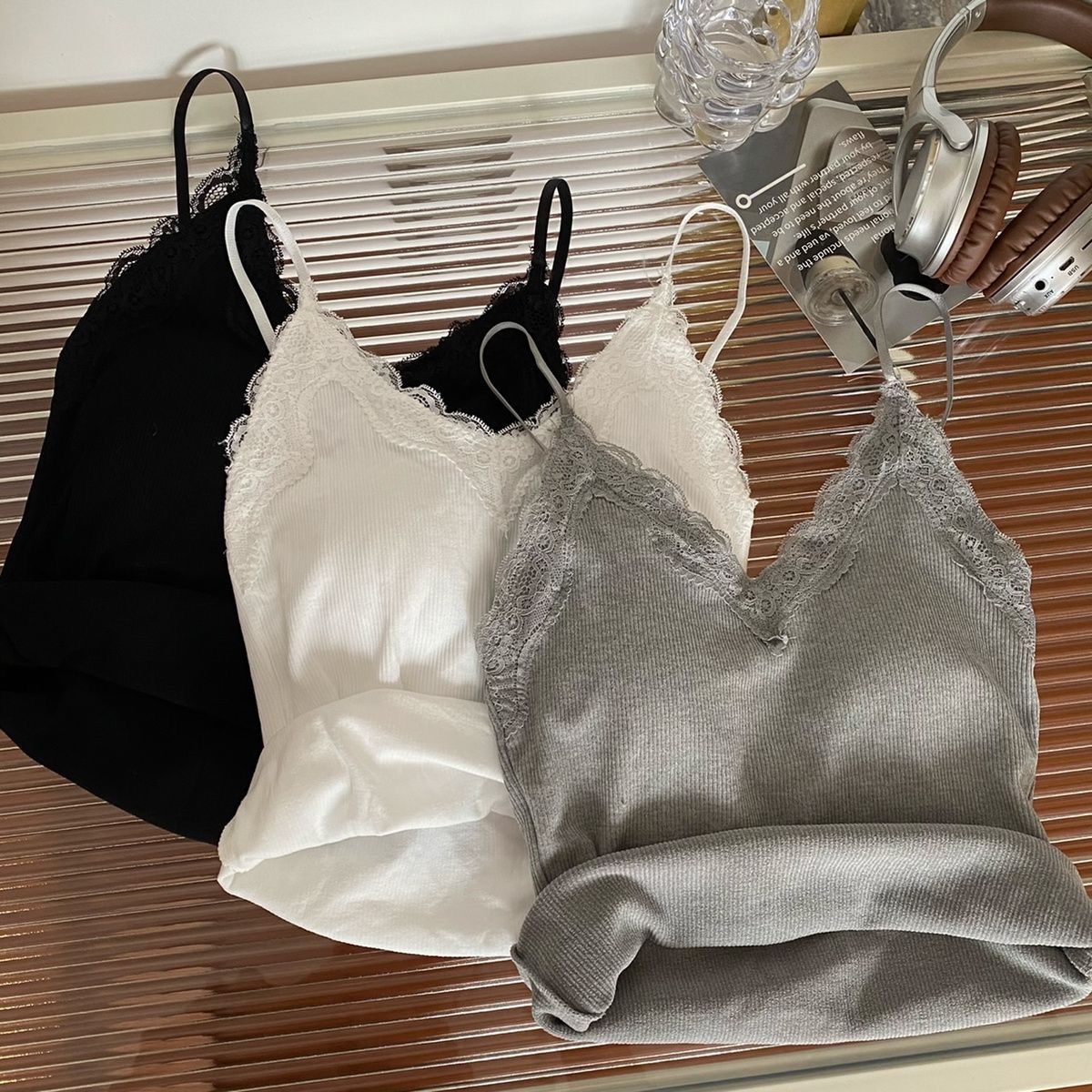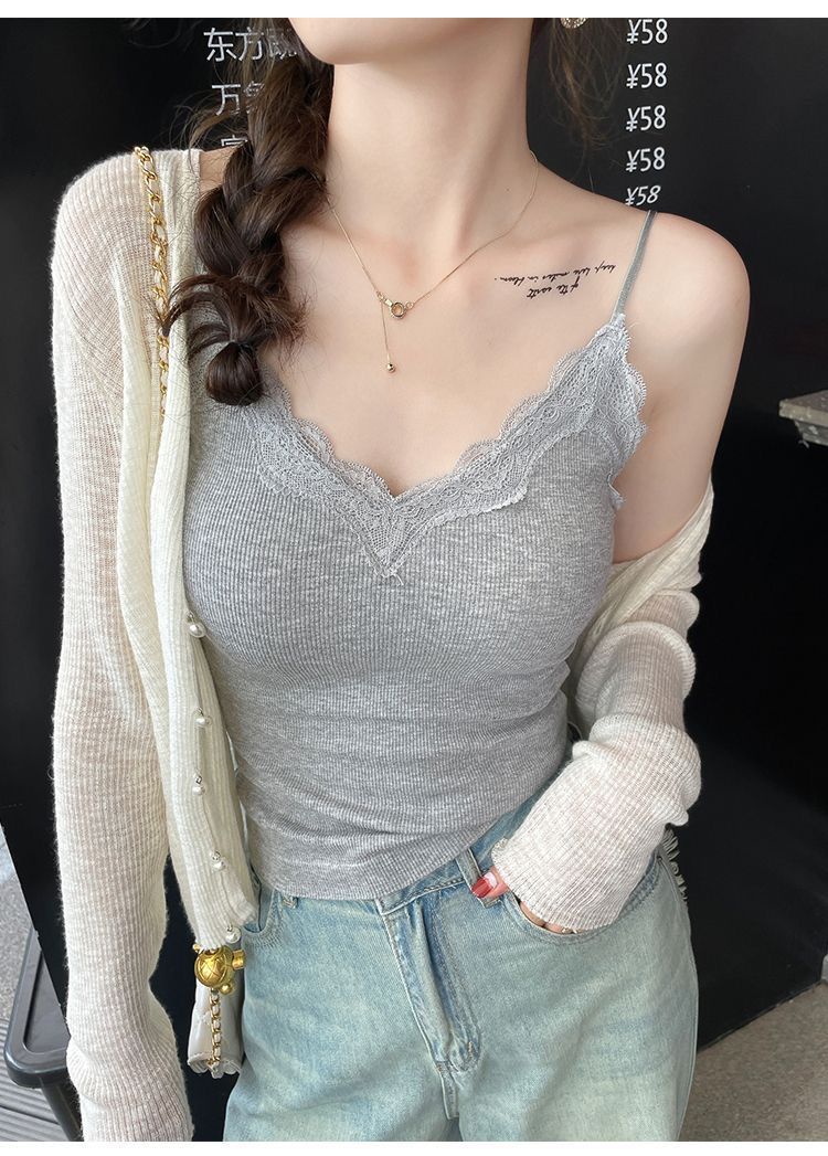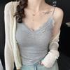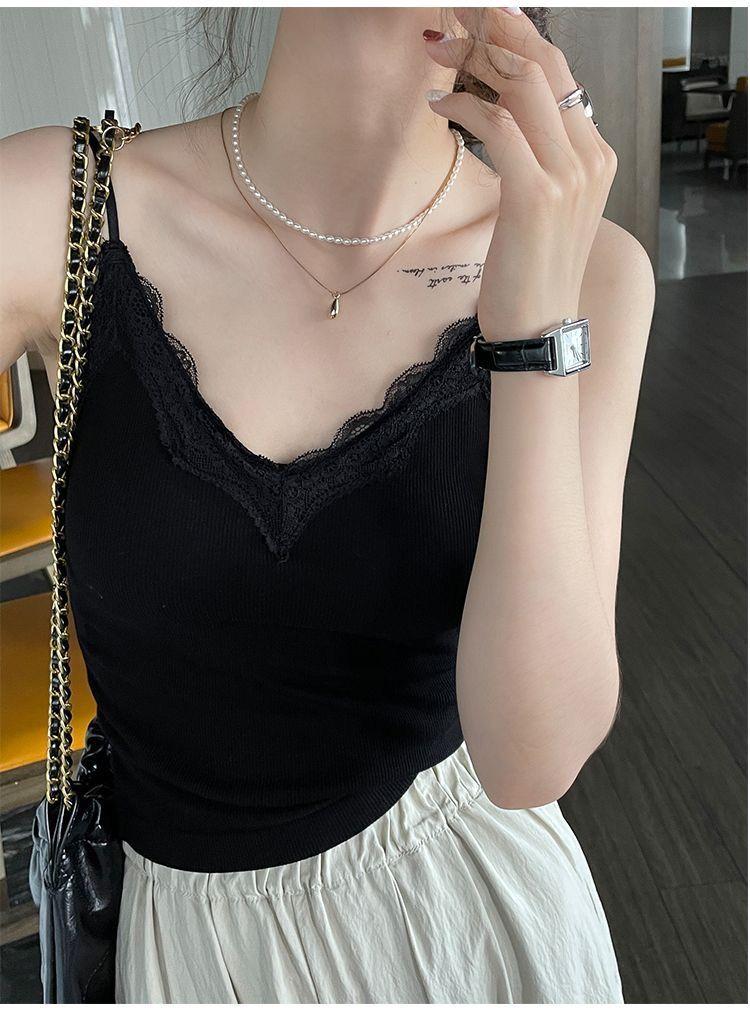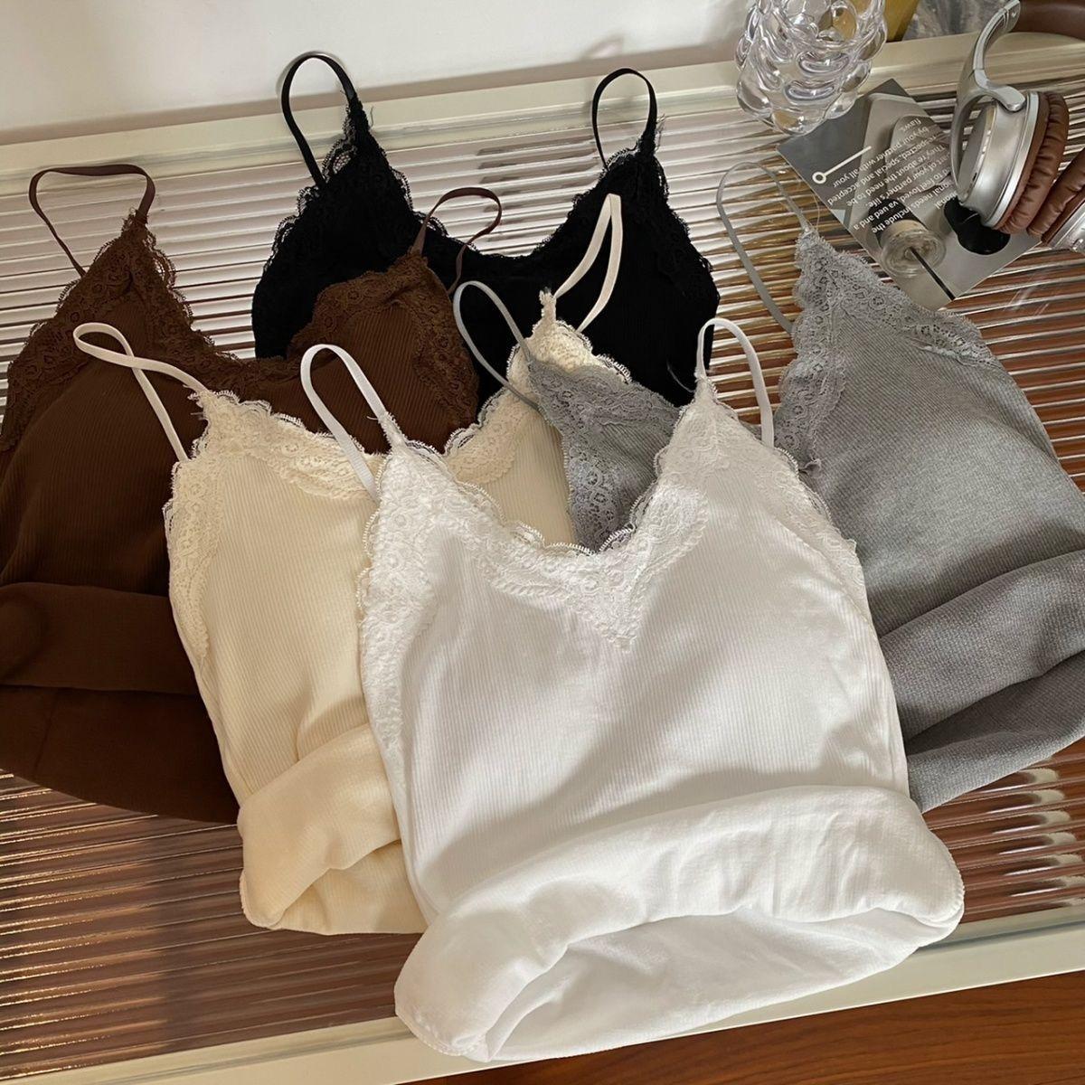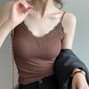 Camisola de encaje sexy, chaleco pequeño con almohadilla para el pecho, escote en V francés, espalda hermosa, prenda exterior, base ajustada ajustable para mujer