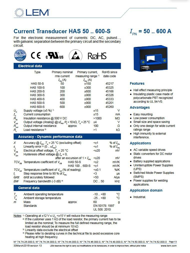 Compra Sensor de corriente HAS400-S LEM/Lyme, corriente nominal 400 A, transformador de efecto Hall, bucle abierto al por mayor en Joom.pro