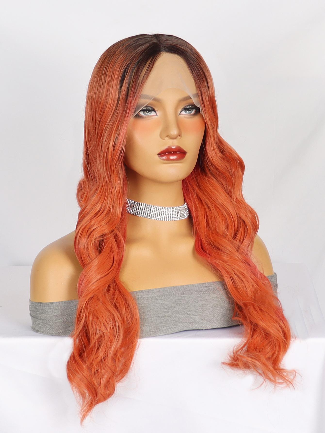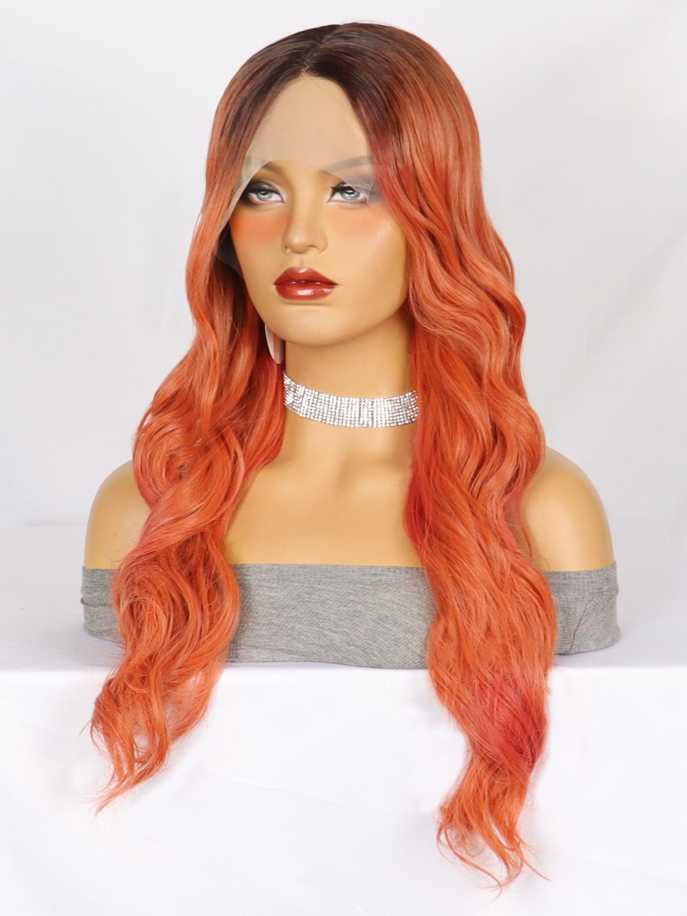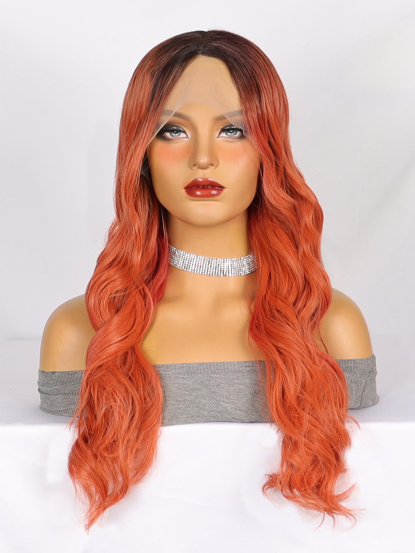![]() Peluca de fibra sintética con encaje frontal de 13*4*1T, peluca con diadema marrón degradado, cabello largo y liso, venta al por mayor