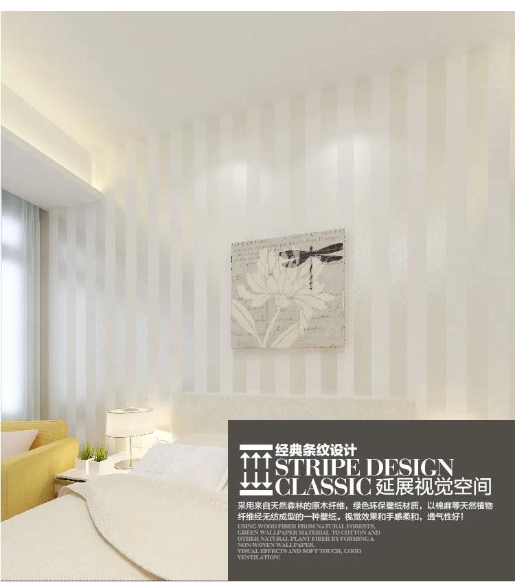 Papel tapiz no tejido engrosado con rayas verticales 3D de estilo europeo, papel tapiz de pared de fondo cálido para dormitorio y sala de estar, dormitorio blanco