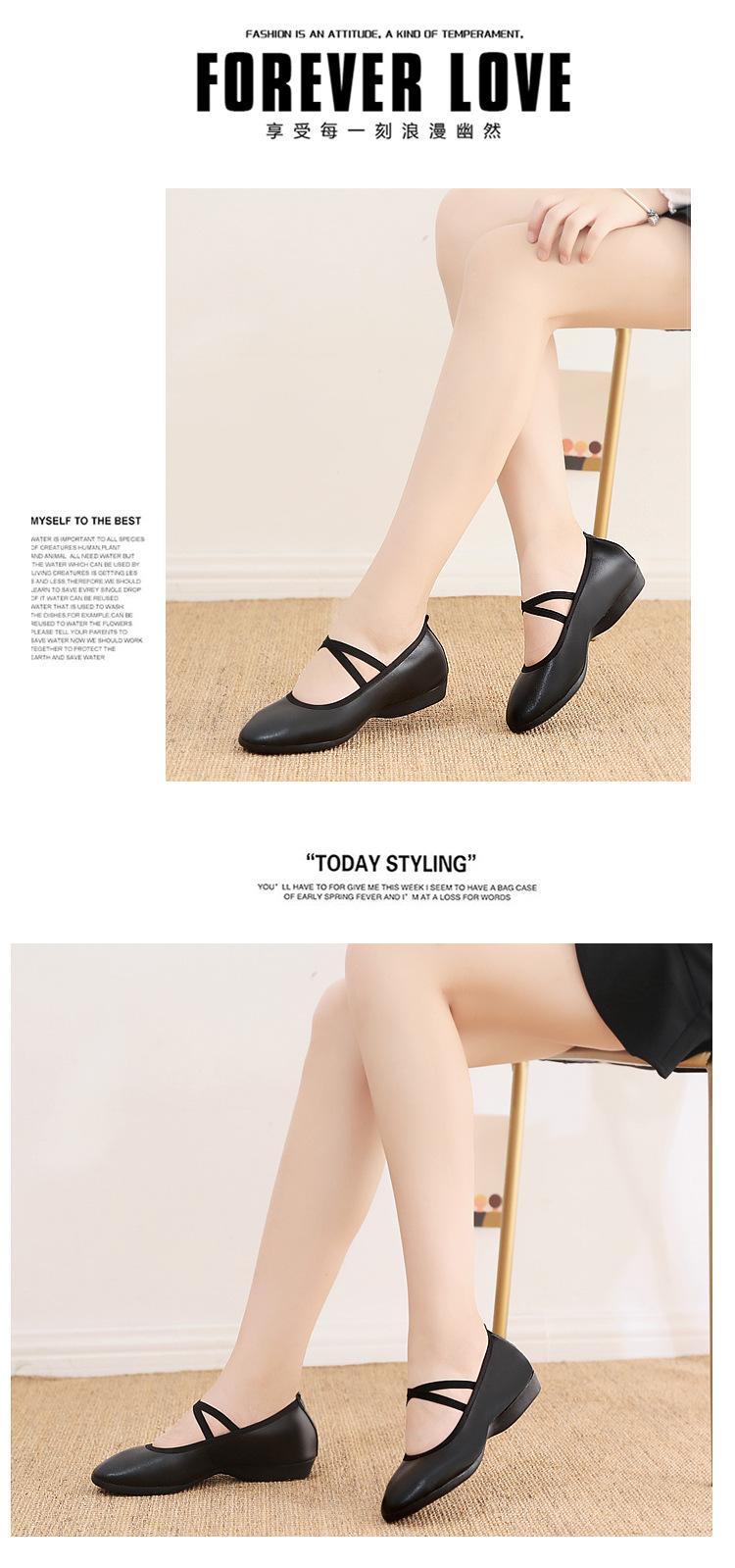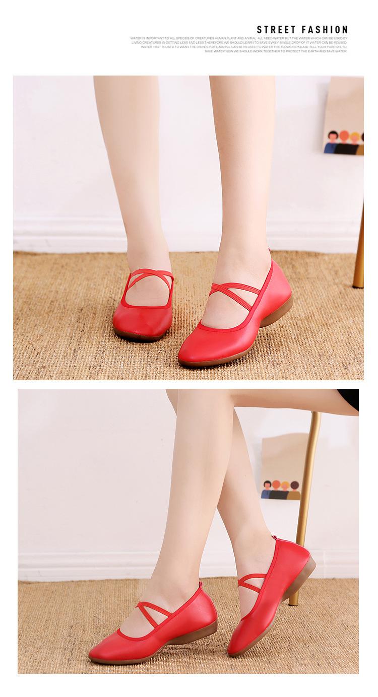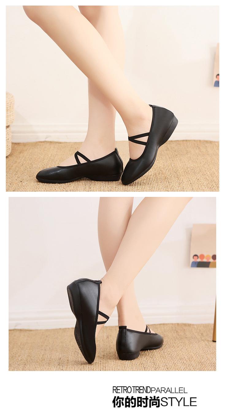 Zapatos de Baile Cuadrado Estilo Nuevo Cuatro Estaciones Zapatos de Baile Caña Baja Cuero Baile Moderno para Mujer Transpirables Suela Suave Zapatos para Madre Zapatos para Adulto