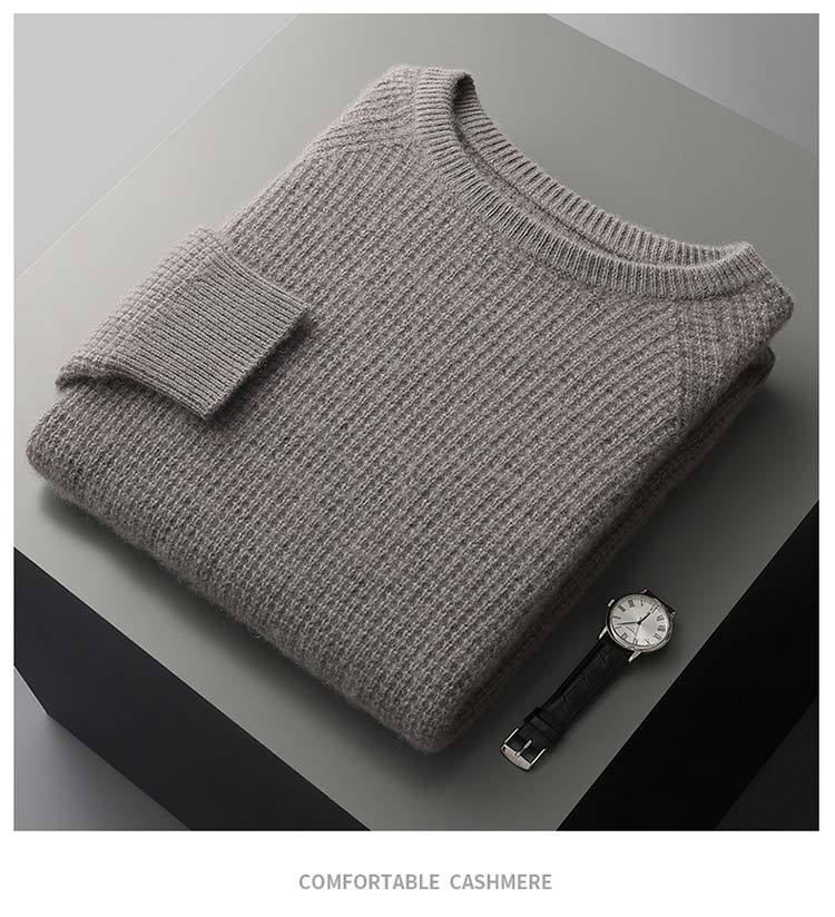 Suéter de punto de cachemira grueso para hombre, cuello redondo, jersey de talla grande, camisa de fondo cálida, venta al por mayor, otoño e invierno, nueva ropa interior