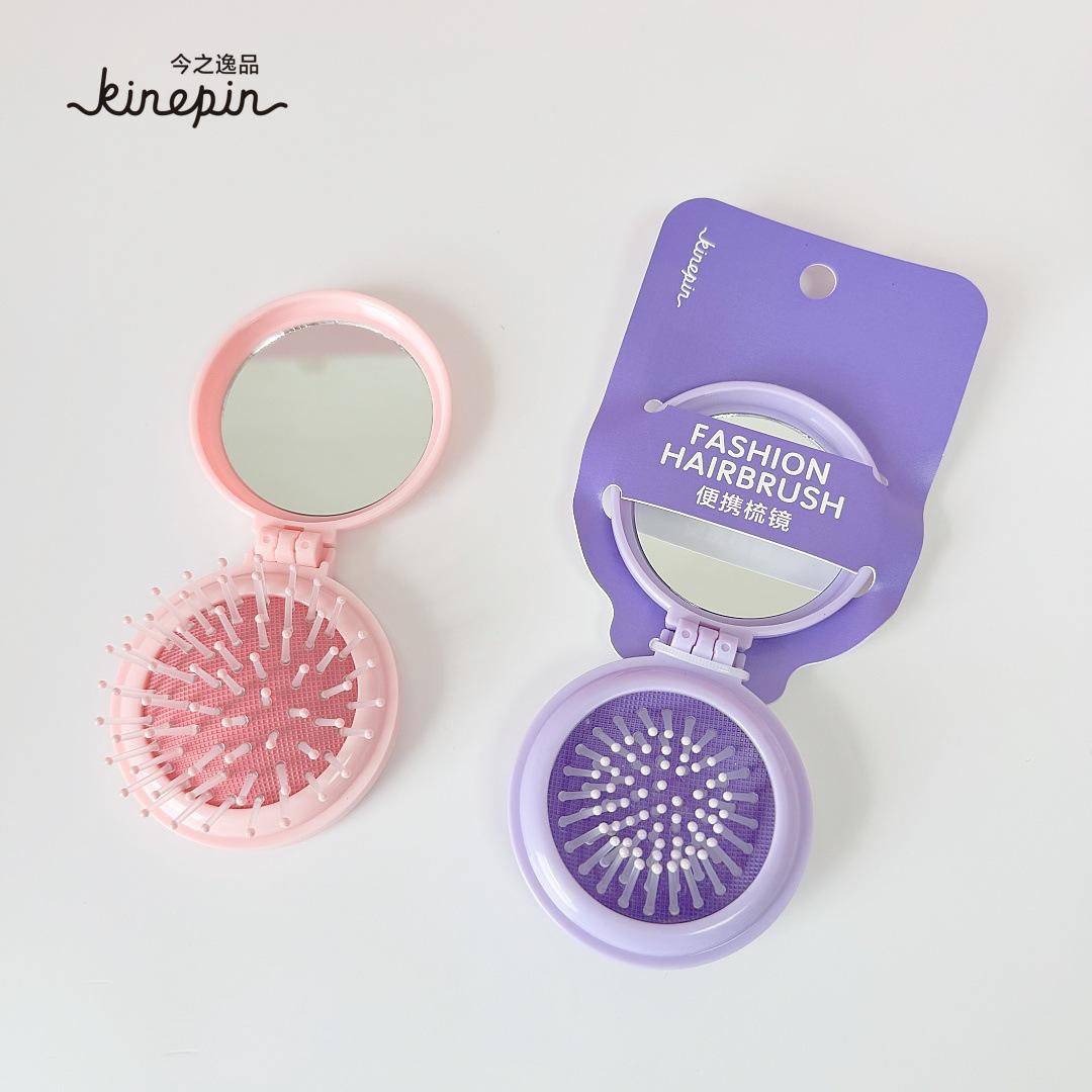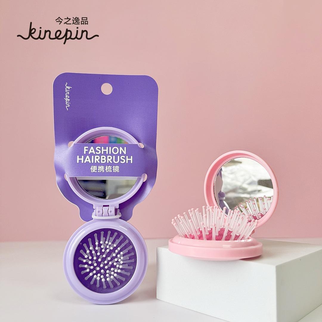 Cepillo de Aire Portátil Yipin de Hoy, Cepillo Plegable, Cepillo de Plástico Doméstico con Forma de Peine para el Cabello, Cepillo de Masaje con Espejo Cosmético
