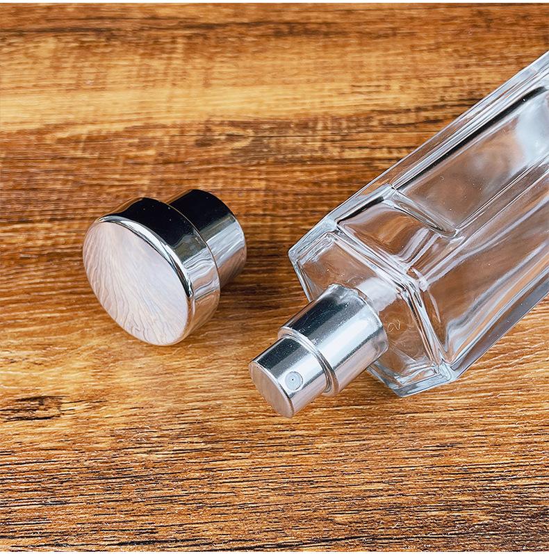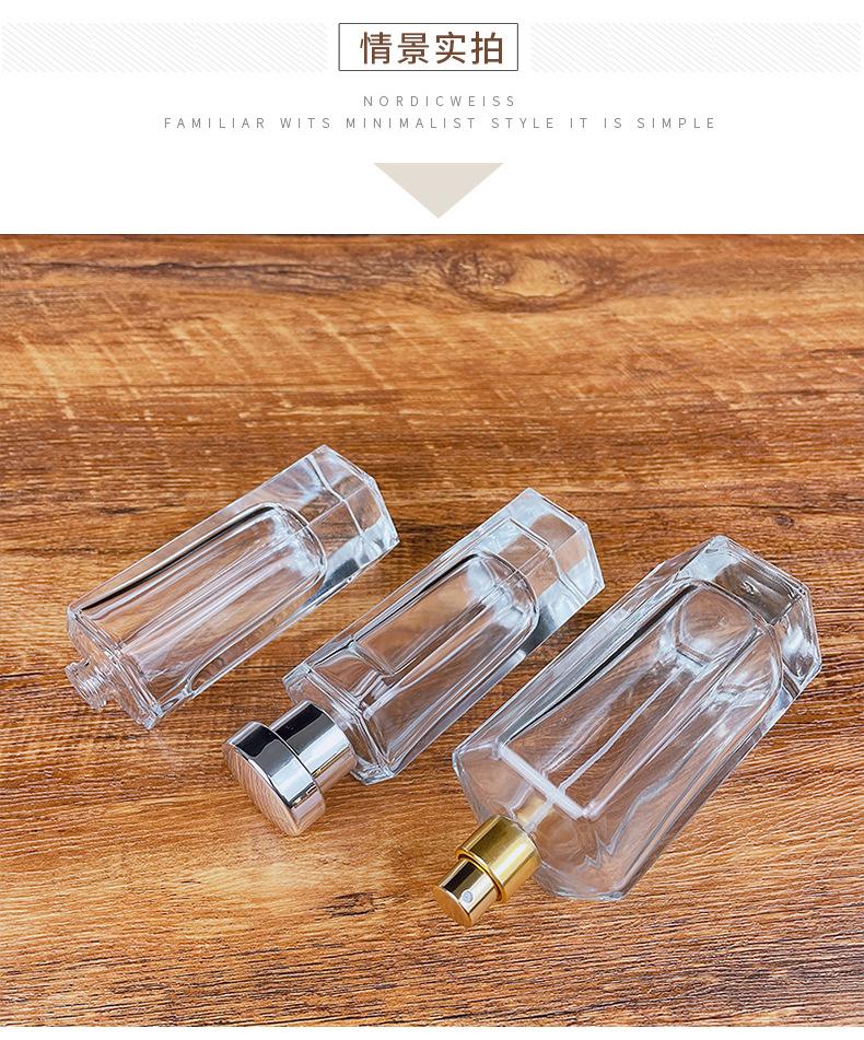 Frasco de perfume de vidrio listo para usar, pequeño y fácil de transportar, fabricado en material blanco refinado, con boquilla de aluminio anodizado.