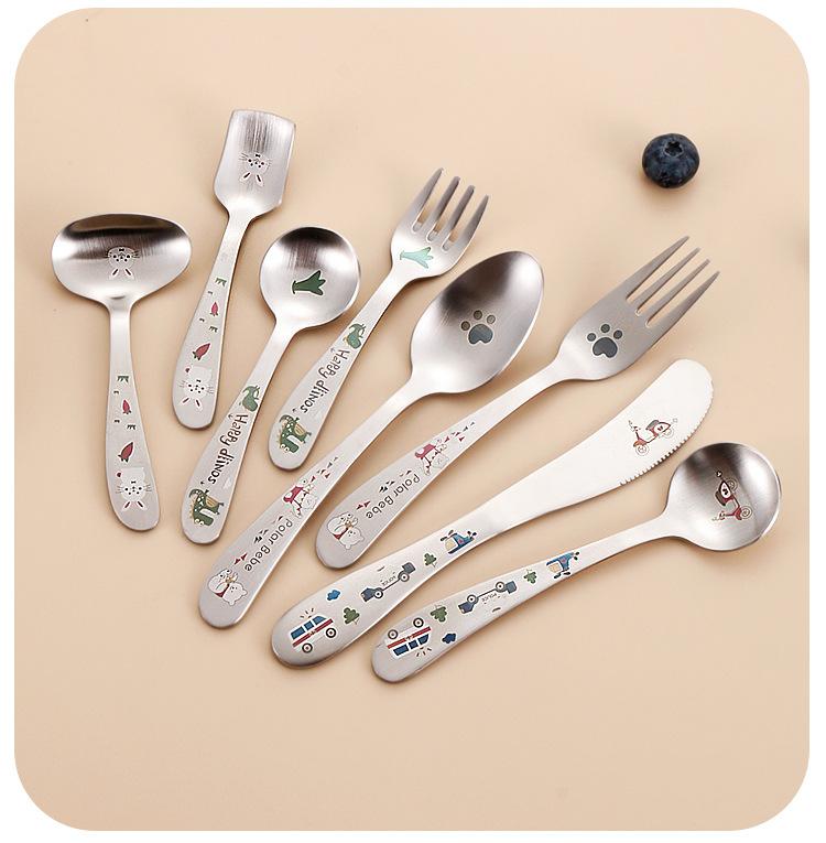 Cubiertos Occidentales de Acero Inoxidable 304 para Niños Cuchillo para Carne Cuchillo de Mesa Tenedor para Bebé Cuchillo, Tenedor y Cuchara para el Hogar Juego de Cuchillo y Tenedor Occidental