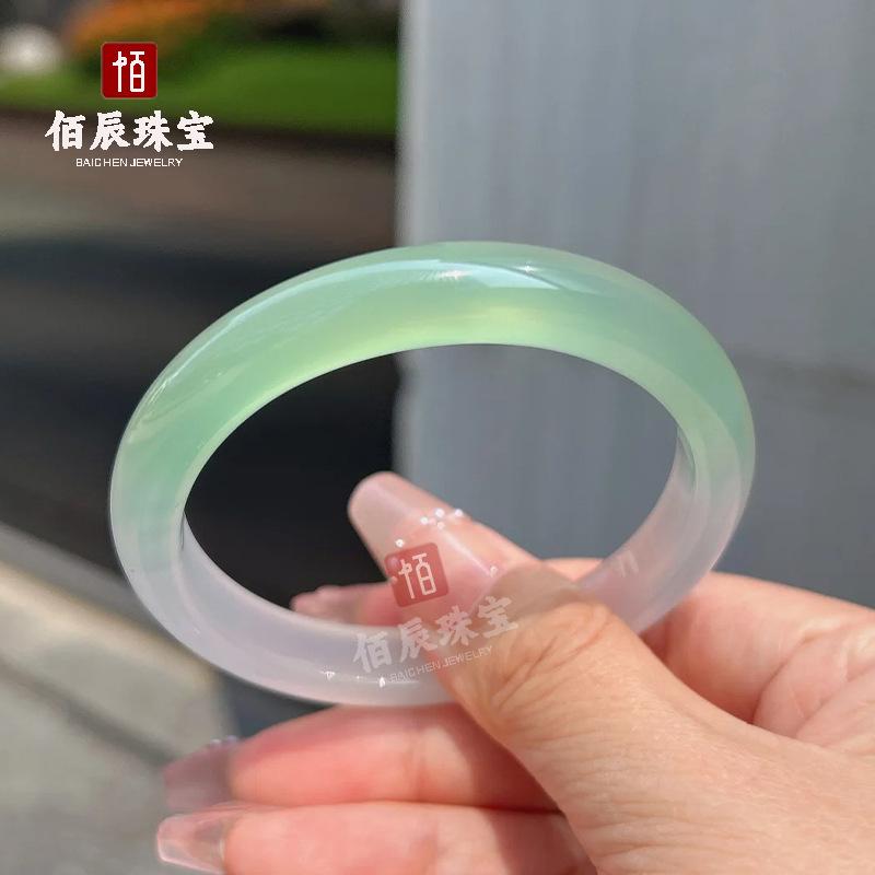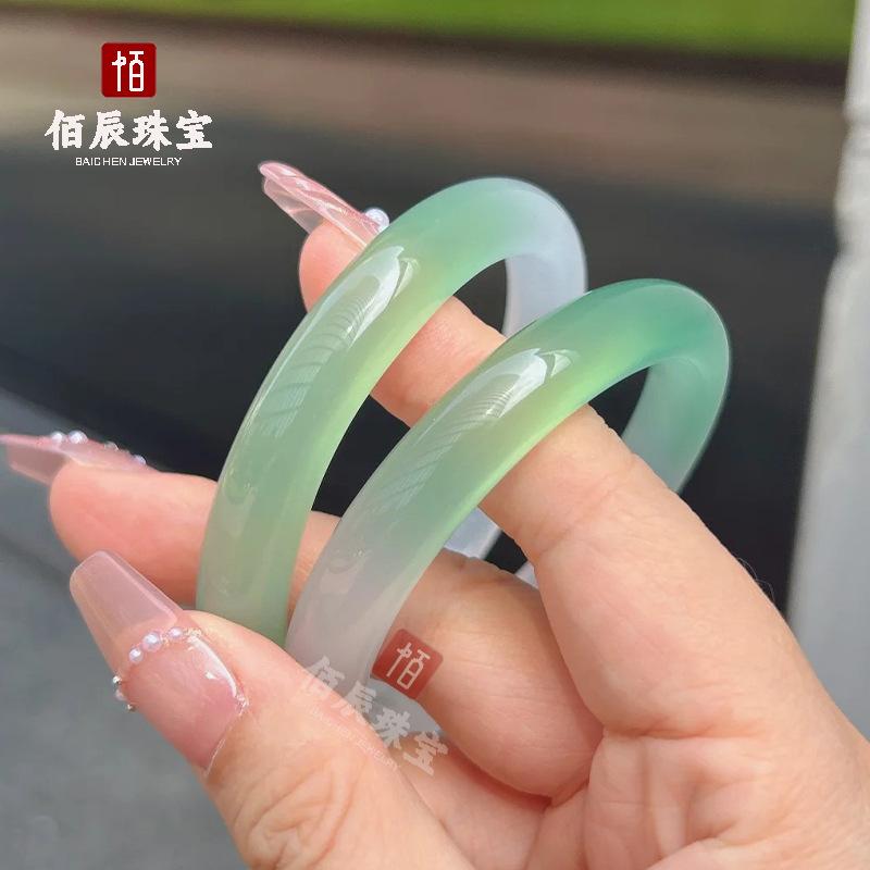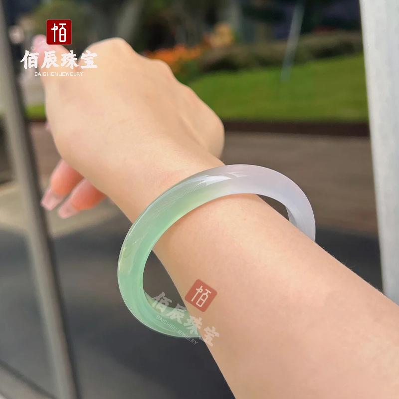 Pulsera de calcedonia con aceite de hielo, verde, montaña lejana, Dai Banshan, media agua, ágata, pulsera de jade para mujer, joyería, regalo al por mayor