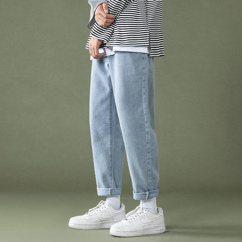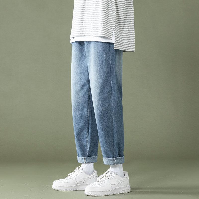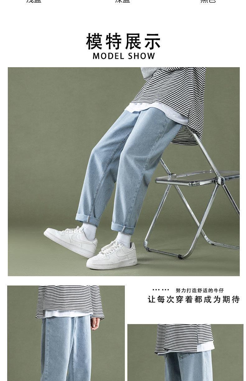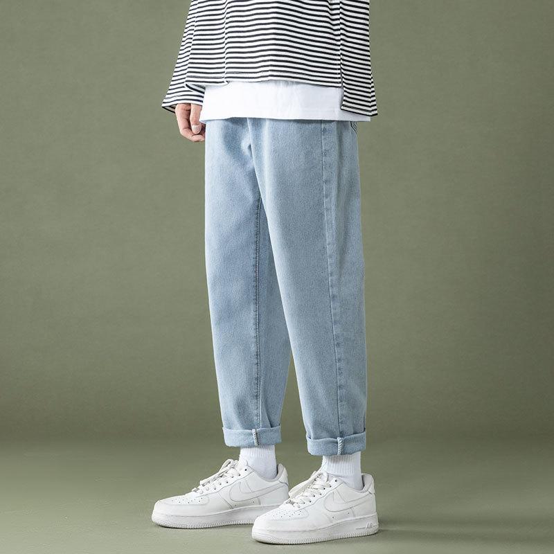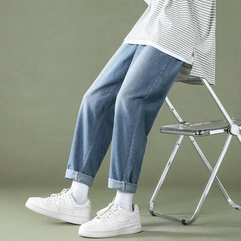 Jeans para hombre de pierna ancha, pantalones rectos, moda coreana, verano, delgados, hasta el tobillo, holgados, color claro, pantalones casuales