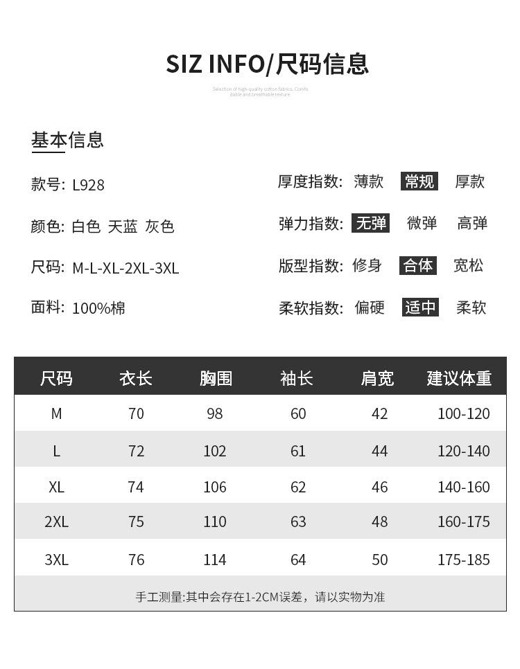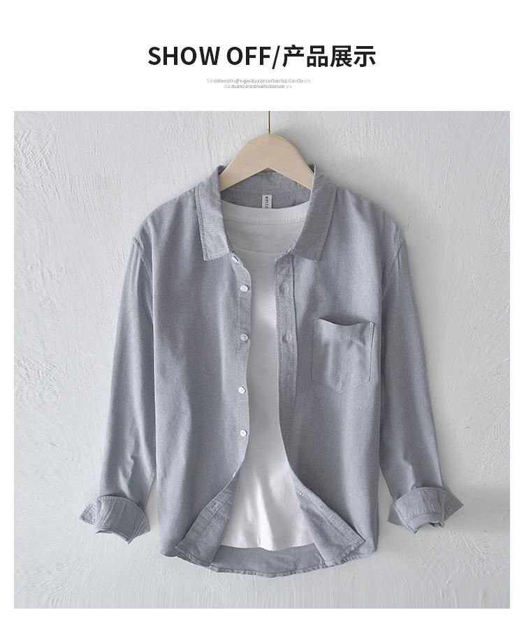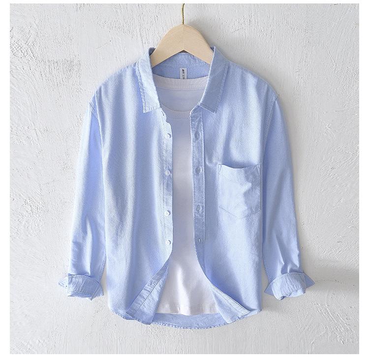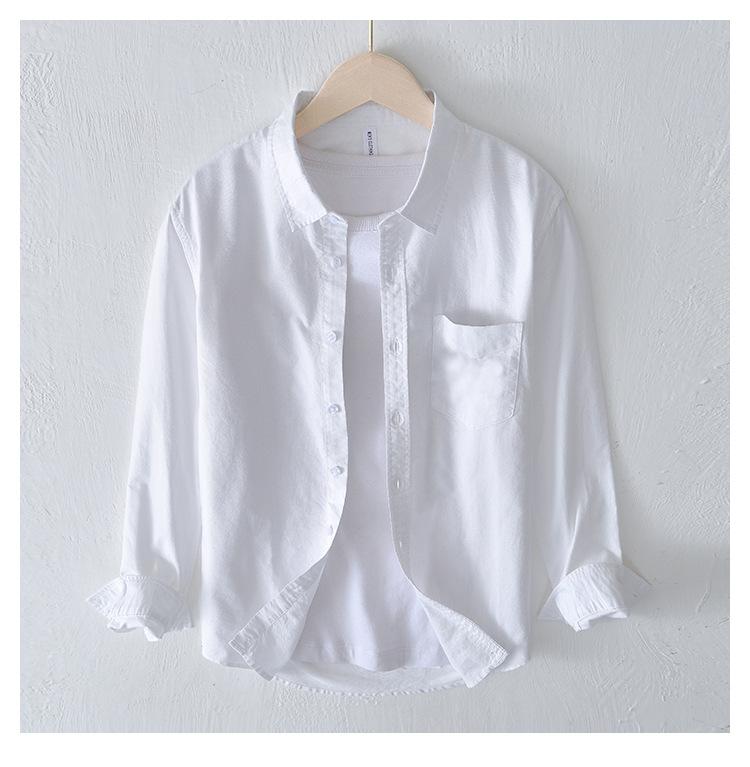 L928 Camisa de Algodón Oxford de Manga Larga para Hombre, Transpirable, Suave Lavado, Casual para Todo, Ajuste Slim, Camisa Blanca de Moda para Hombre