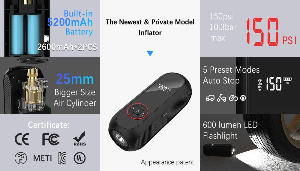 Bomba de aire portátil inalámbrica para coche, bomba de aire eléctrica para neumáticos, bomba de aire para coche ...