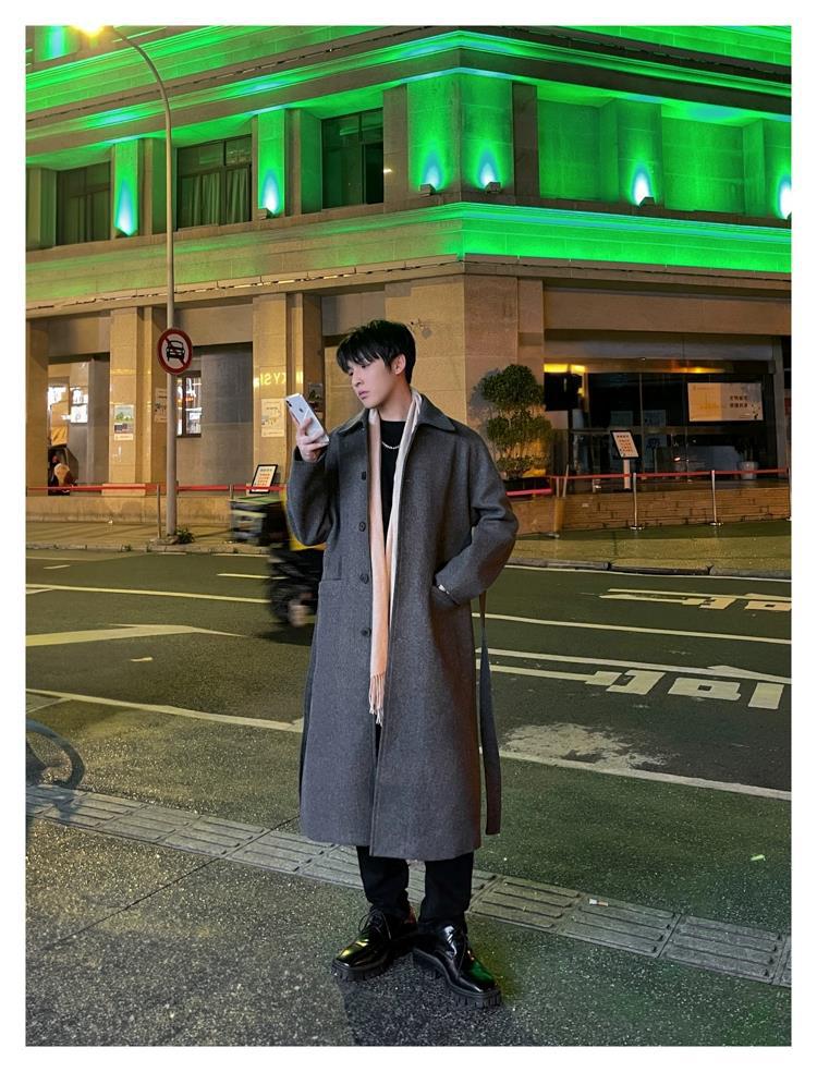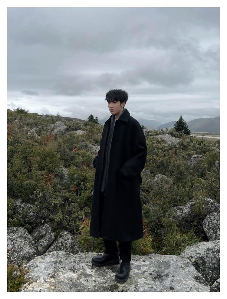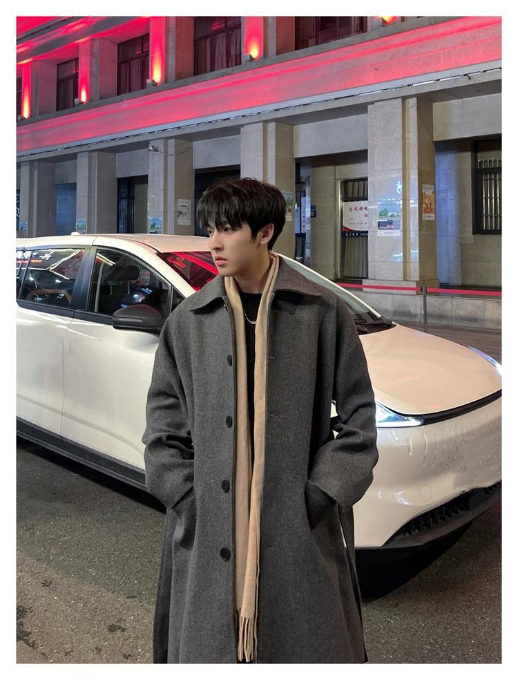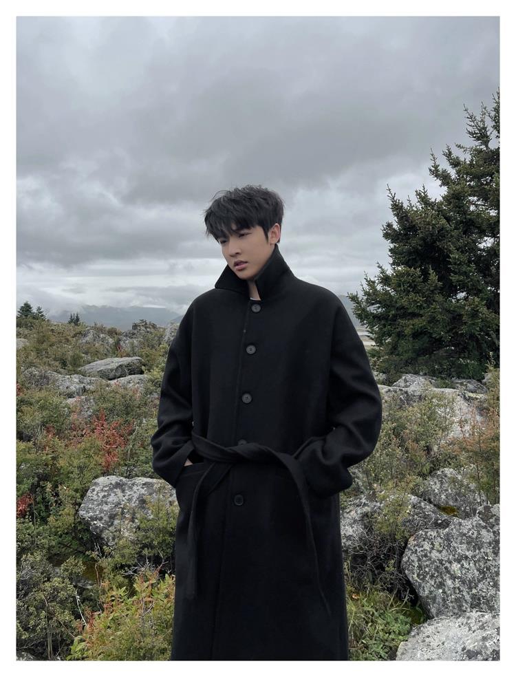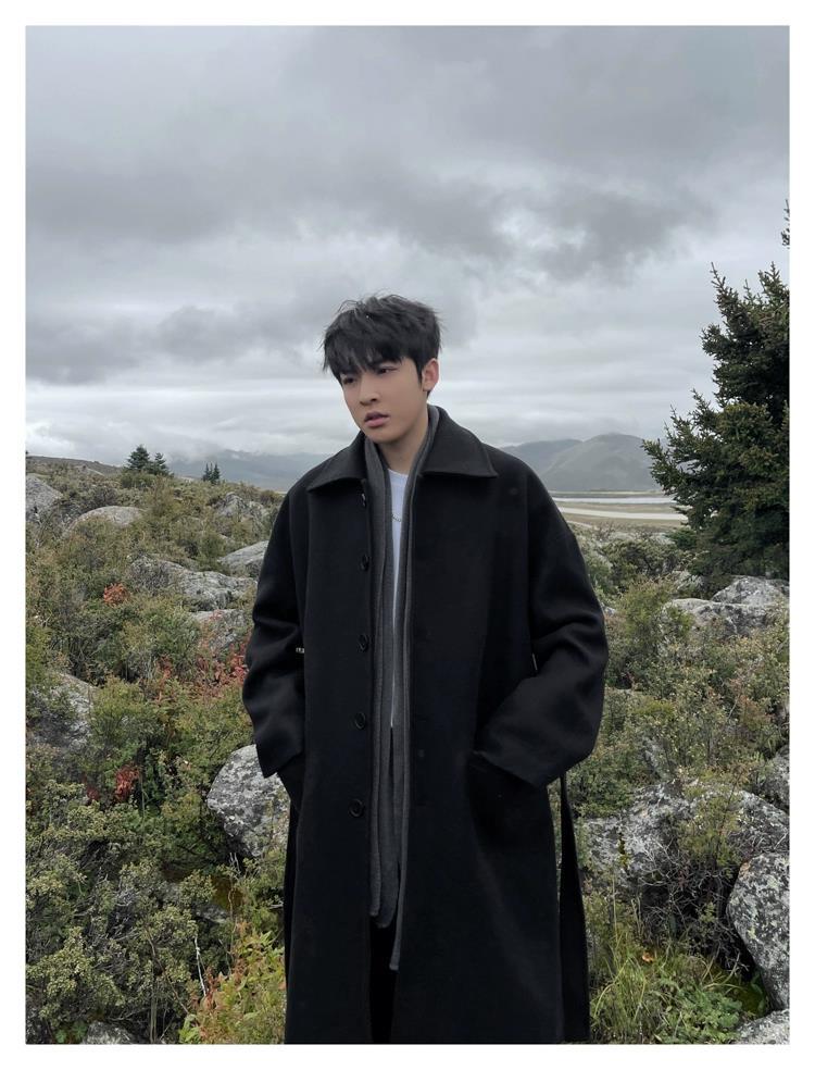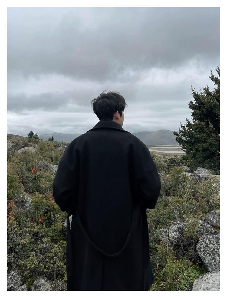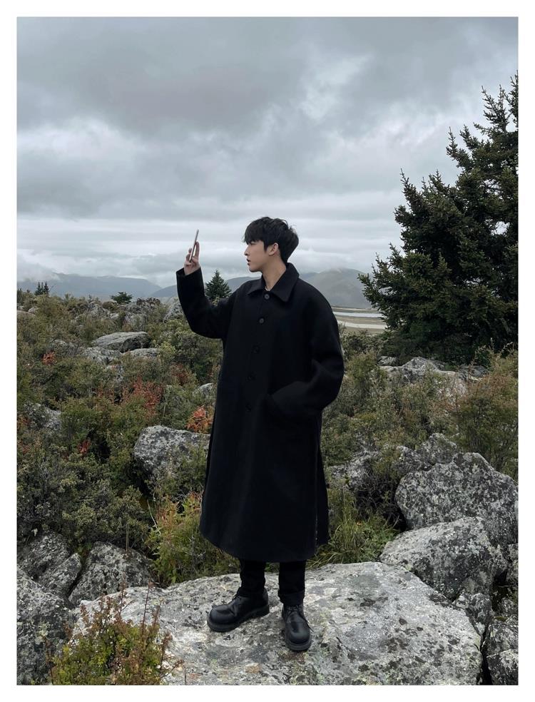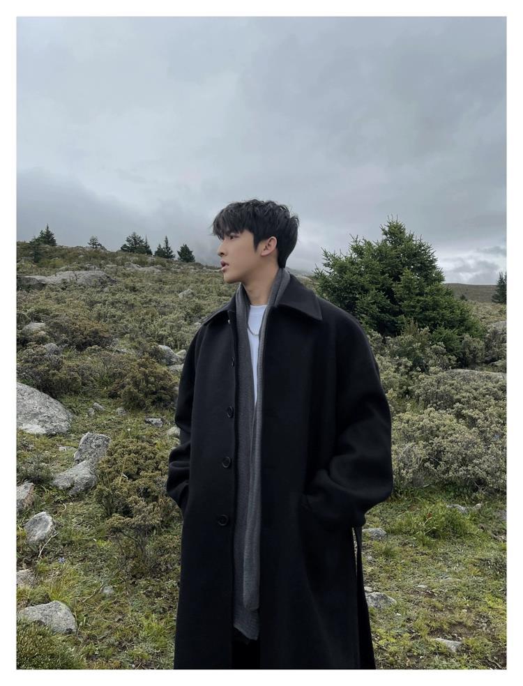 Abrigo de lana negro para hombre otoño e invierno 2023 estilo coreano de longitud media estilo británico gabardina F310