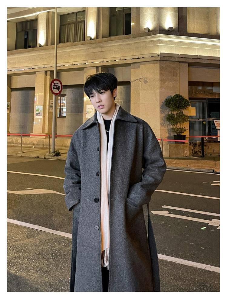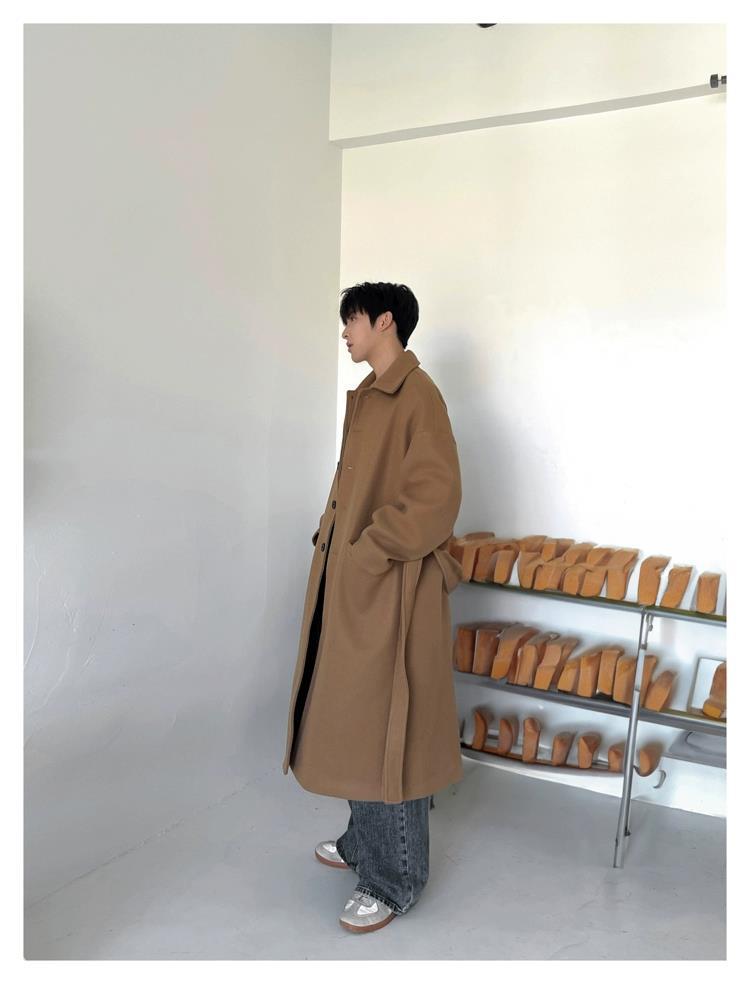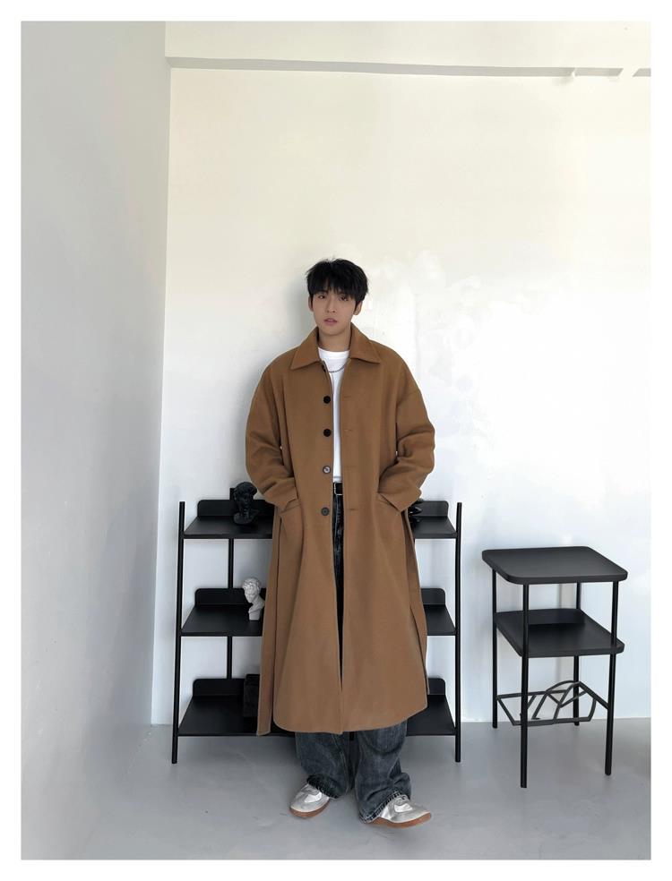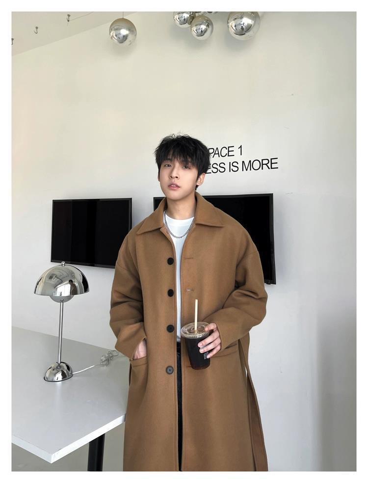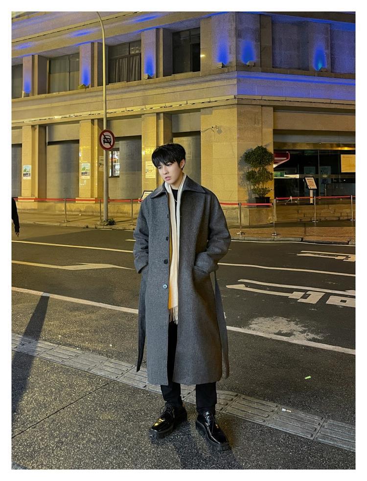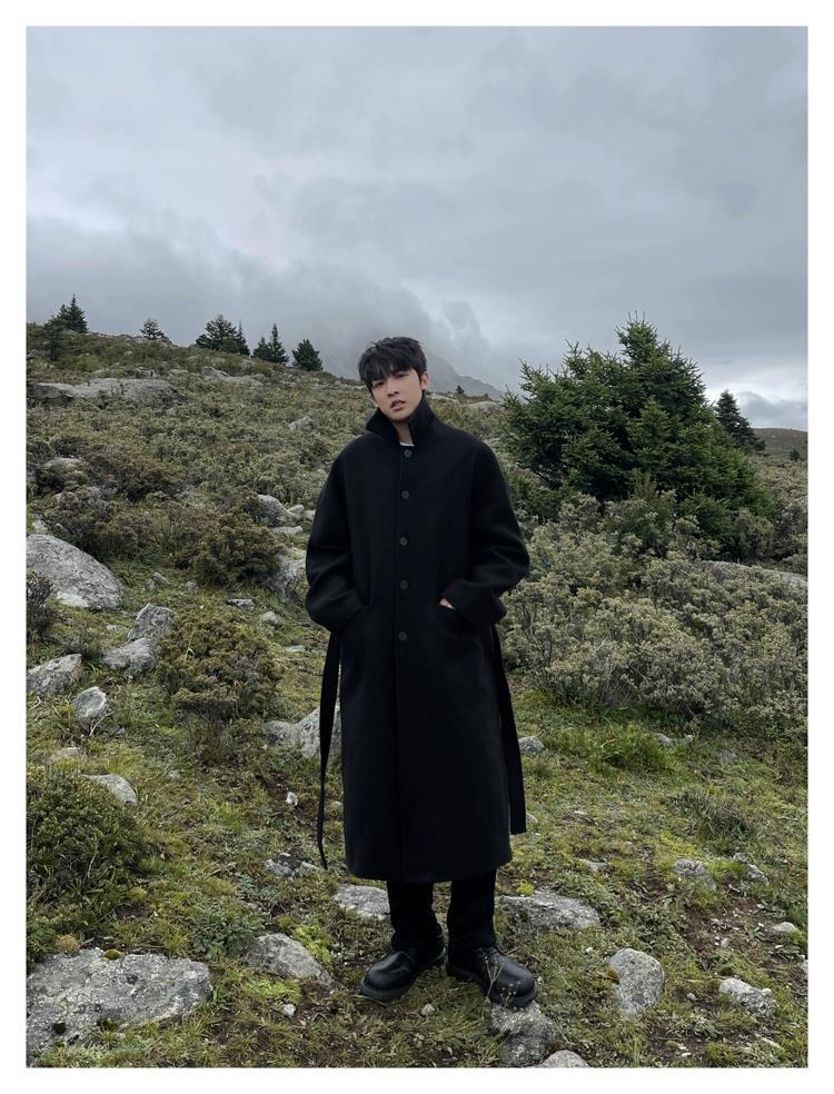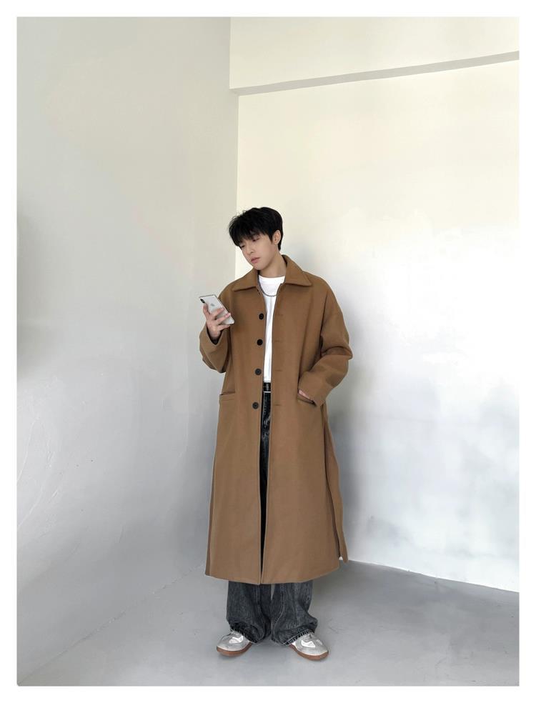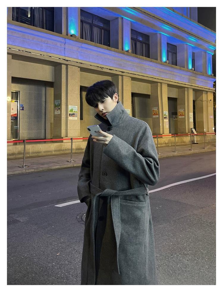 Abrigo de lana negro para hombre otoño e invierno 2023 estilo coreano de longitud media estilo británico gabardina F310