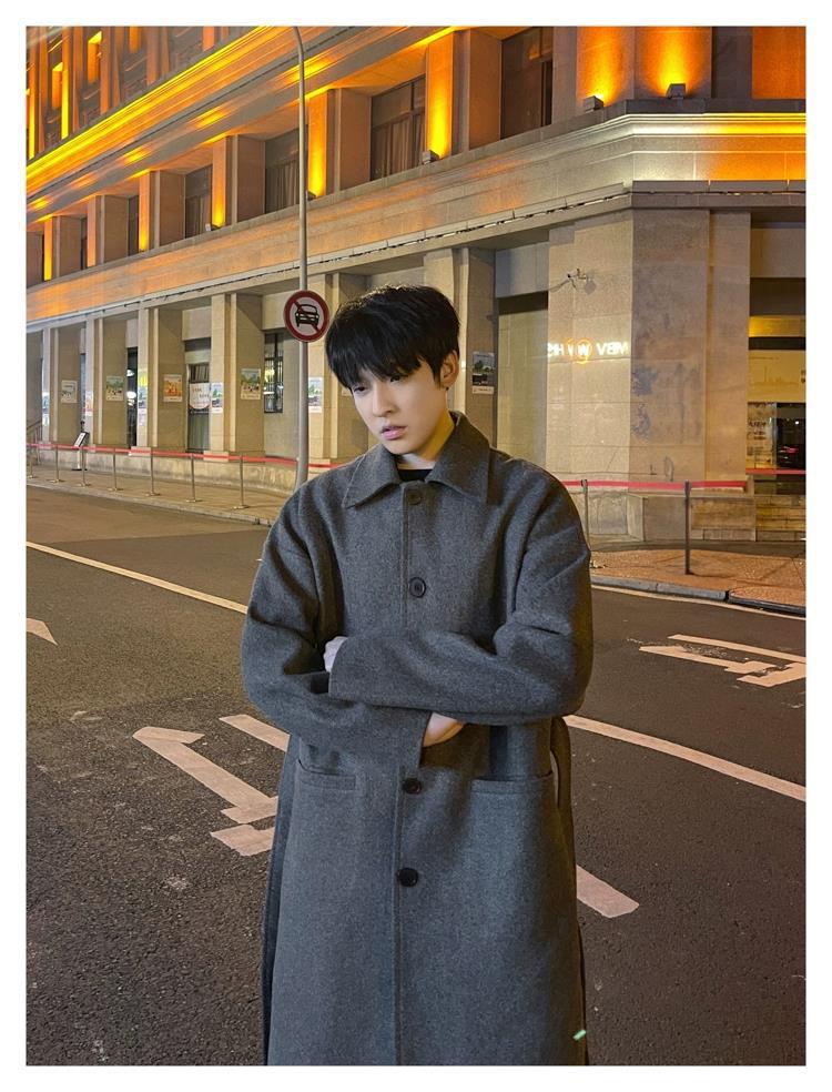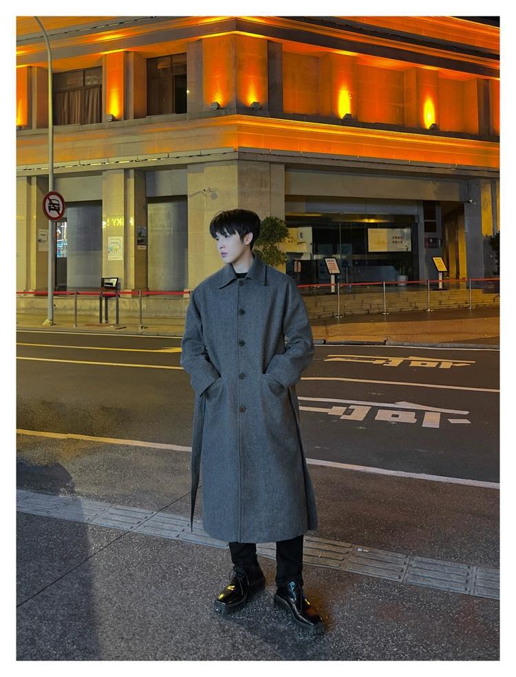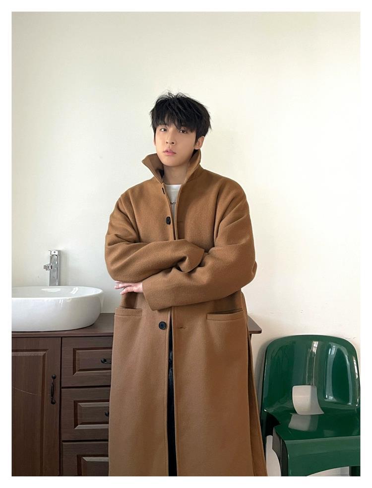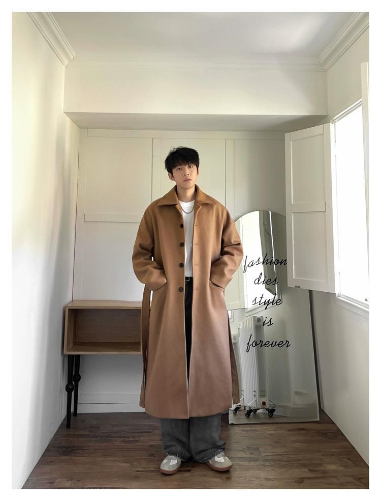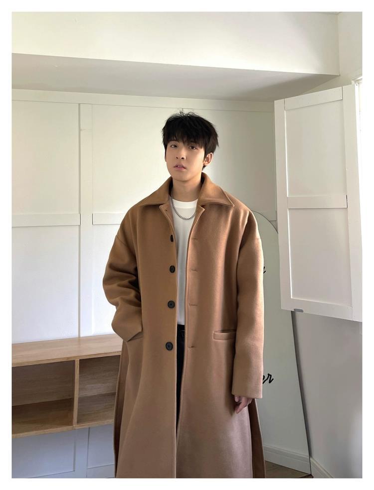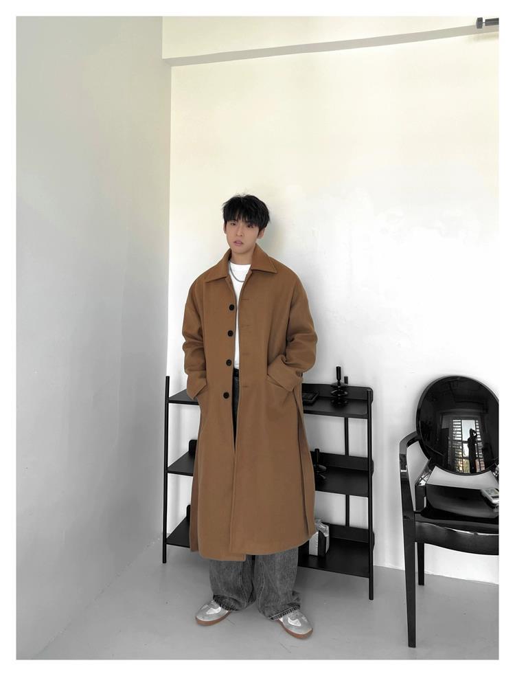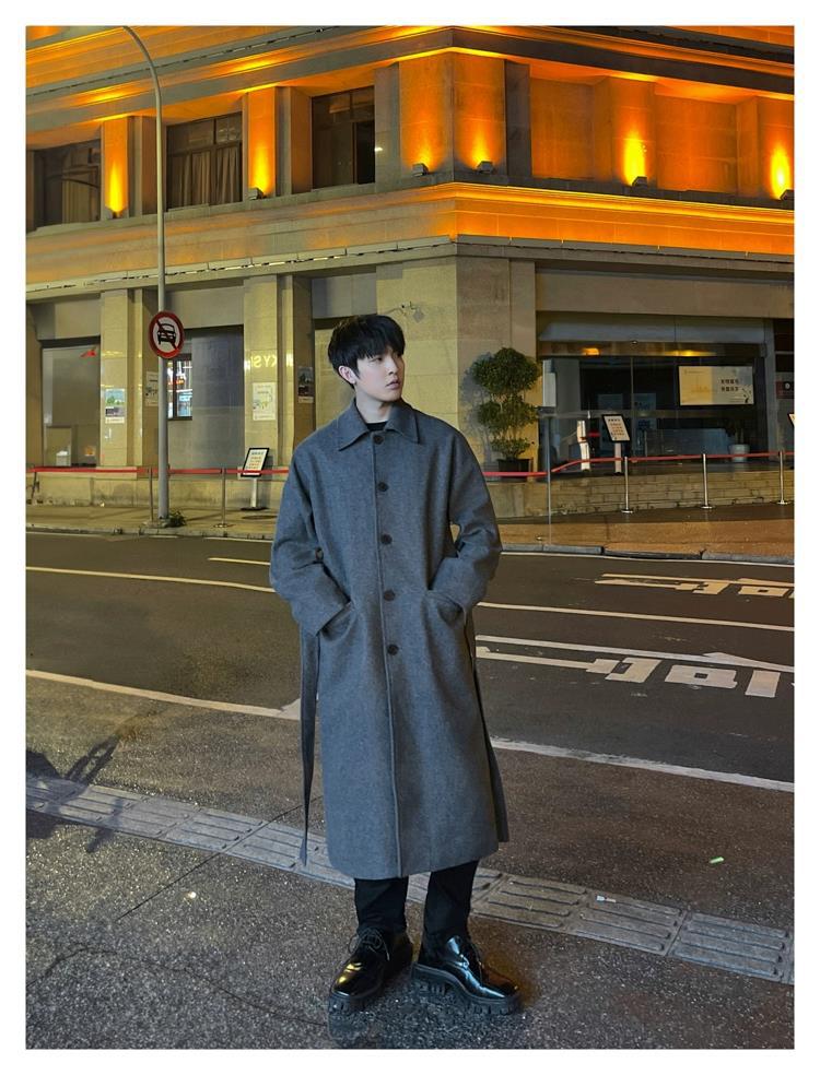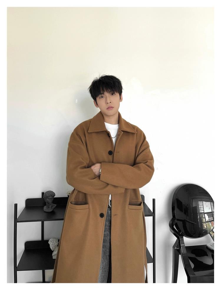Abrigo de lana negro para hombre otoño e invierno 2023 estilo coreano de longitud media estilo británico gabardina F310