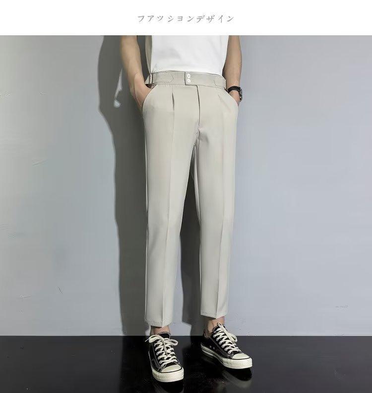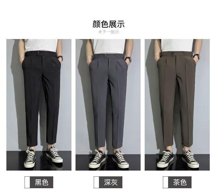 Pantalones Nuevos de Primavera y Otoño para Hombre Pantalones hasta el Tobillo Pantalones de Pierna Recta Ajustados Estilo Coreano Populares Pantalones Pequeños Occidentales Pantalones Casuales con Colgante para Hombre