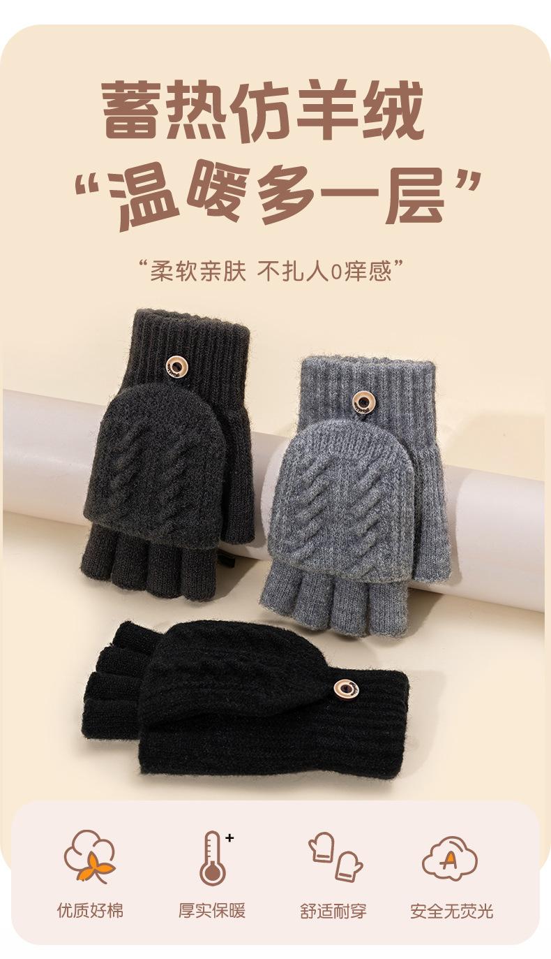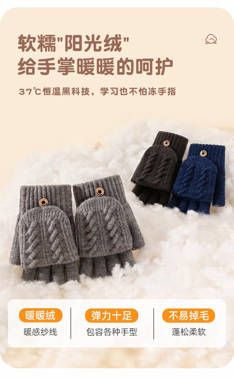Guantes Cálidos de Medio Dedo para Hombre al Por Mayor Invierno Ciclismo Lana a Prueba de Frío Tejidos Espesos sin Dedos con Solapa