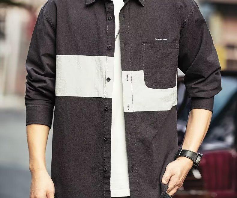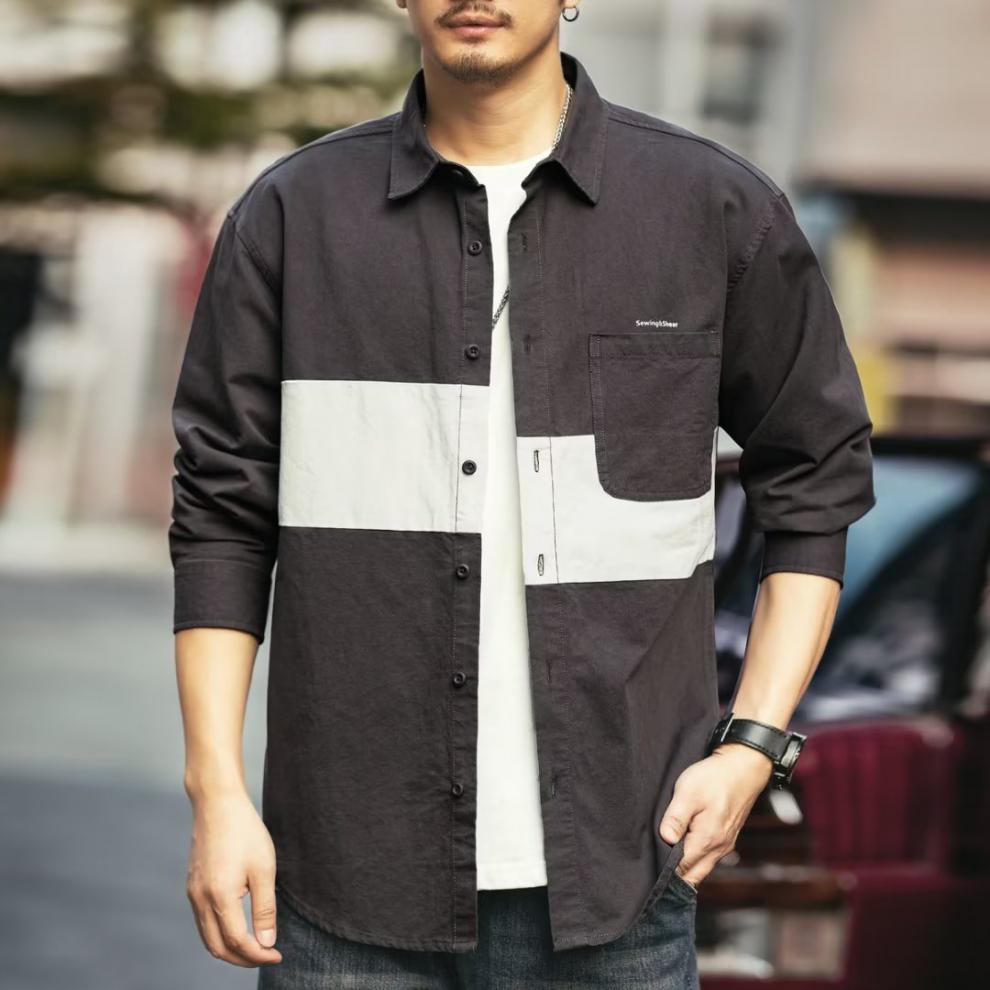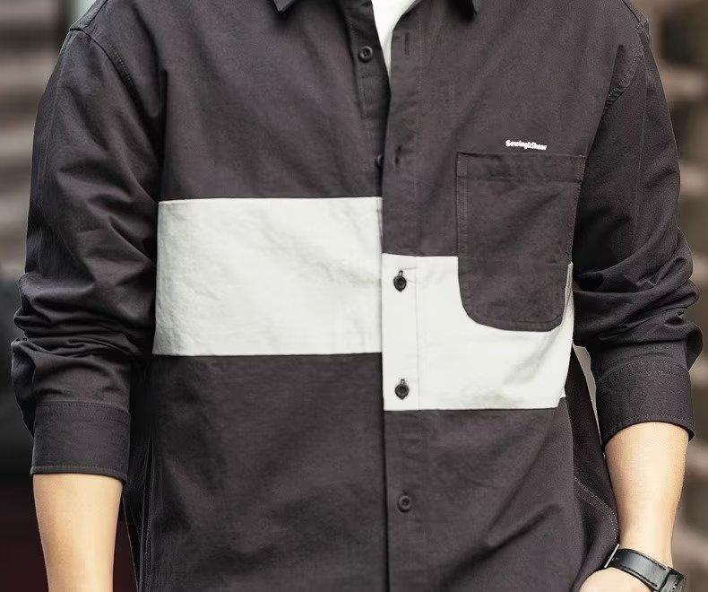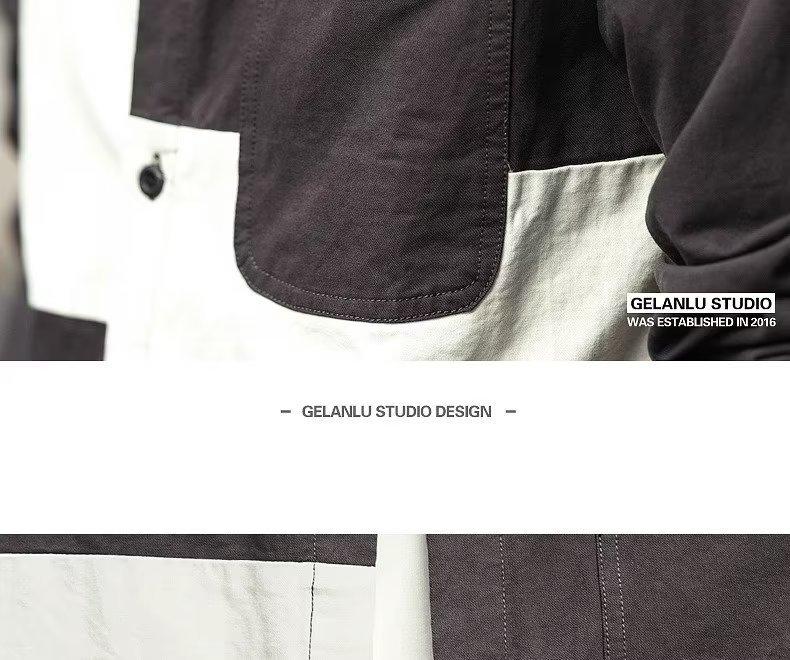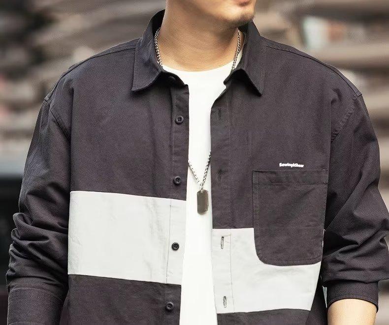 Chaqueta de otoño 2024 para hombre, estilo informal, con bolsillos y bloques de color, a la moda