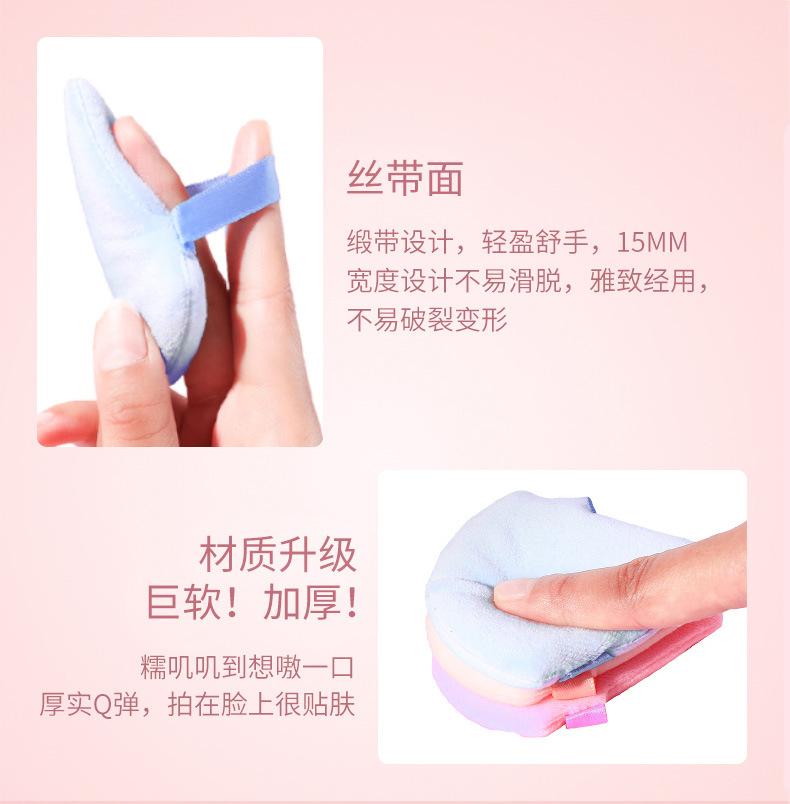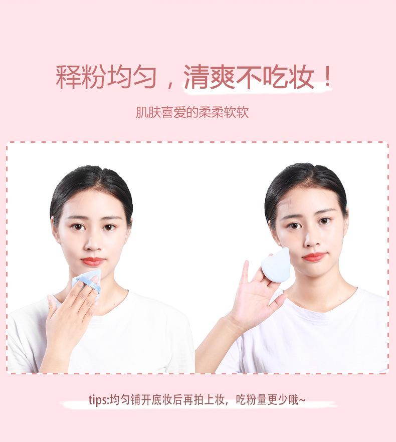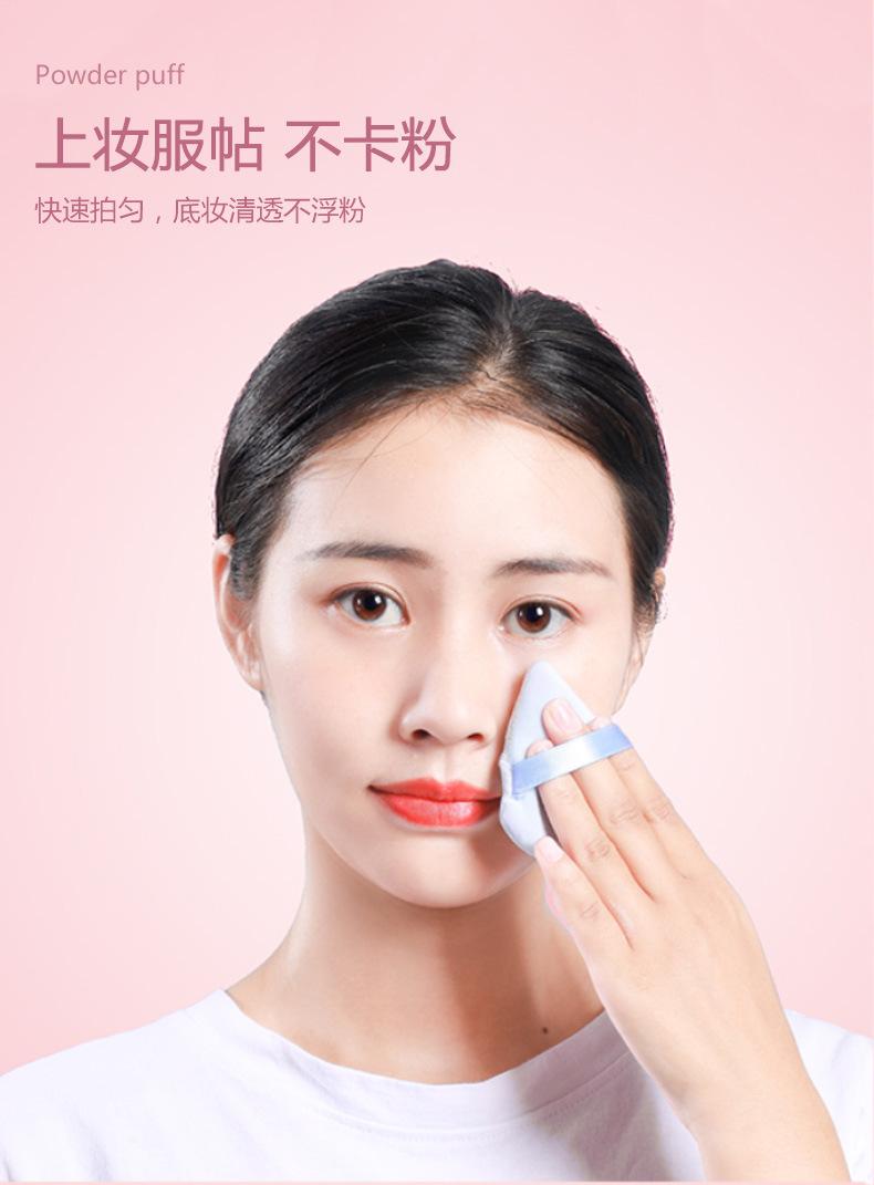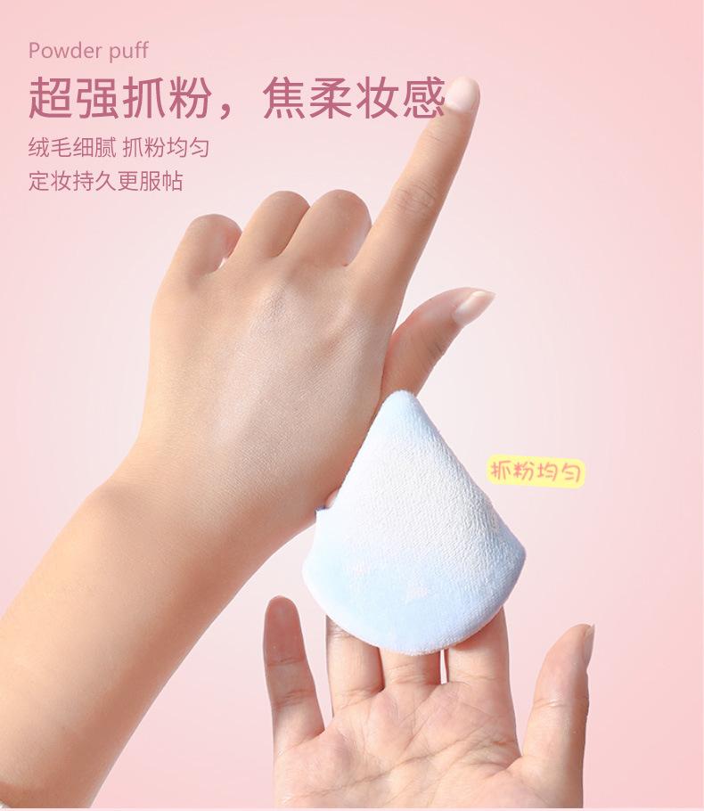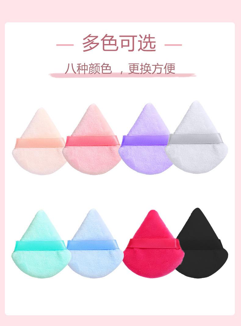 Venta al por mayor de borlas triangulares cortas de terciopelo para maquillaje de terciopelo de cristal, borlas suaves y secas para polvos, borlas de maquillaje con cojín de aire y flocado.