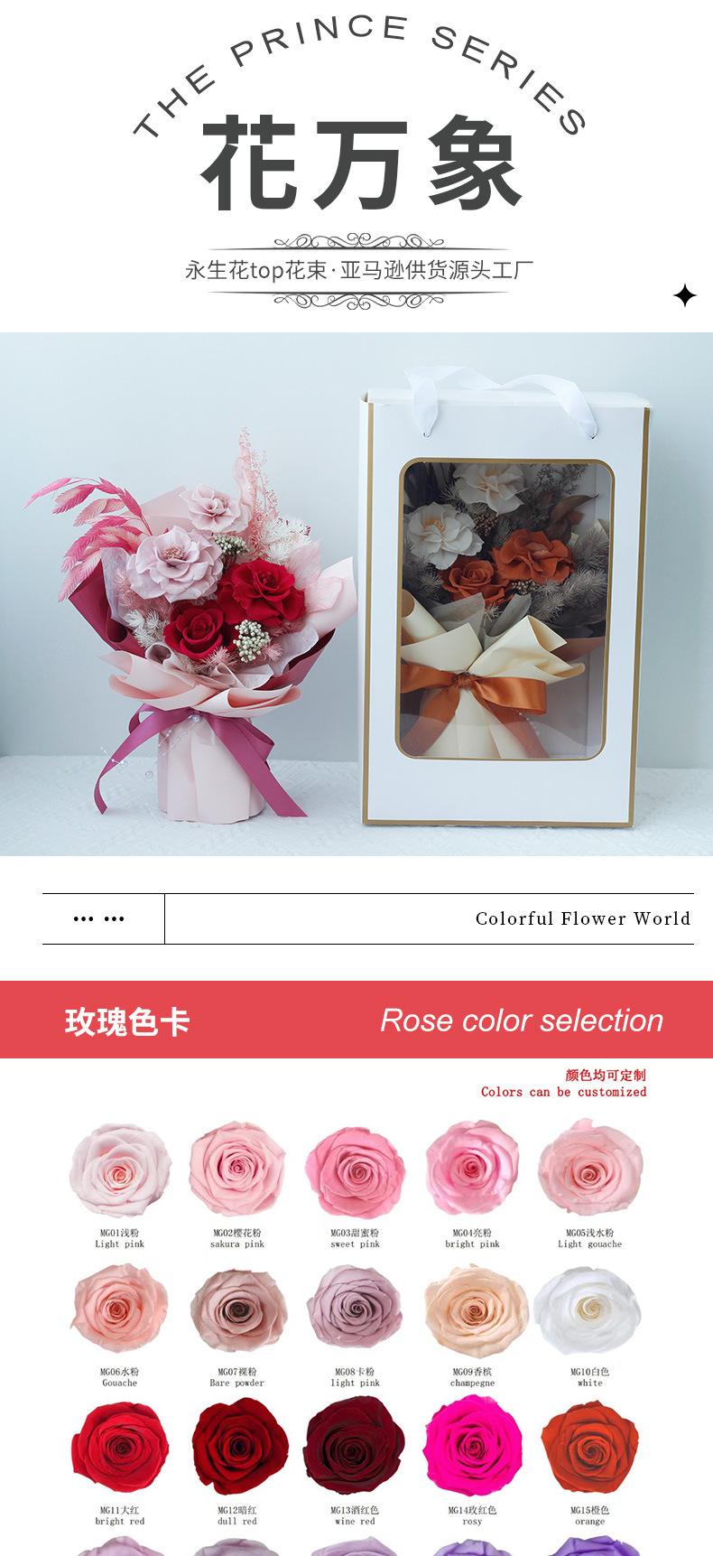 Regalo de Navidad de Amazon Rosa Acabado Regalo de San Valentín Transfronterizo Ramo de Flor Seca Flor Eterna de Alta Gama