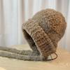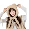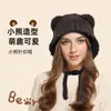 Gorro de Oso de Peluche para Mujer para Otoño e Invierno, Gorro Cálido Versátil Estilo Coreano que Hace que la Cara Parezca Más Pequeña, con Protección para las Orejas, Lindo Gorro Pulóver, Estilo Dulce