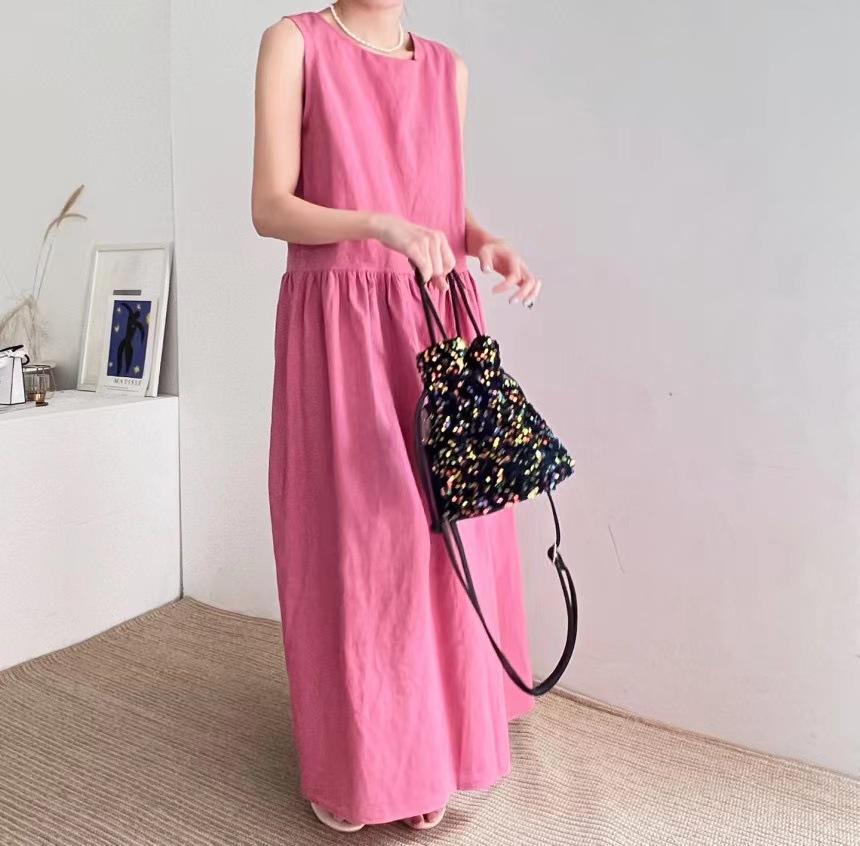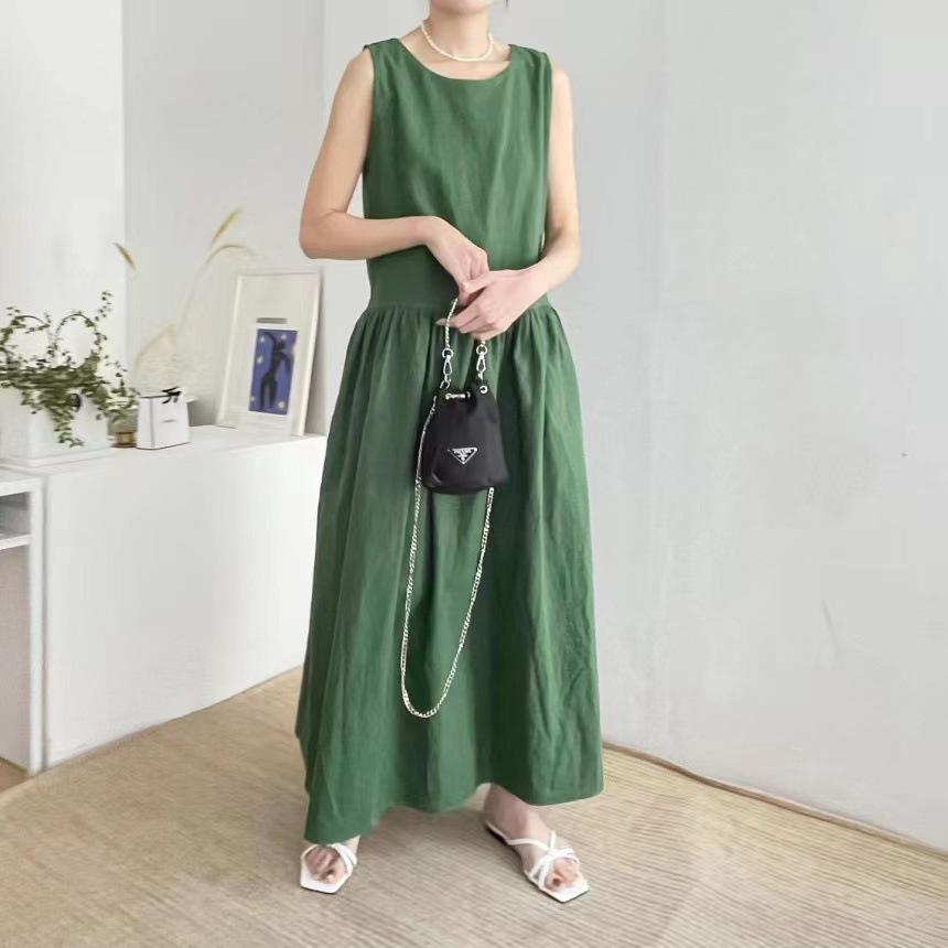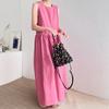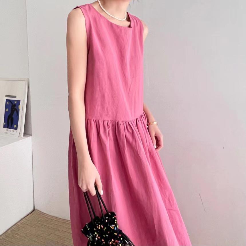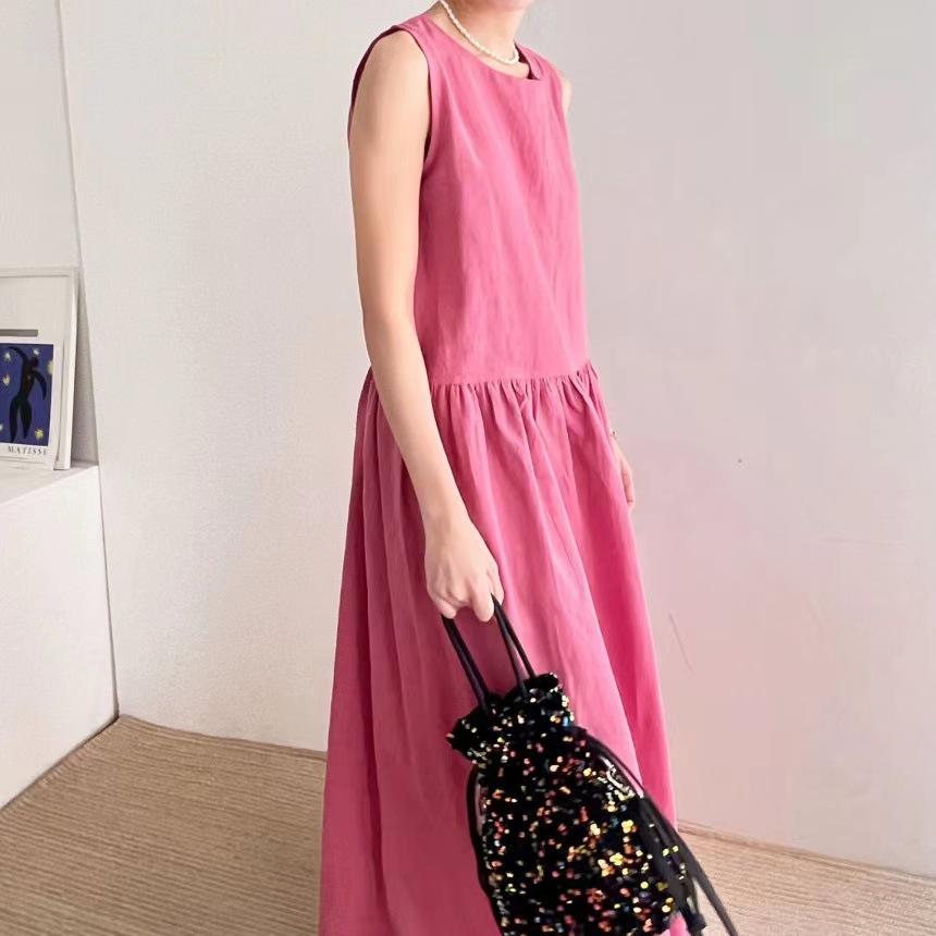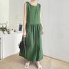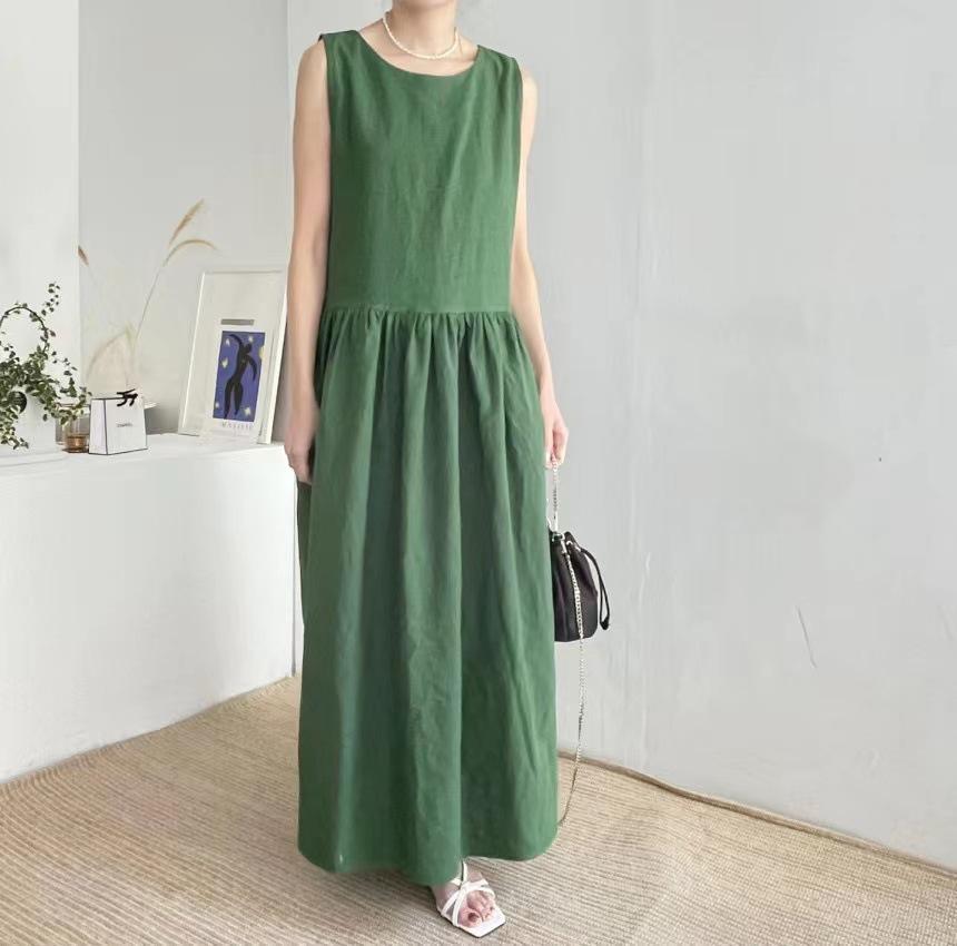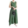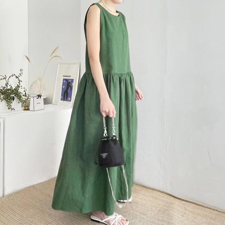 Vestido Casual de Estilo Coreano Nuevo 2025 Verano Cuello Redondo Largo sin Mangas Algodón-Lino Vestido Falda Larga