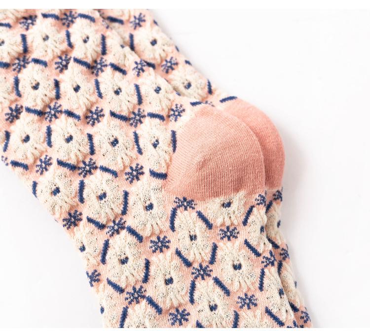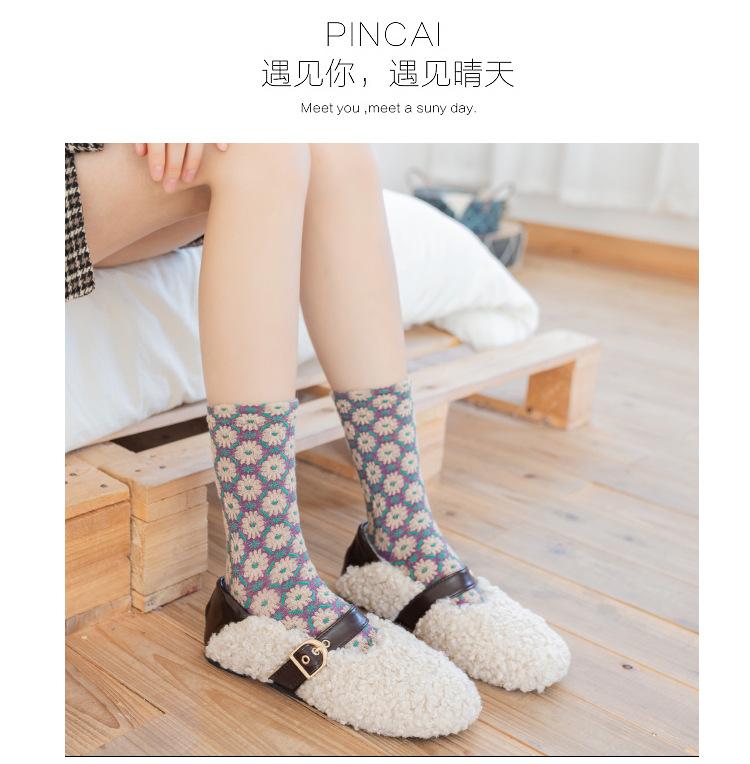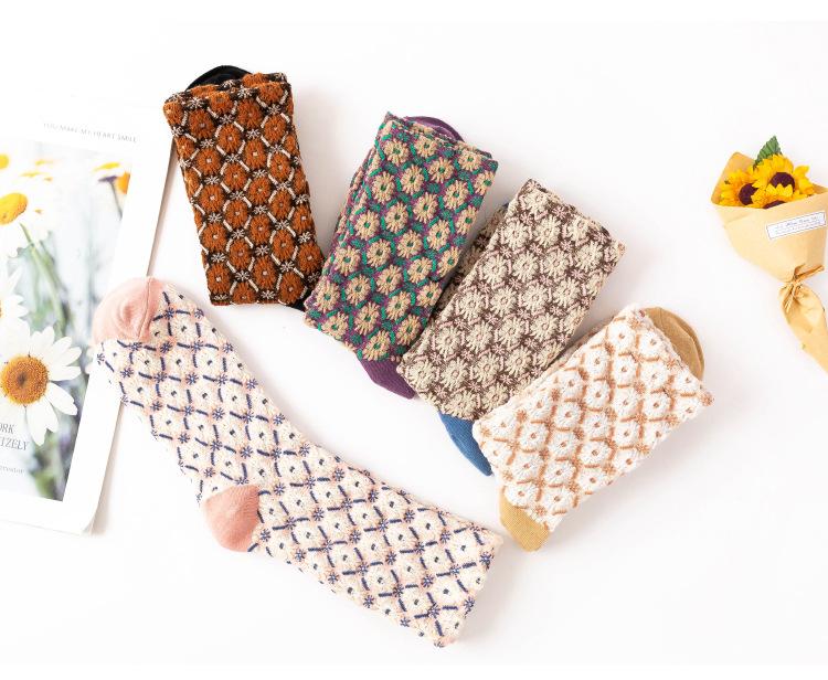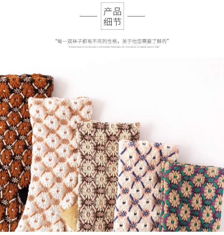 Compra Calcetines de algodón de moda japoneses con diseño retro de crisantemo tridimensional y flores pequeñas para mujer, otoño e invierno de 2021. al por mayor en Joom.pro