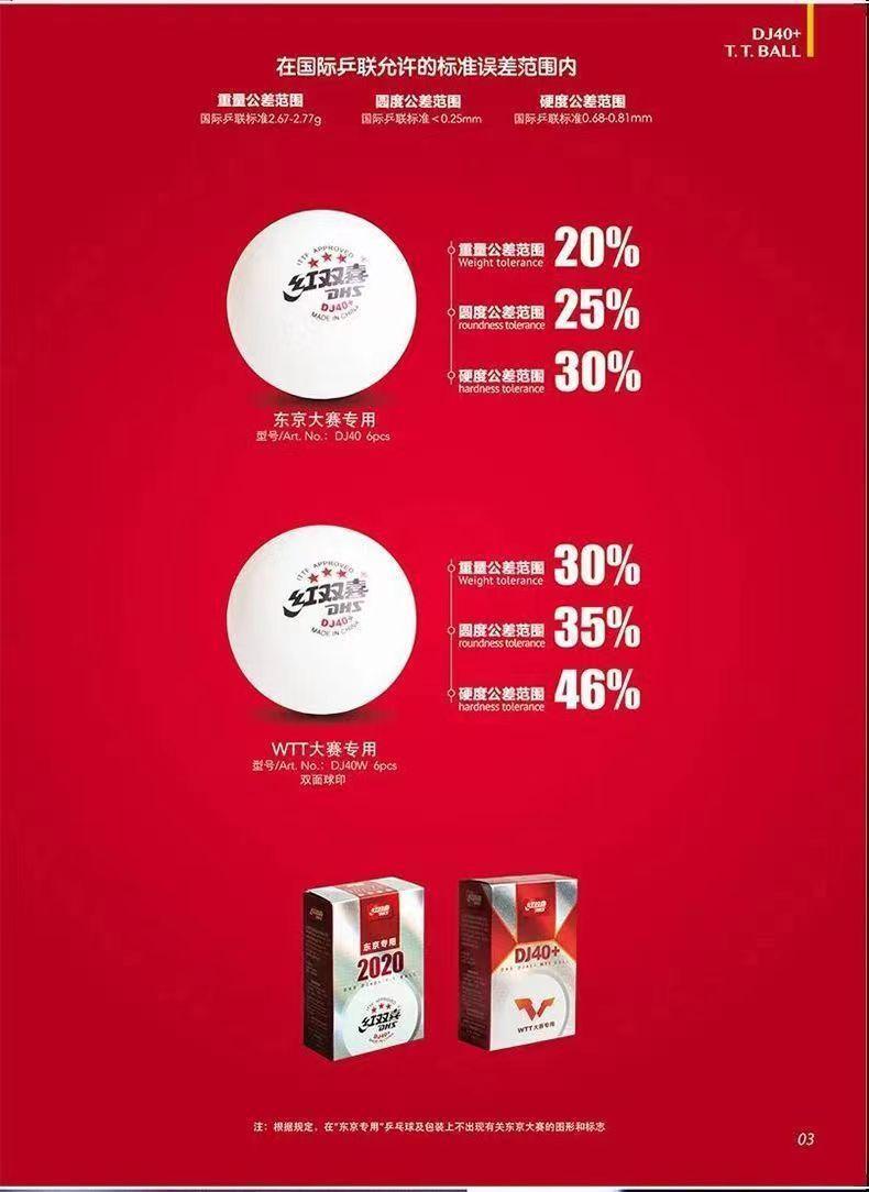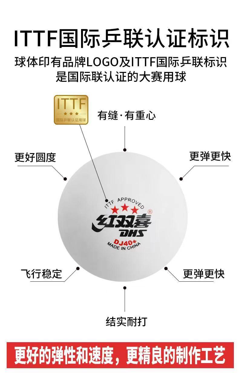Pelota de Tenis de Mesa Genuina Doble Felicidad Tres Estrellas con Costura 2020 Tokio Dj Competición Profesional Tenis de Mesa Estándar Wtt 40+