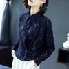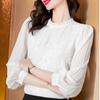 Diseño de nicho top de mujer de manga larga primavera y otoño camisa ajustada a la cintura estilo occidental camisa de encaje gasa de mujer mamá