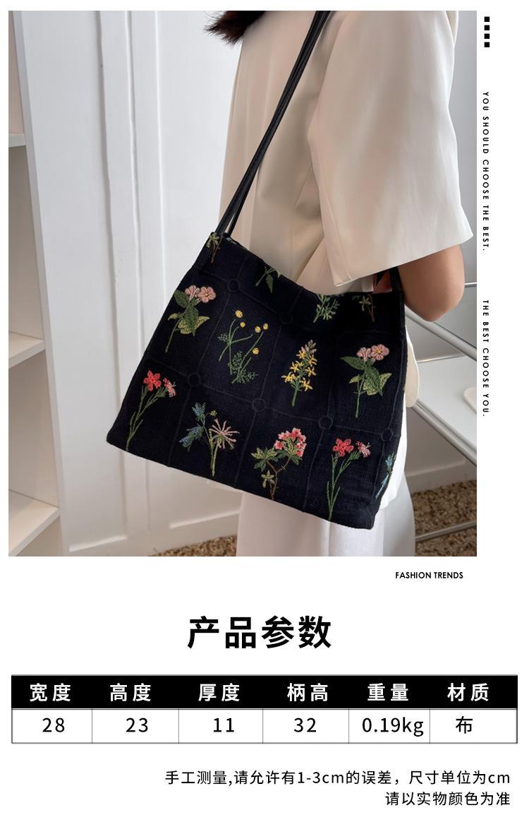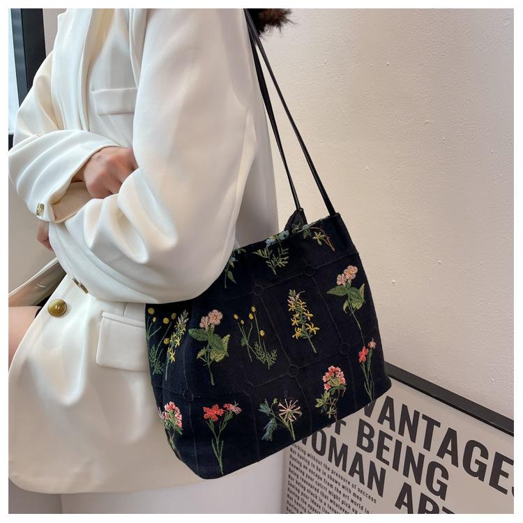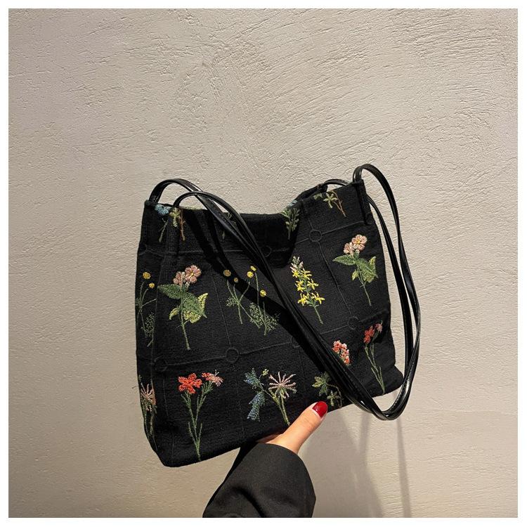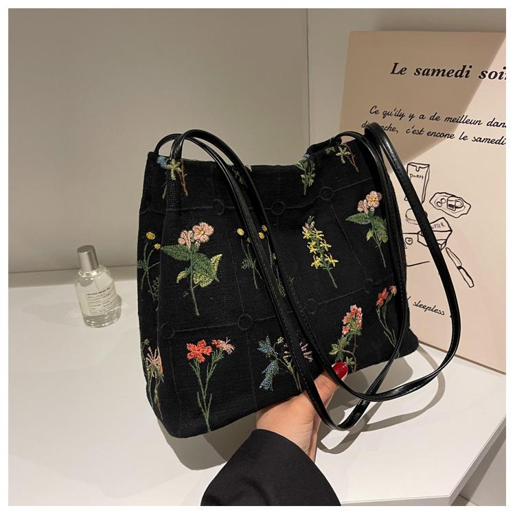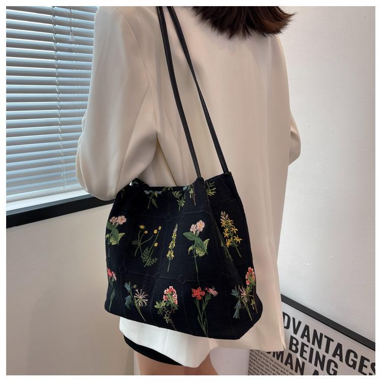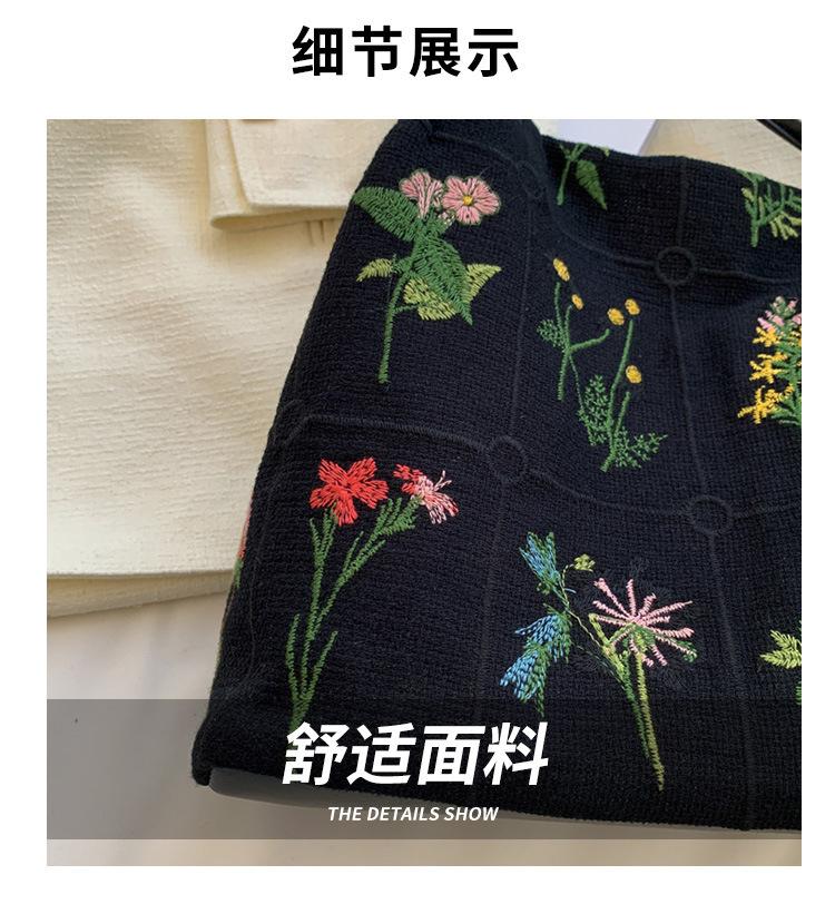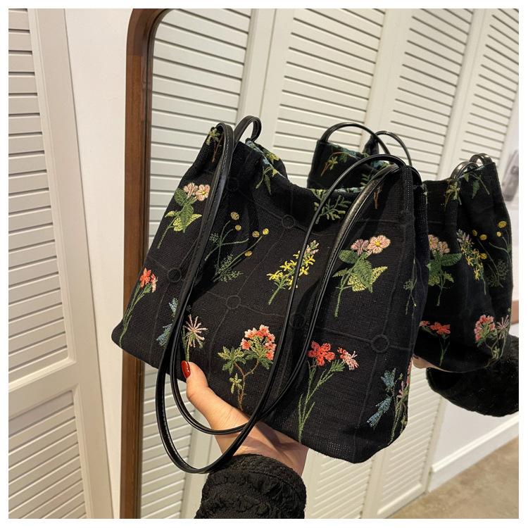 Bolso Tote Bordado de Gran Capacidad para Mujer 2024 Primavera y Verano Nuevo Nicho Lona Bordado Bolso de Hombro Bolso Balde para Viajero