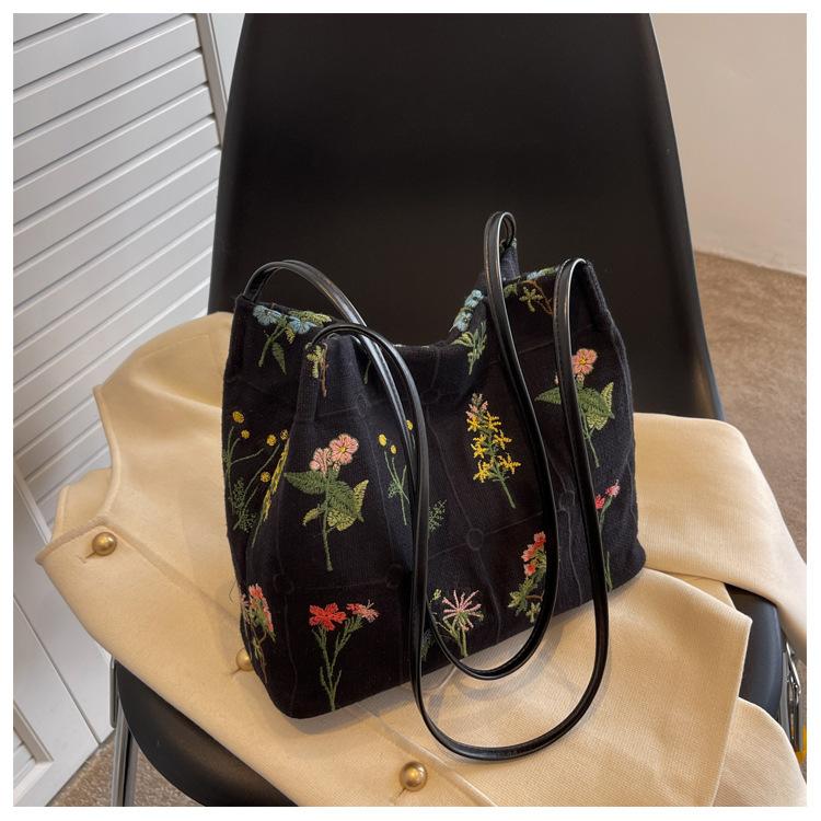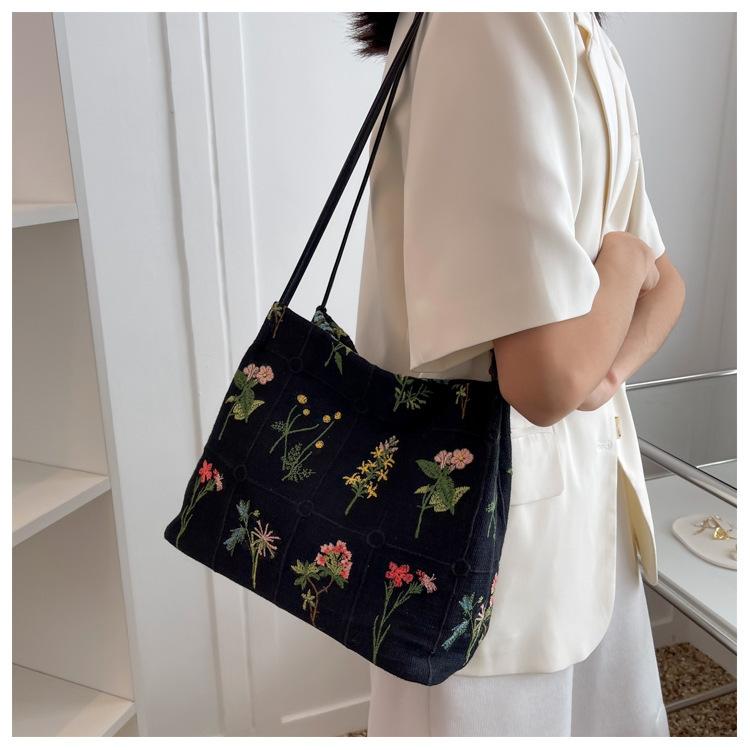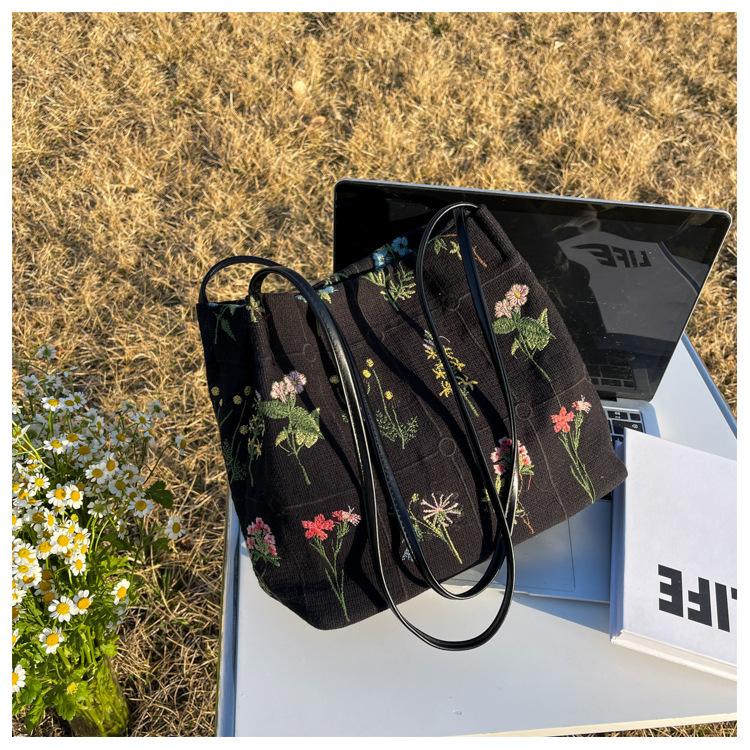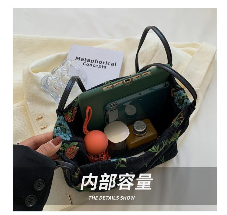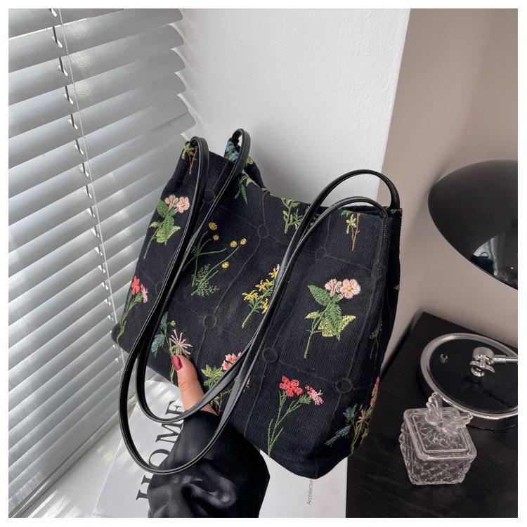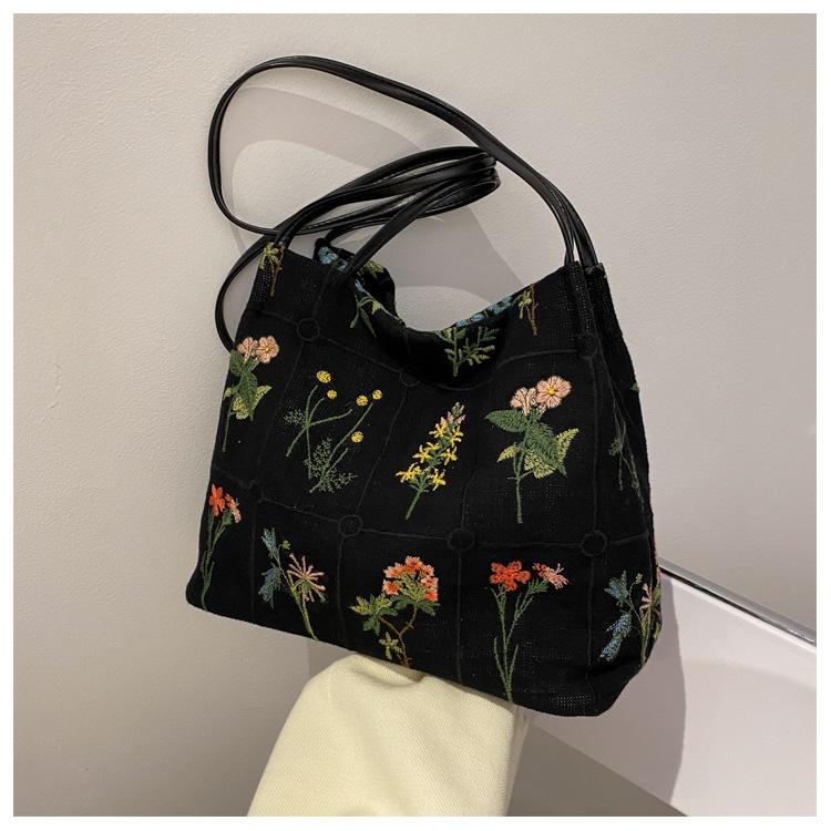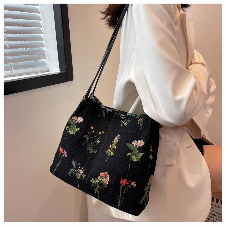 Bolso Tote Bordado de Gran Capacidad para Mujer 2024 Primavera y Verano Nuevo Nicho Lona Bordado Bolso de Hombro Bolso Balde para Viajero