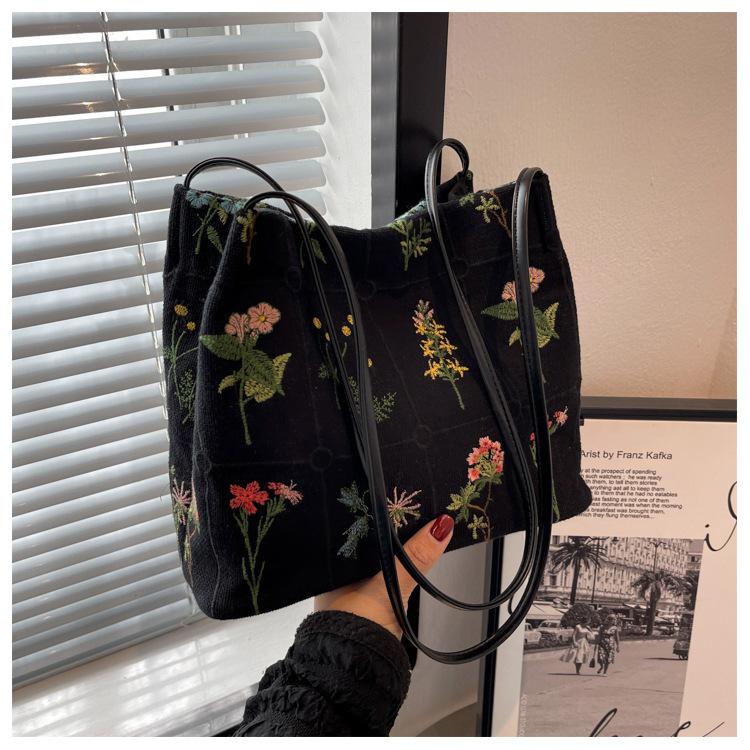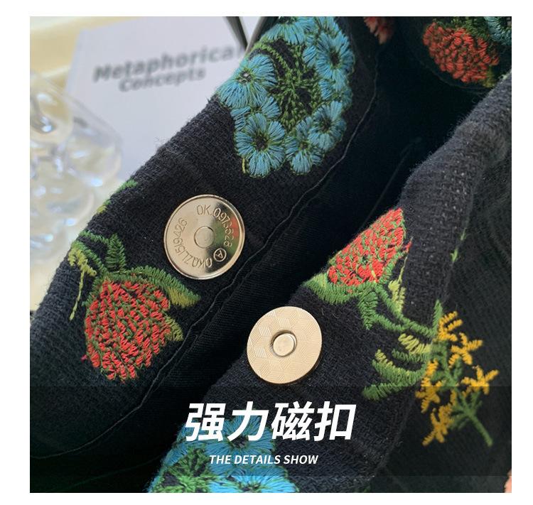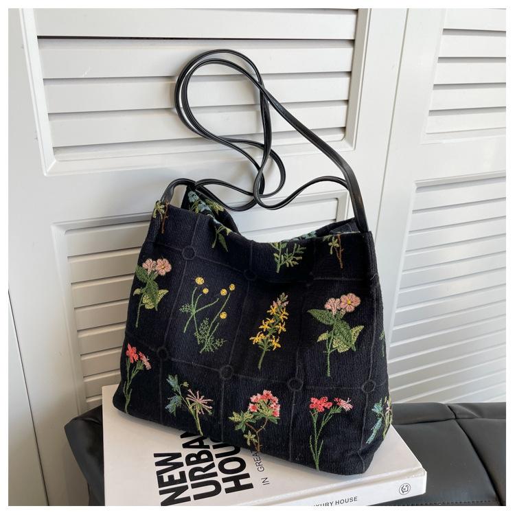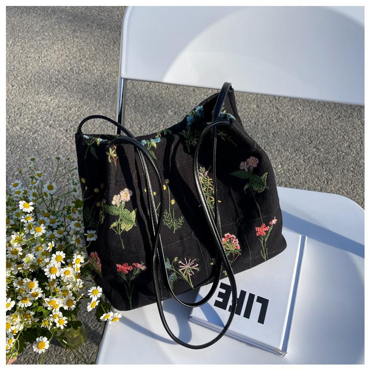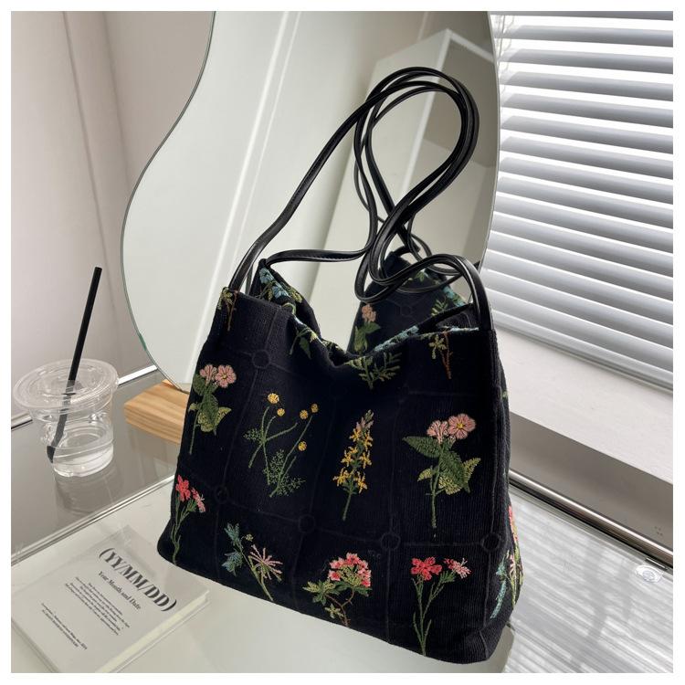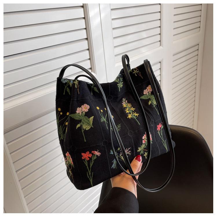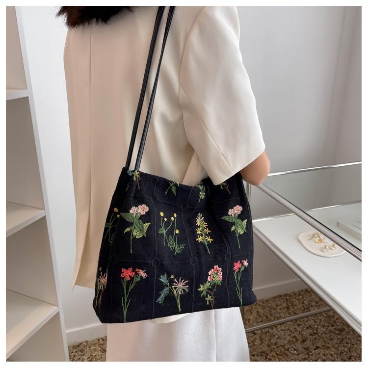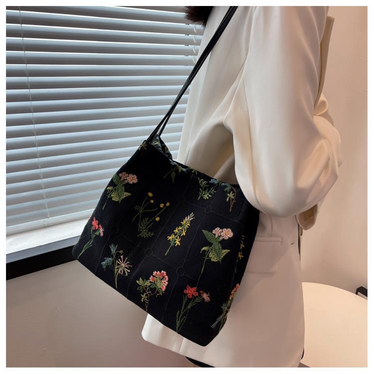 Bolso Tote Bordado de Gran Capacidad para Mujer 2024 Primavera y Verano Nuevo Nicho Lona Bordado Bolso de Hombro Bolso Balde para Viajero
