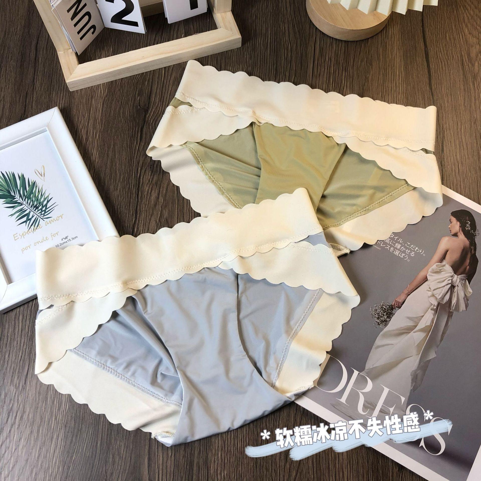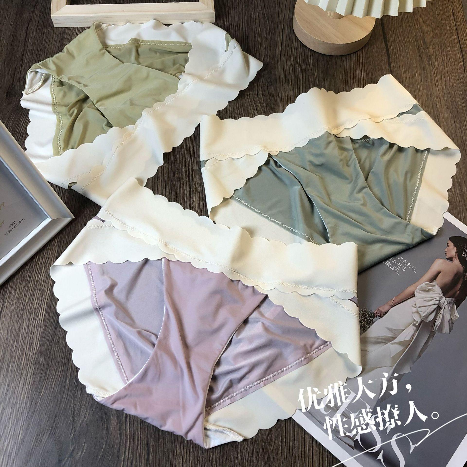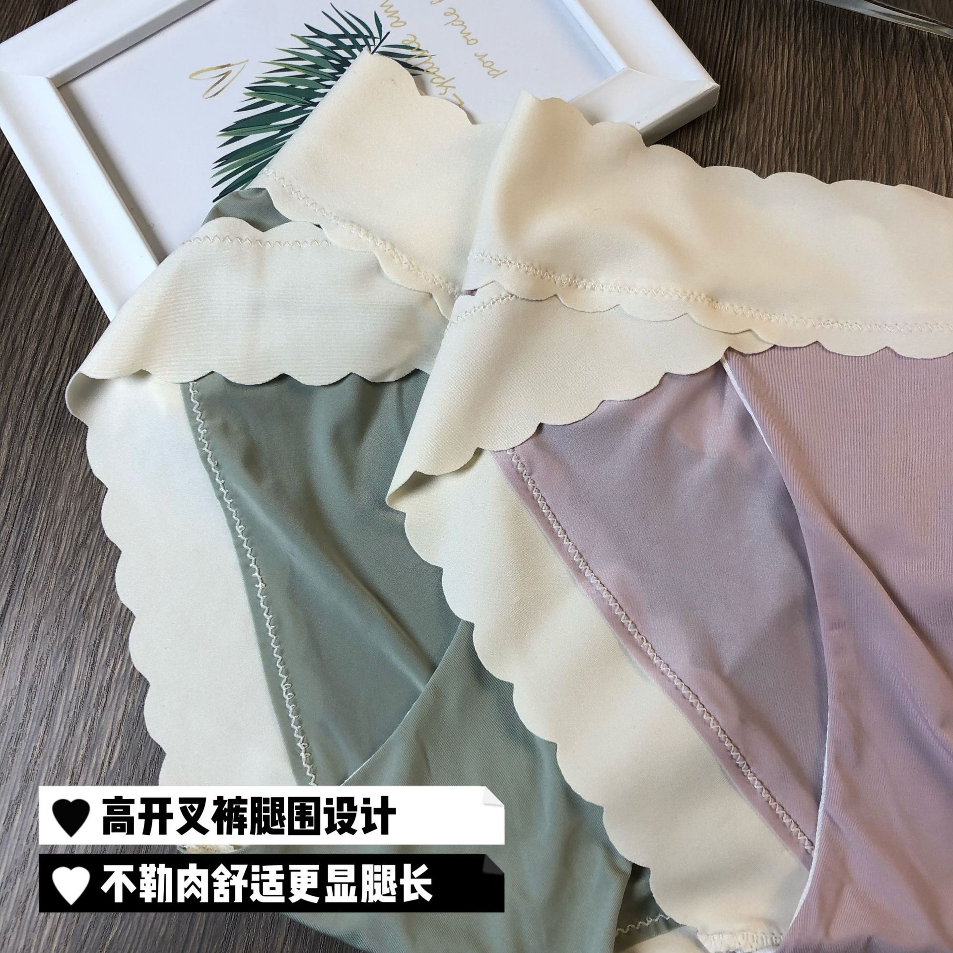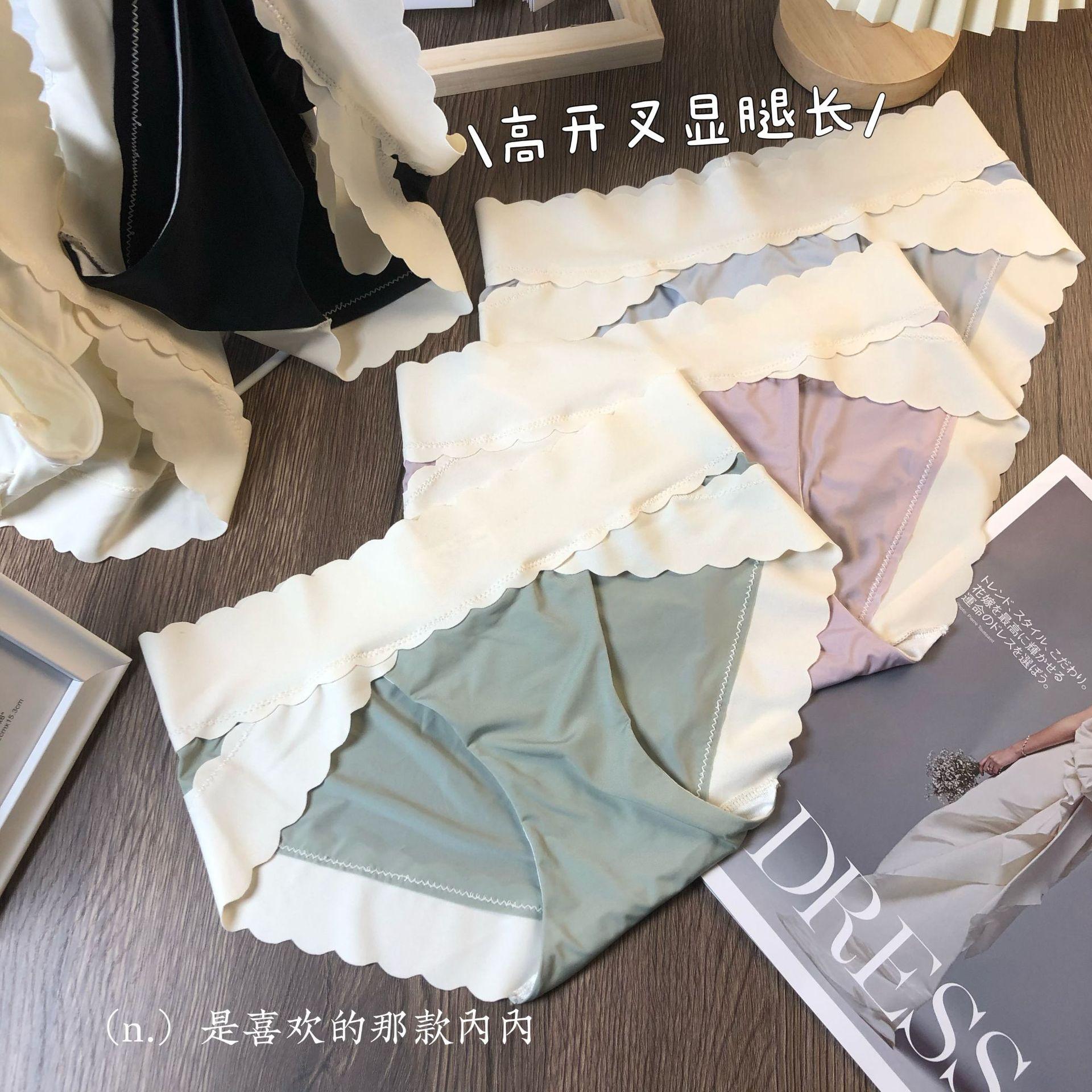 Fangtang puro corte alto nude Ropa interior sin costuras de Seda de Hielo para mujer algodón borde ondulado cintura baja que envuelve la cadera calzoncillos de secado rápido