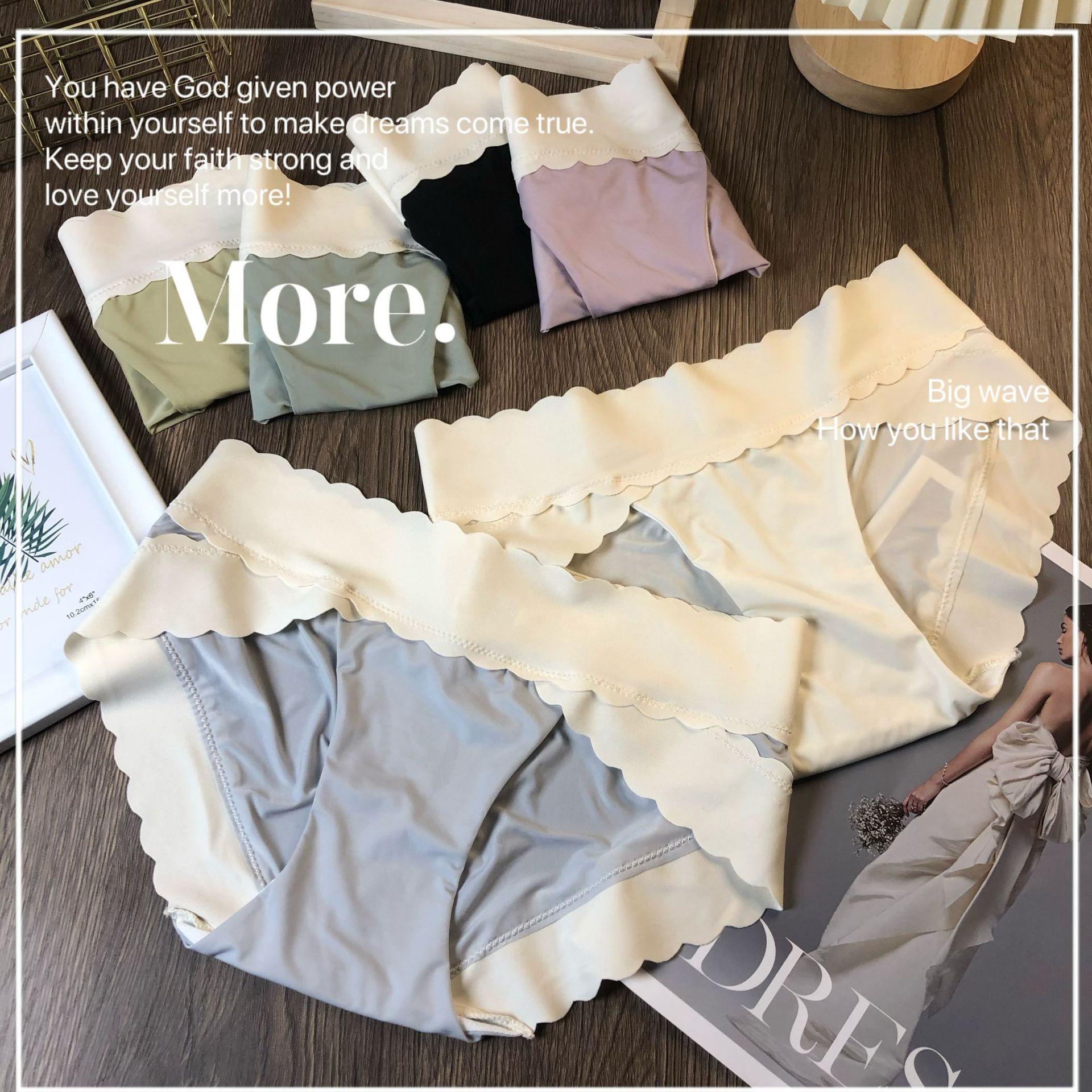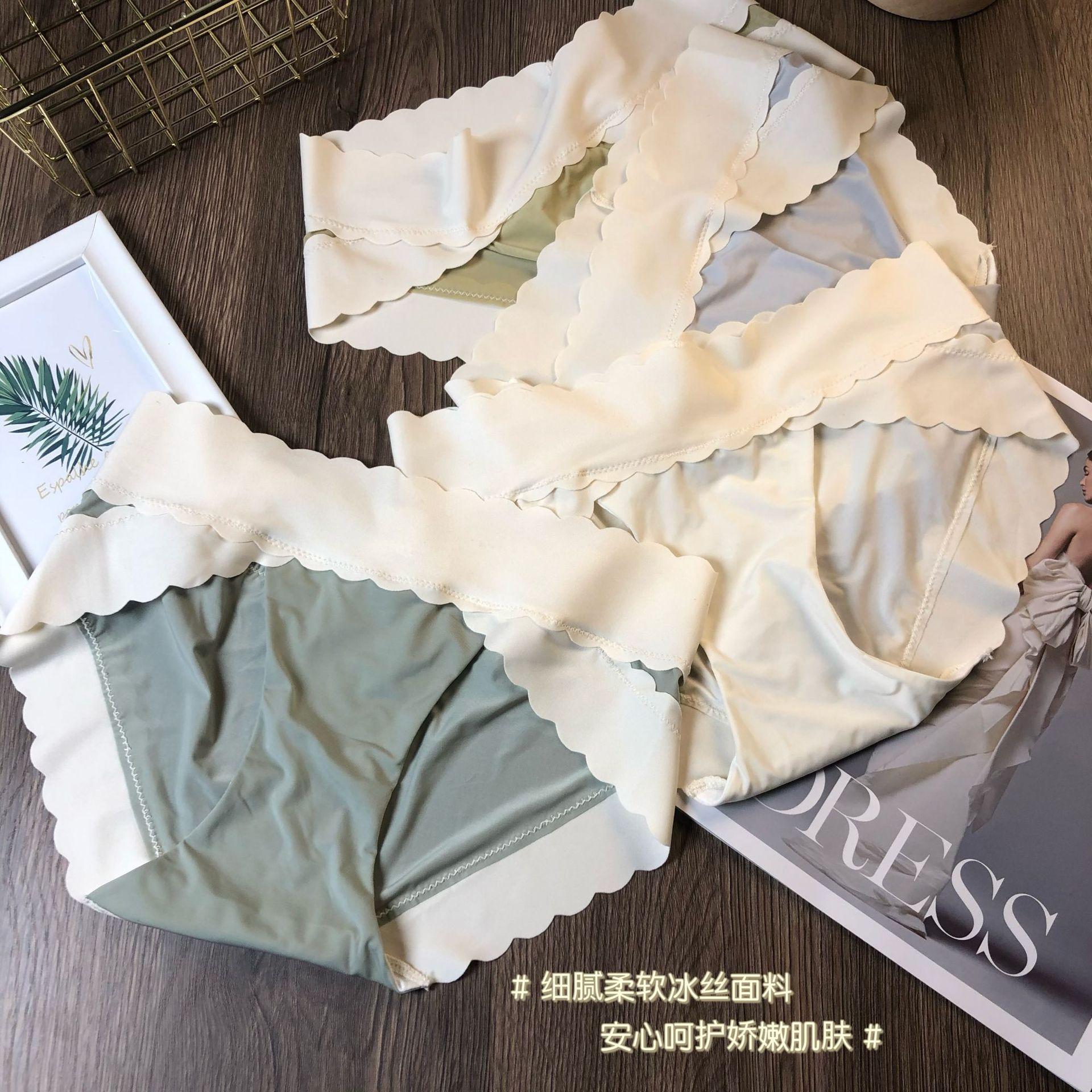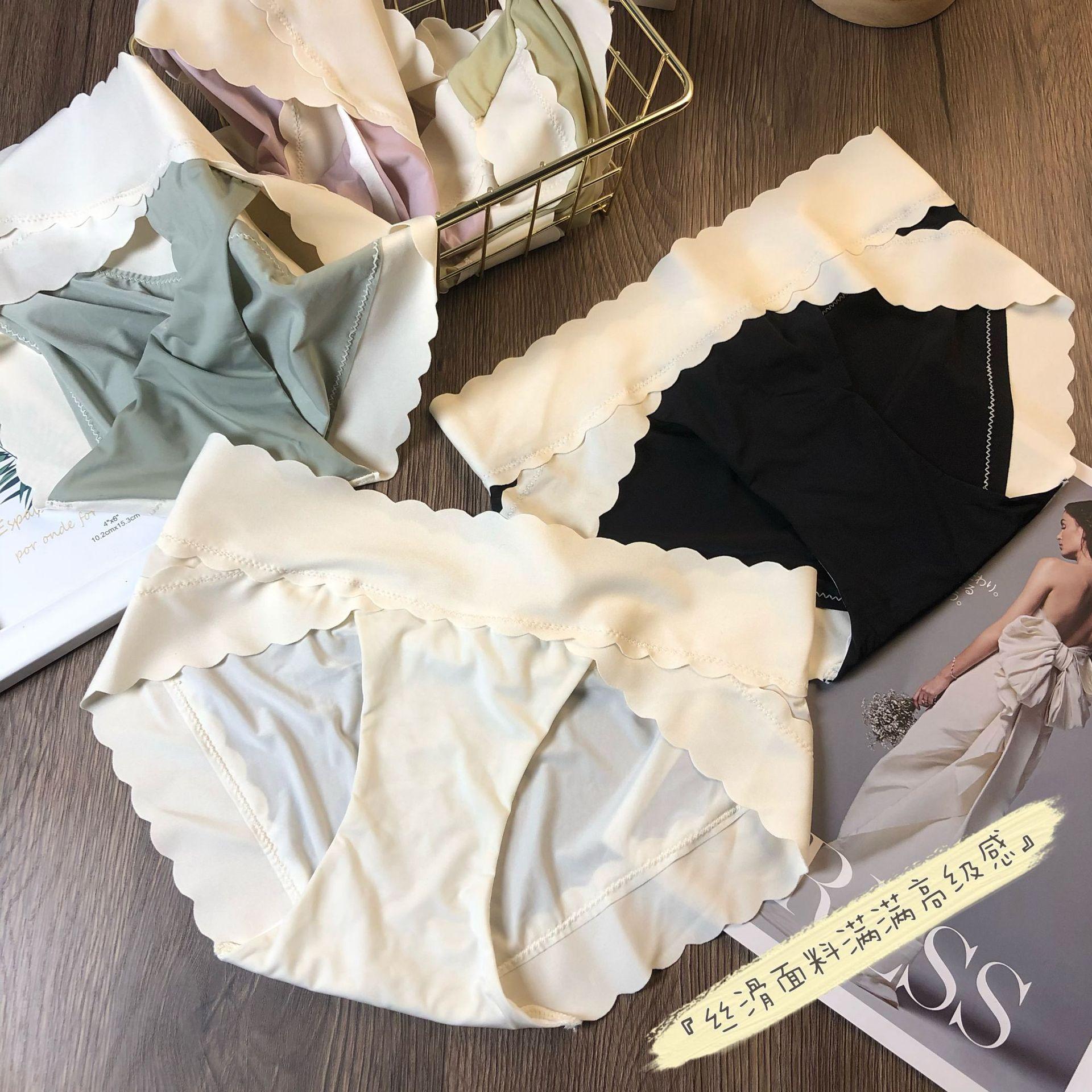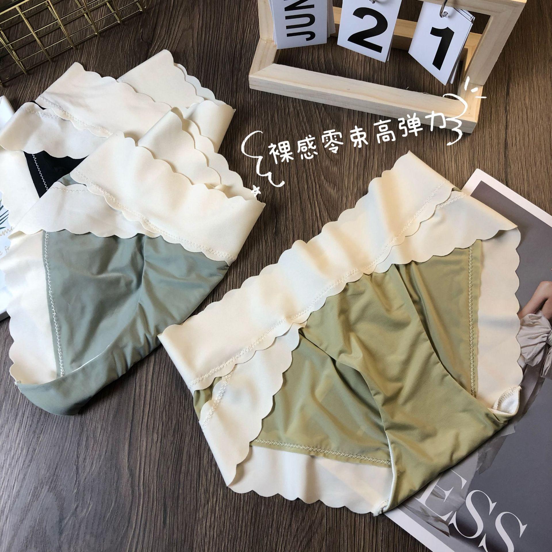 Fangtang puro corte alto nude Ropa interior sin costuras de Seda de Hielo para mujer algodón borde ondulado cintura baja que envuelve la cadera calzoncillos de secado rápido