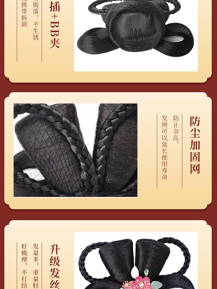 i04 hairpin single (left and right random) + M170 small comb pair + T05 golden flower pair + VP027 wig