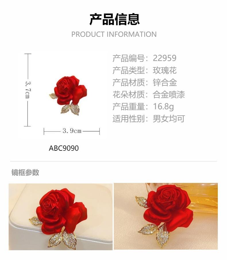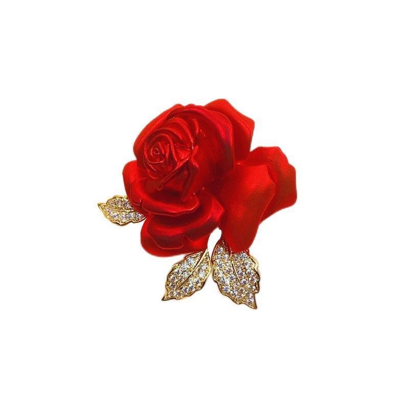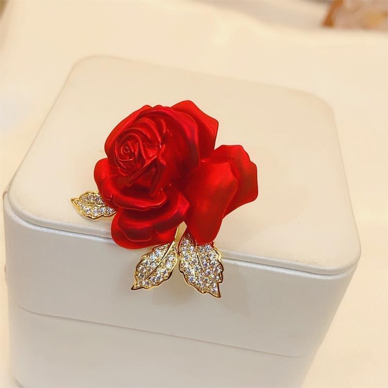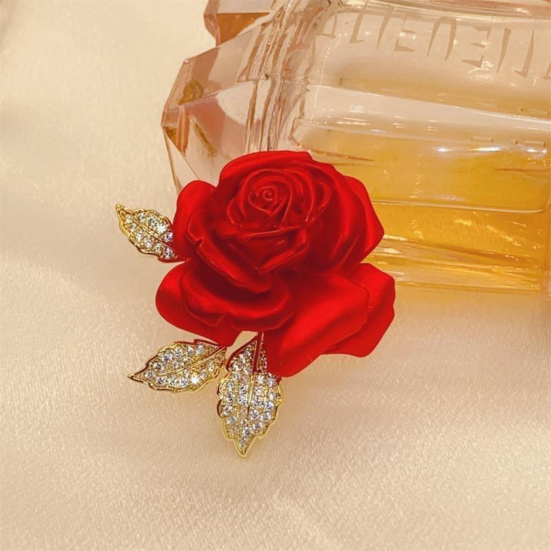 Broche elegante de rosa roja, accesorios de traje de alta gama, broche de diseño exquisito y elegante para ropa de moda al por mayor