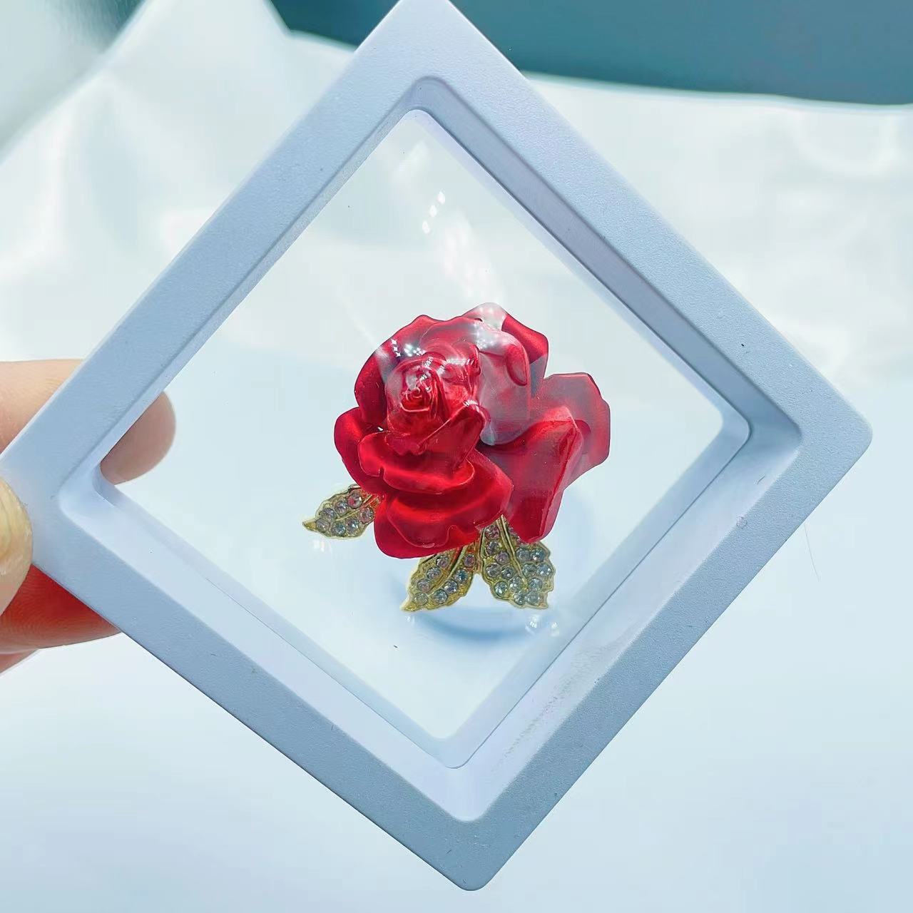 Red rose size: 3.7cm weight: 15.4g, With box - rose size: 7cm weight: 15.4g, Blue rose size: 3.7cm weight: 15.4g