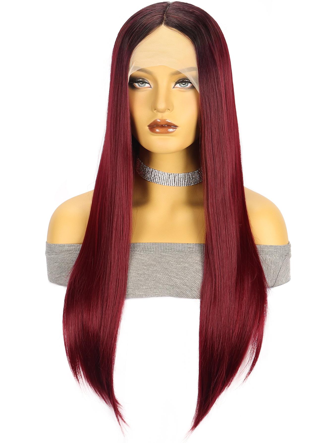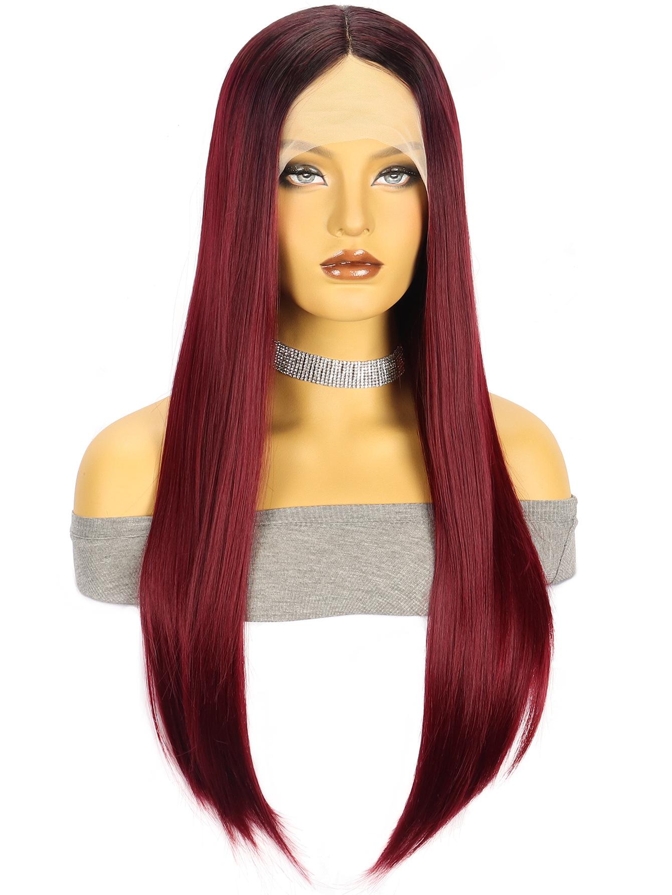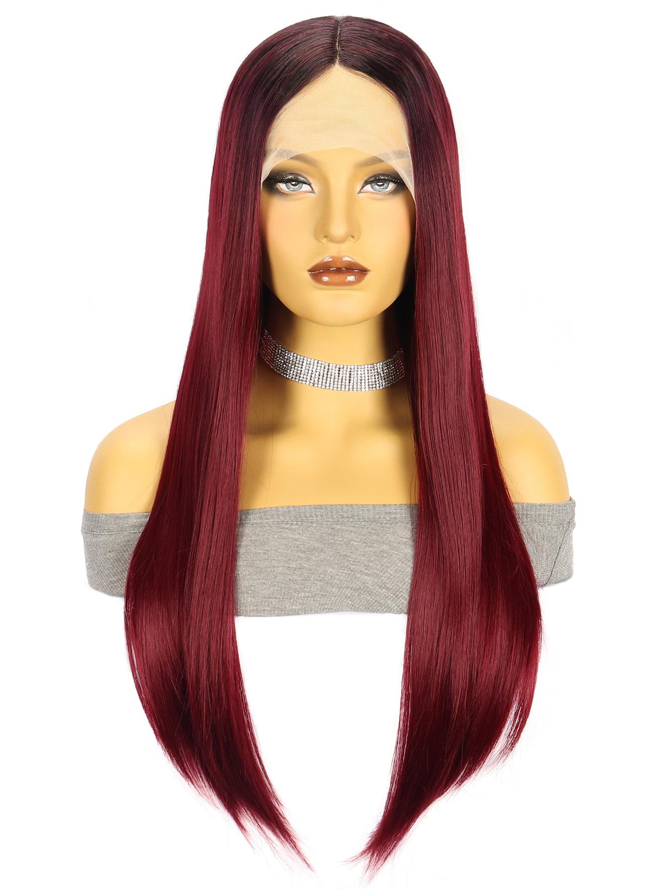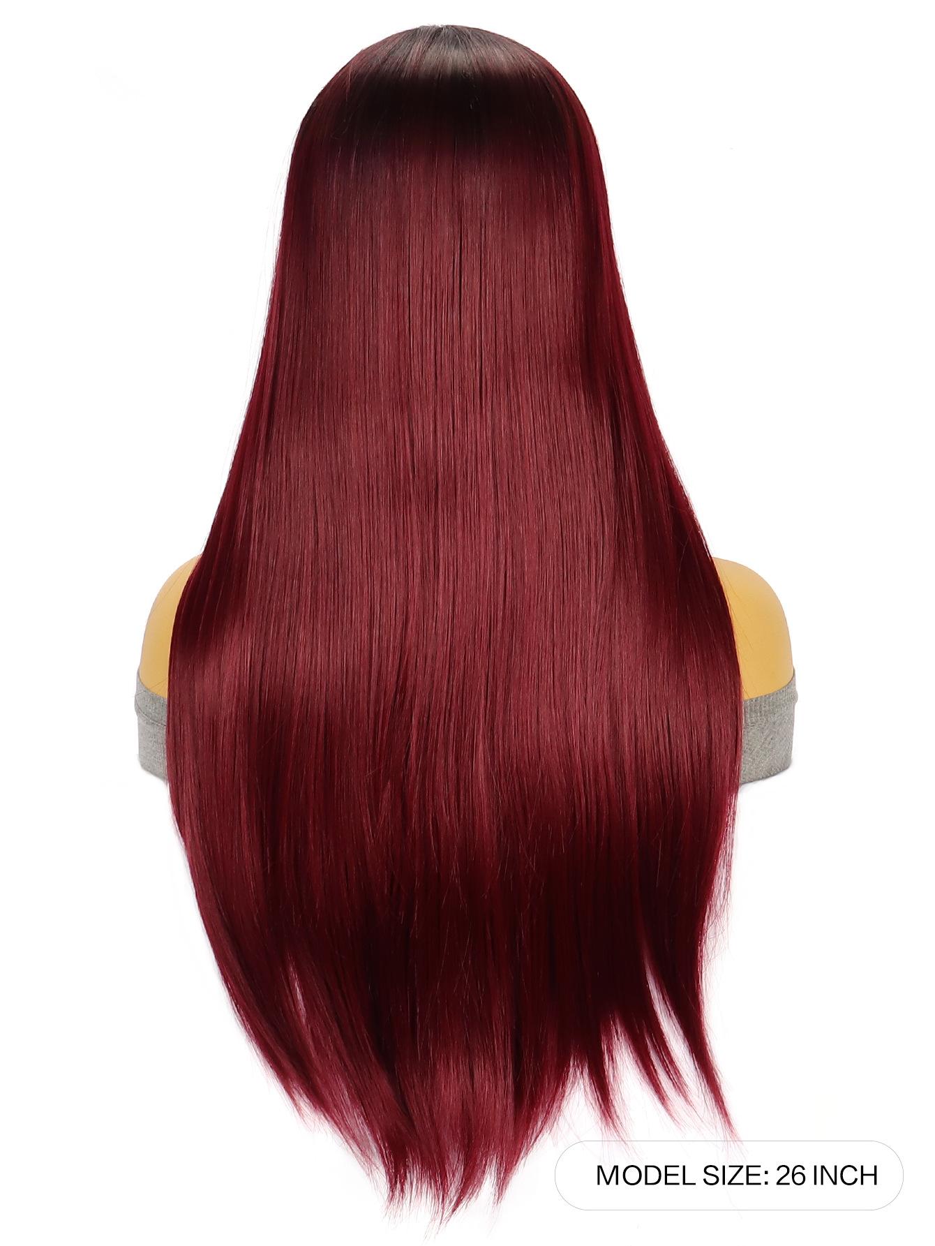 ![]() Peluca de fibra sintética con encaje frontal de 13*4*1T, peluca con diadema marrón degradado, cabello largo y liso, venta al por mayor