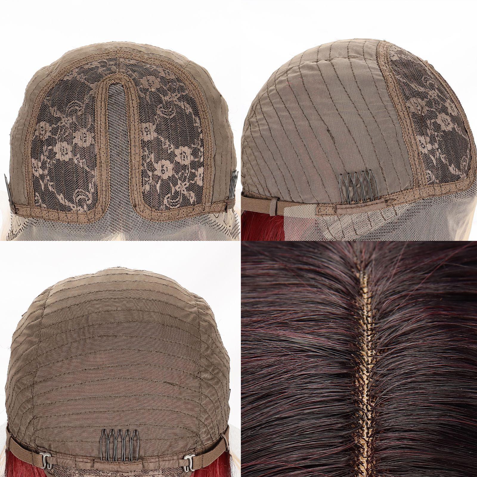 ![]() Peluca con raya al lado, parte frontal de encaje, tocado sintético, cabello negro corto y liso, fabricante de pelucas Xuchang, pieza confeccionada para entrega