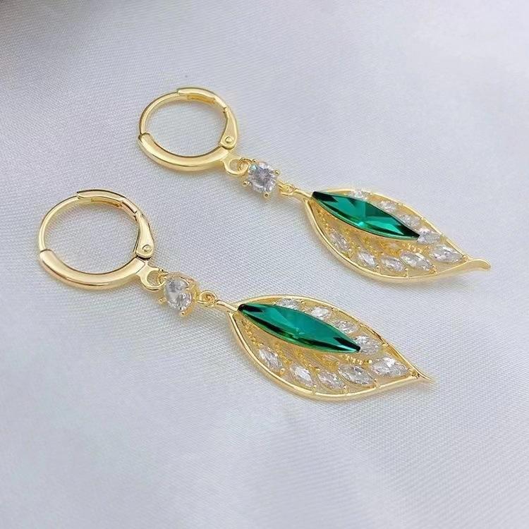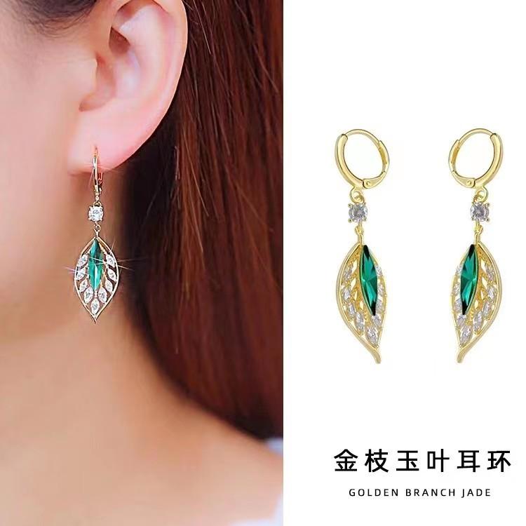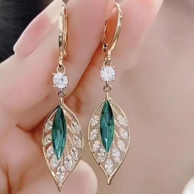 2025 Nuevos Pendientes de Borla de Circonita de Hoja Verde de Moda Lujo Accesible Moda de Alta Gama Pendientes Elegantes Pendientes Versátiles