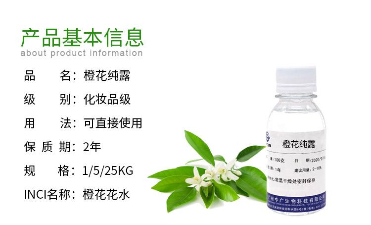 Flor de naranja saturada pura Rocío líquido destilado Agua de flor de naranja Tónico Planta Cuidado de la piel Materias primas cosméticas al por mayor 1KG