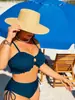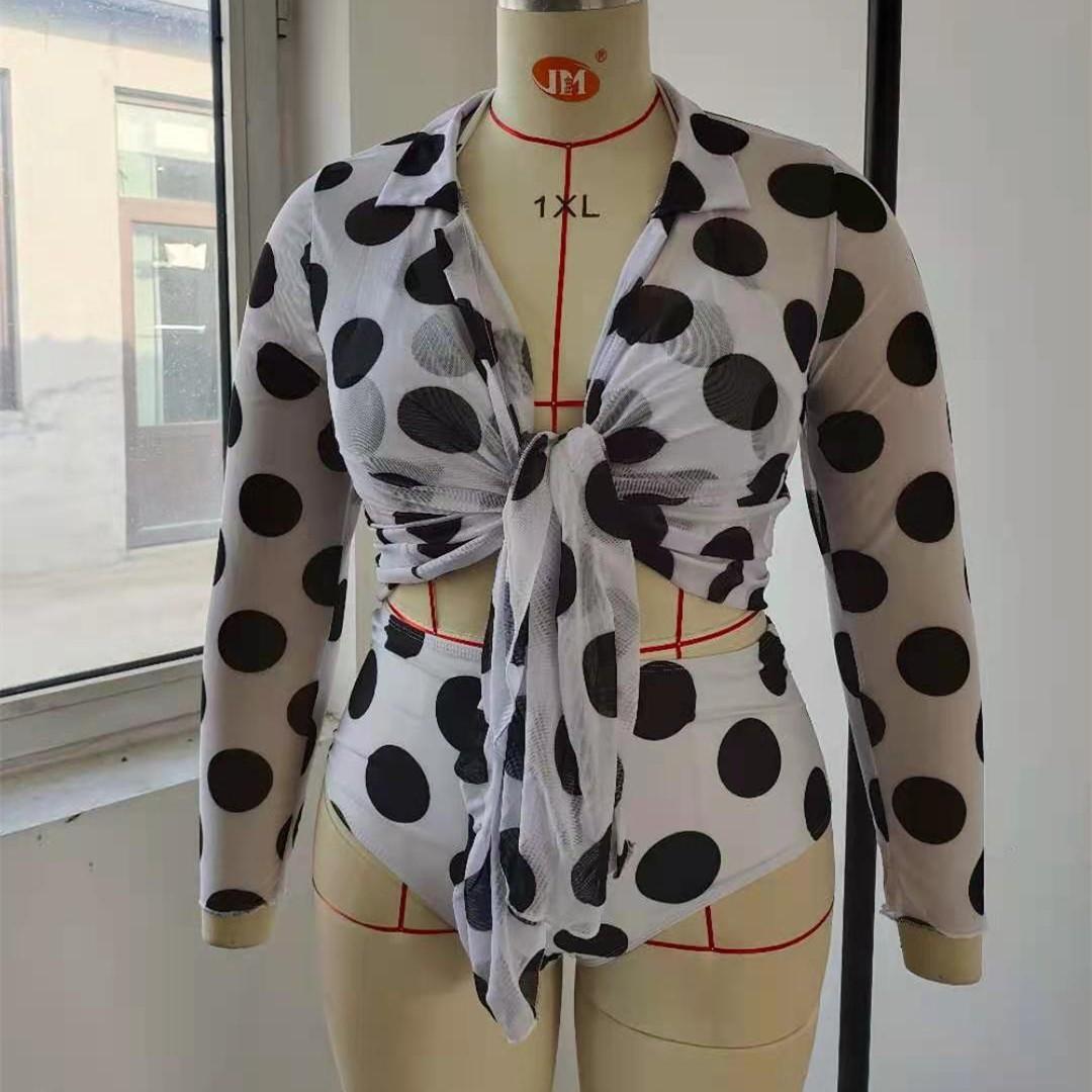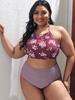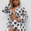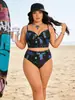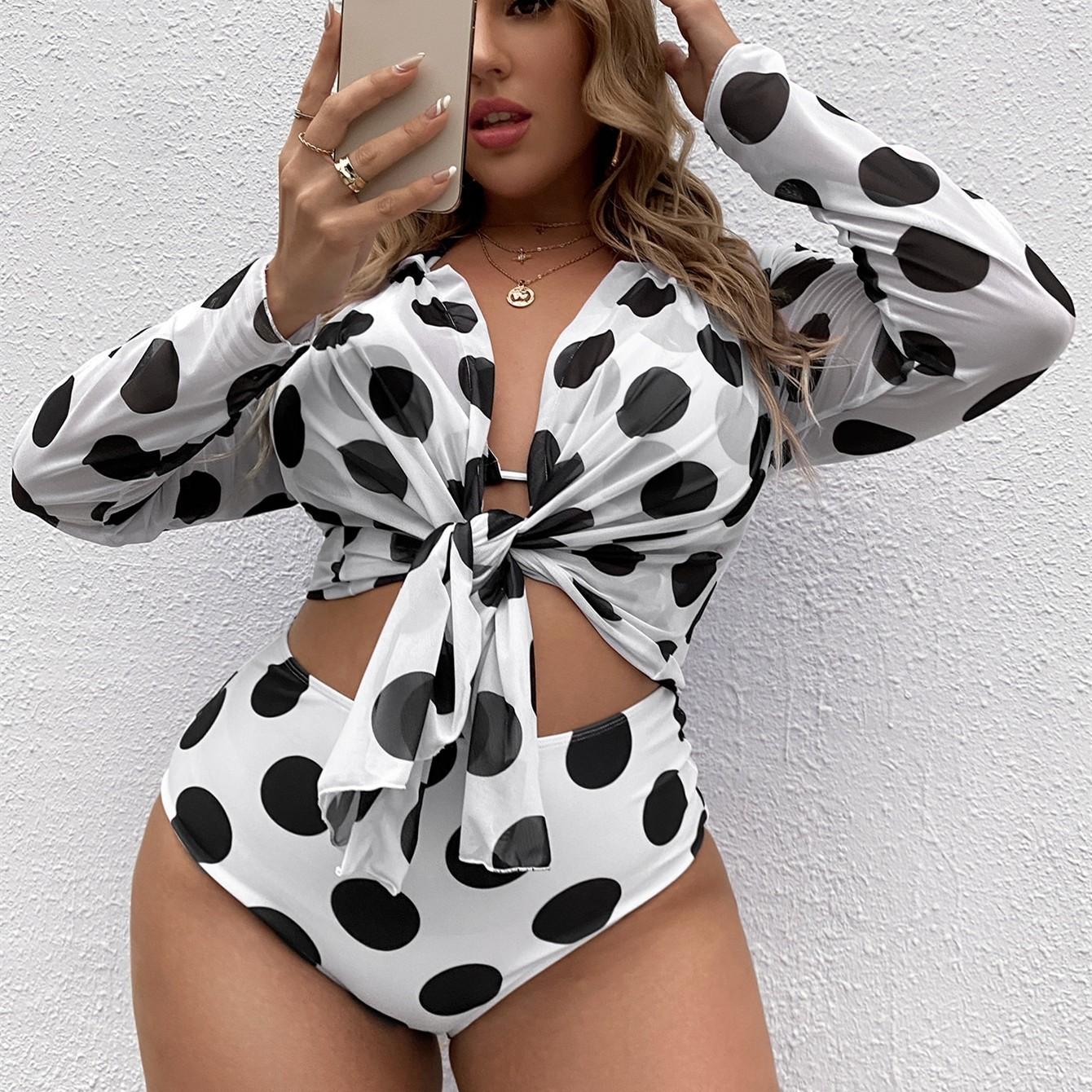 Europeo y Americano Transfronterizo Nuevo Bikini de Talla Grande para Mujer de Manga Larga Estampado y Gordo Traje de Baño Bikini de Tres Piezas Dividido