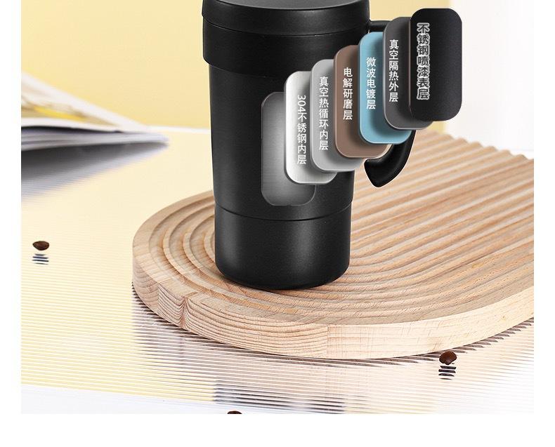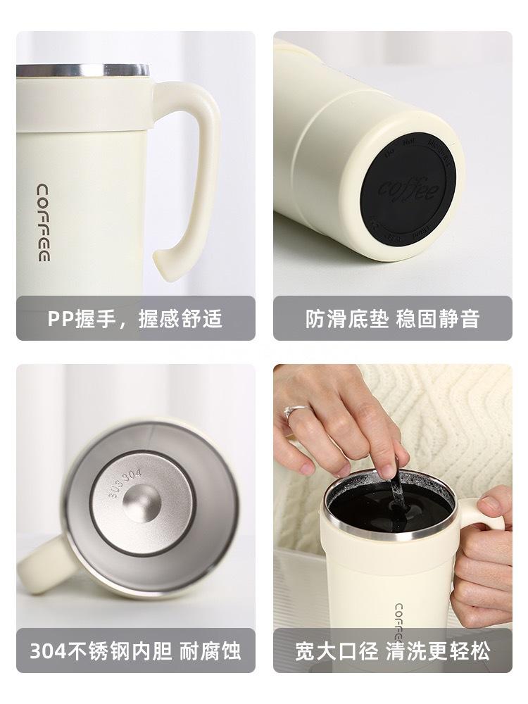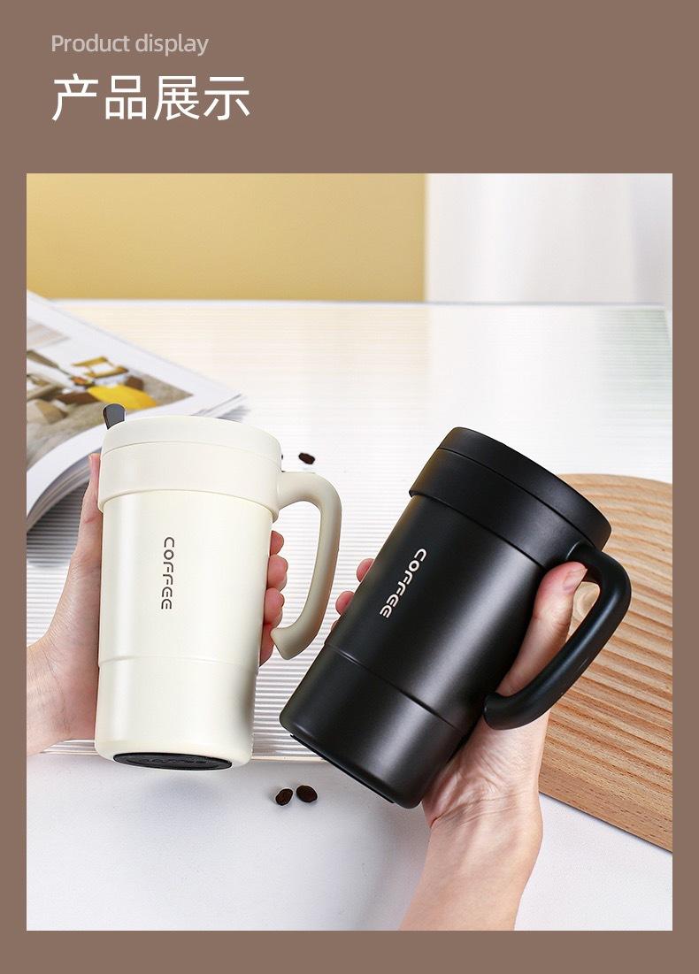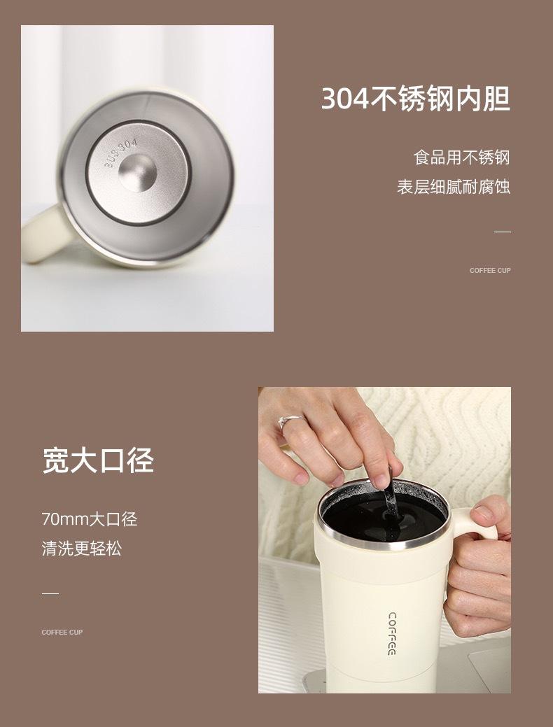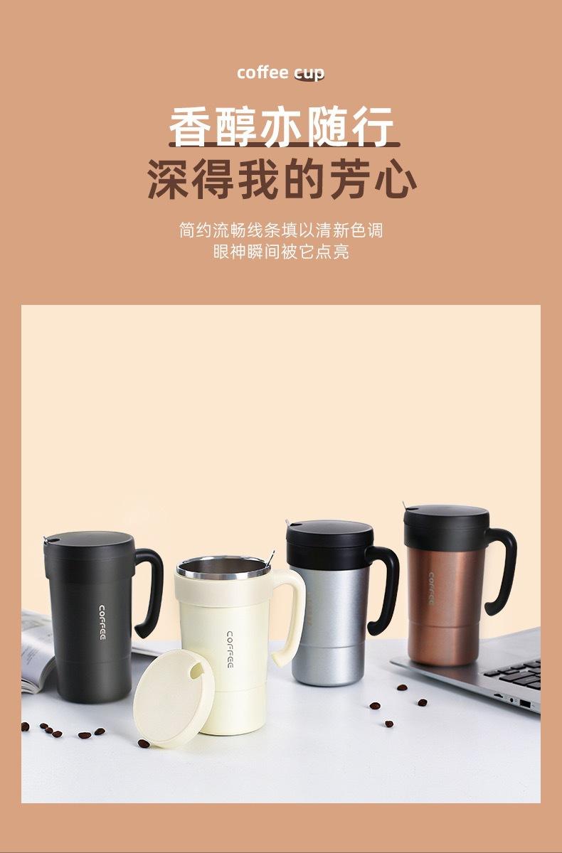 Taza de café francesa de acero inoxidable 304, taza de agua para oficina con cuchara, taza de regalo con aislamiento, taza con asa creativa