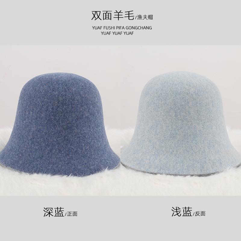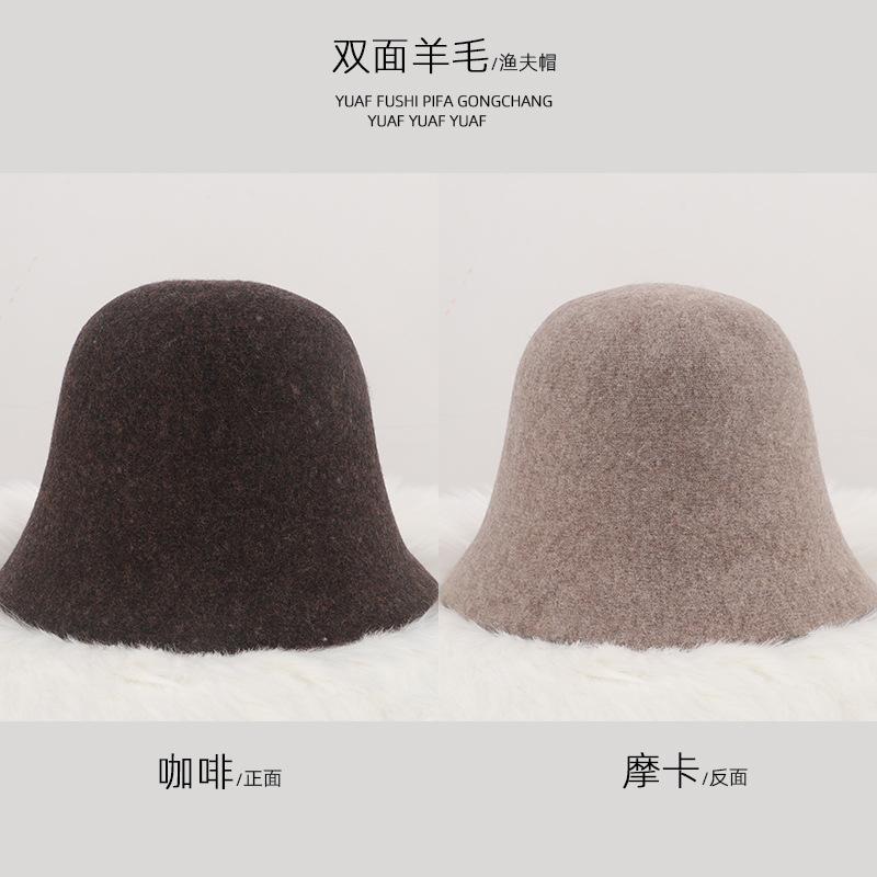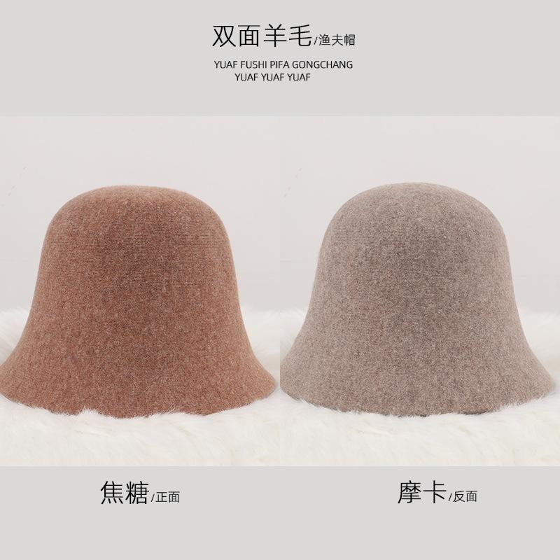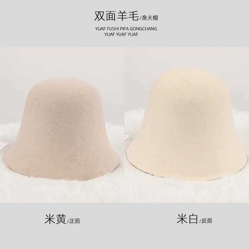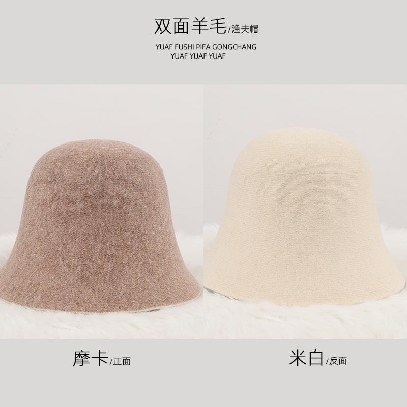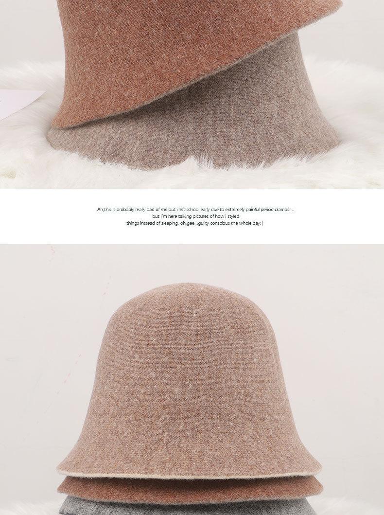 Sombrero de Mujer Otoño e Invierno Sombrero de Pescador de Lana de Doble Cara Liso Cubre Cara Estilo Japonés Ducha Facial Cubo Pequeño Cálido Color Sólido Sombrero de Cubeta