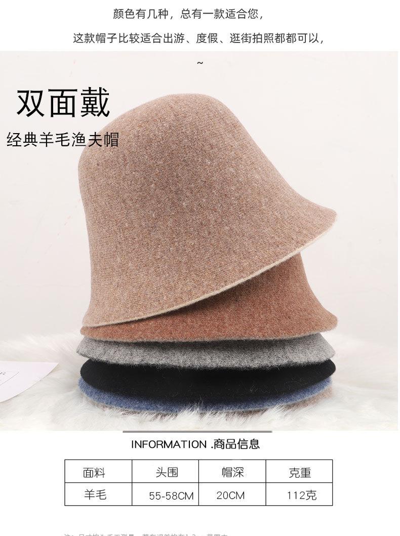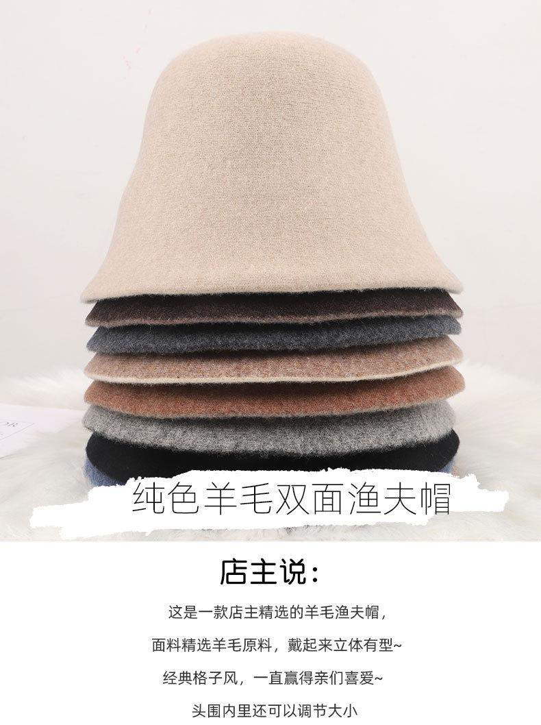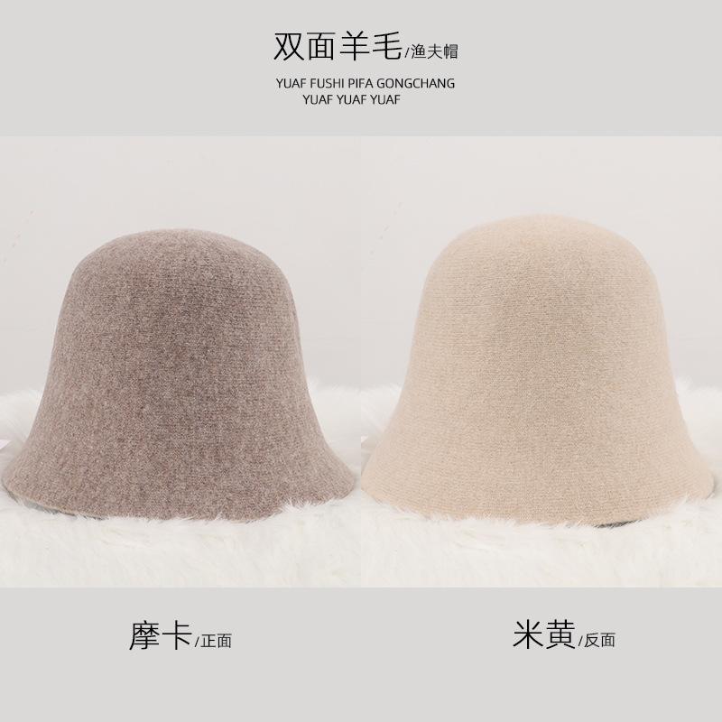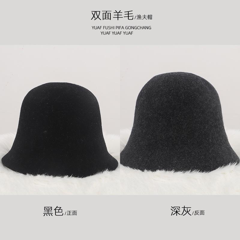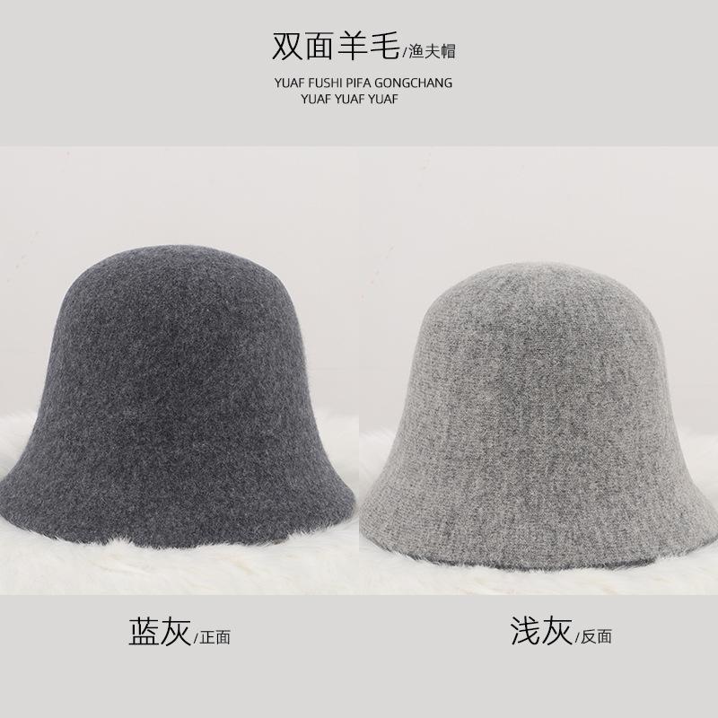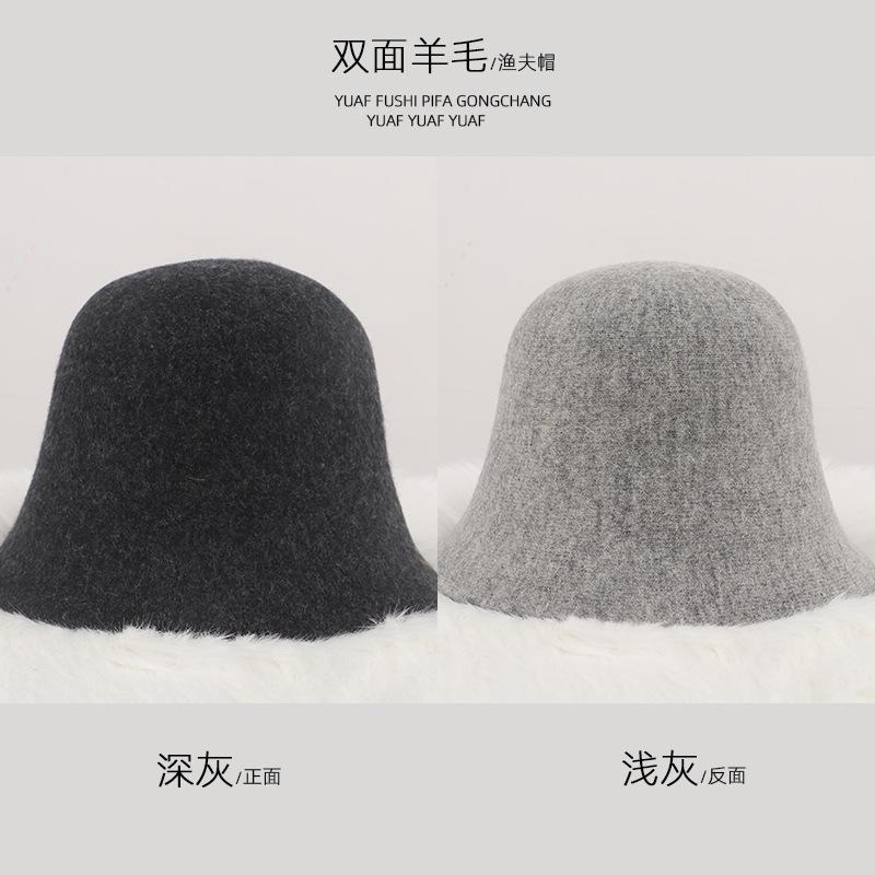 Sombrero de Mujer Otoño e Invierno Sombrero de Pescador de Lana de Doble Cara Liso Cubre Cara Estilo Japonés Ducha Facial Cubo Pequeño Cálido Color Sólido Sombrero de Cubeta