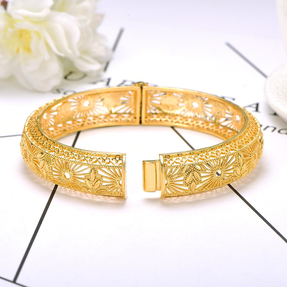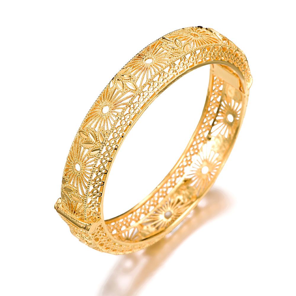 Ventas directas de fábrica AliExpress pulsera hueca caliente al por mayor pulsera de planta de flor hebilla pulsera abierta joyería chapada en oro de cobre