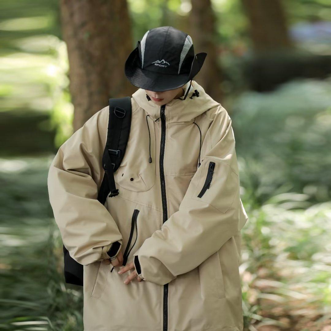 Chaqueta de moda americana con capucha para hombre, nueva chaqueta holgada de primavera y otoño para hombre, chaqueta informal impermeable para exteriores de montaña