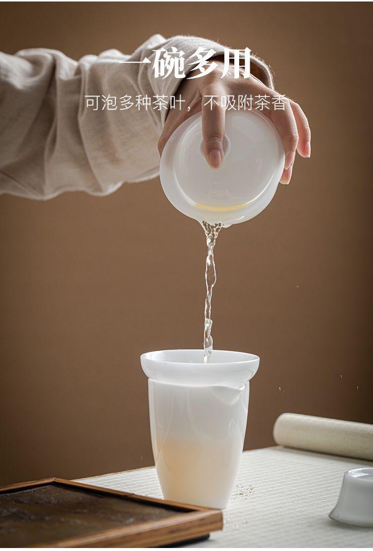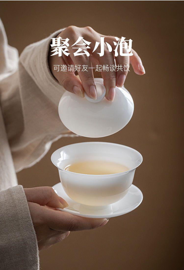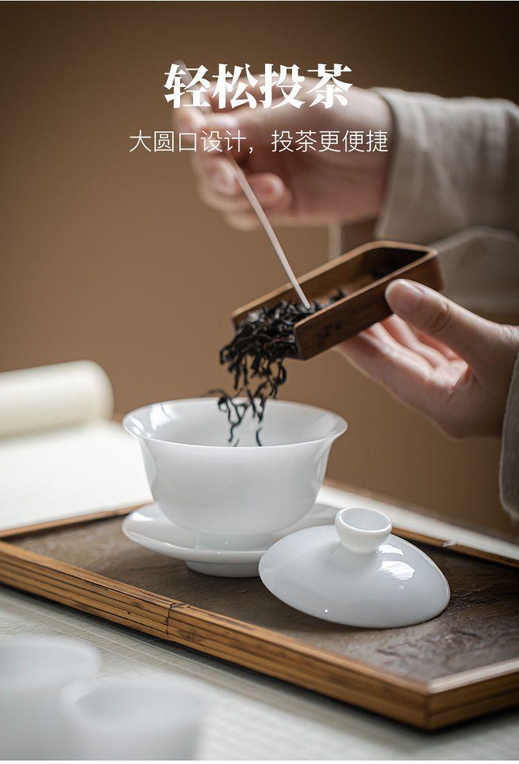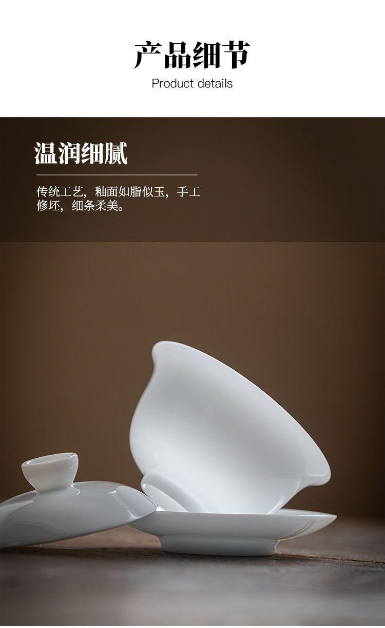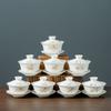 Juego de té kung fu de porcelana blanca jade grasa de oveja de hielo Taza de té con cubierta y tazón para servir Oficina Hogar Sala de estar Caja de regalo de alta gama