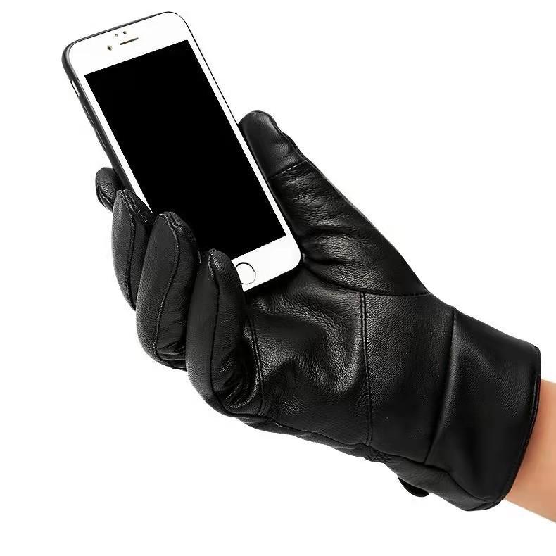 Guantes de Pantalla Táctil para Hombre Piel de Oveja Cabeza Negro Invierno Cálidos Guantes Ciclismo Conducción Deportes al Aire Libre Cálidos
