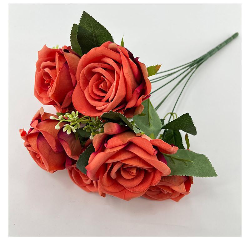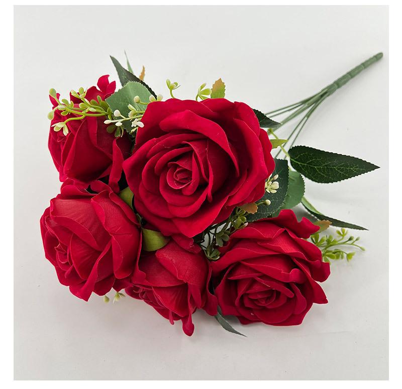 Adornos de Decoración para el Hogar Ramo de Flores Artificiales de Rosa de Terciopelo de 7 Cabezas Boda Boda Apoyos Rosas Flores Artificiales Venta al por Mayor
