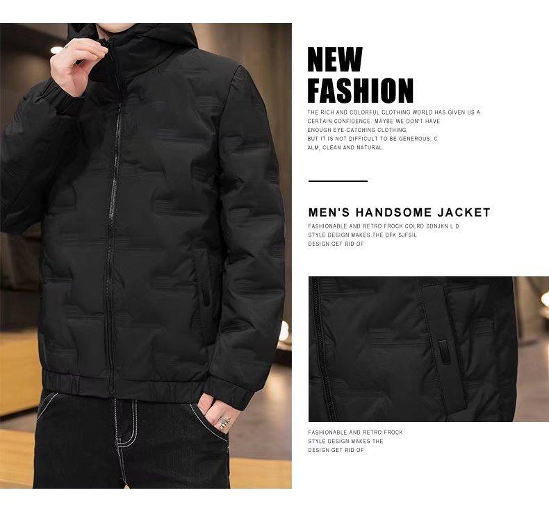 Abrigo ligero juvenil de algodón acolchado para hombre, otoño e invierno, nuevo abrigo negro con capucha de talla grande, abrigo de algodón cálido de color liso que combina con todo, ropa de invierno