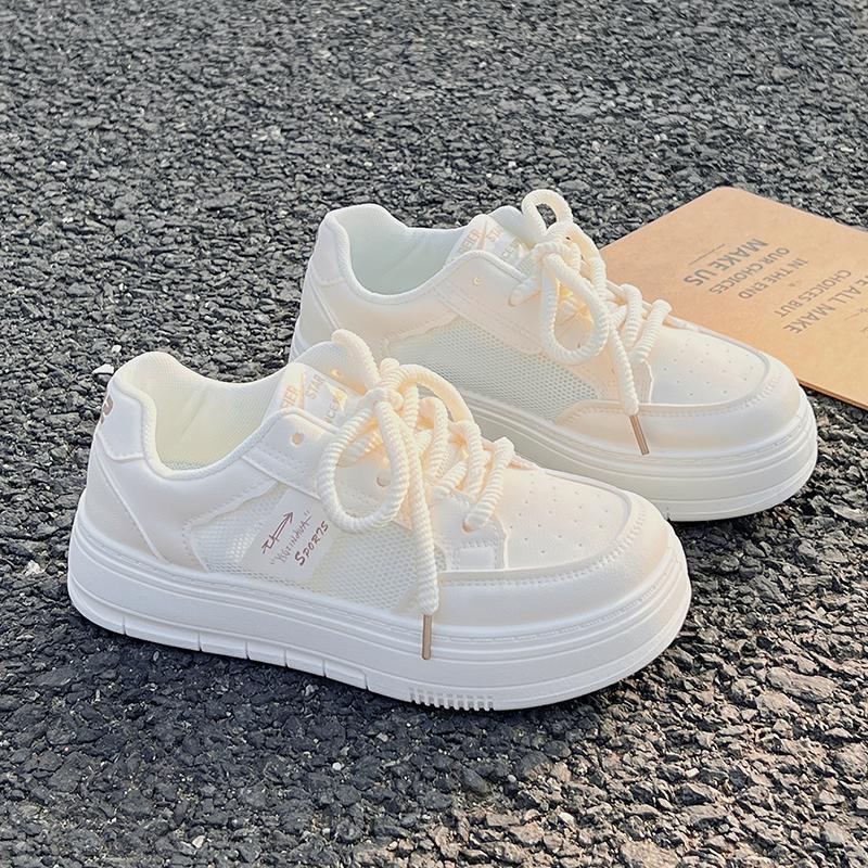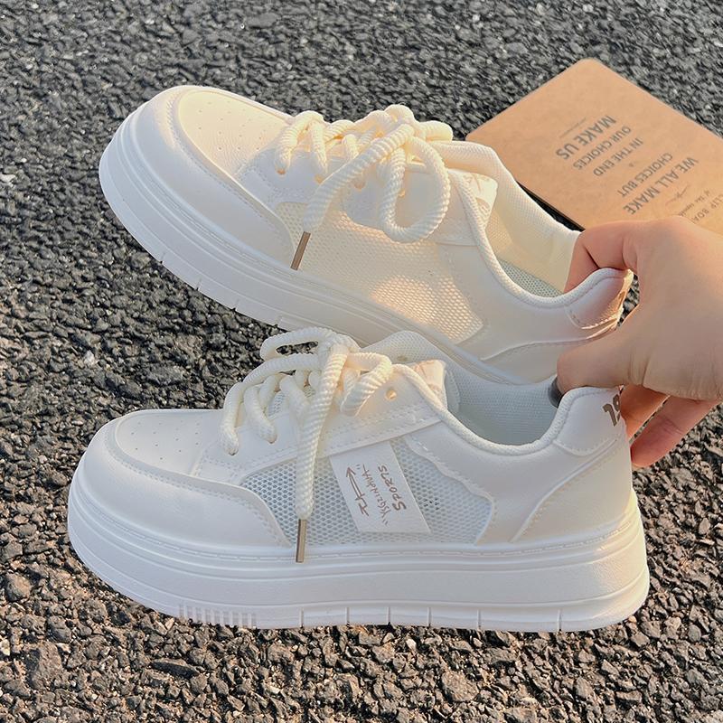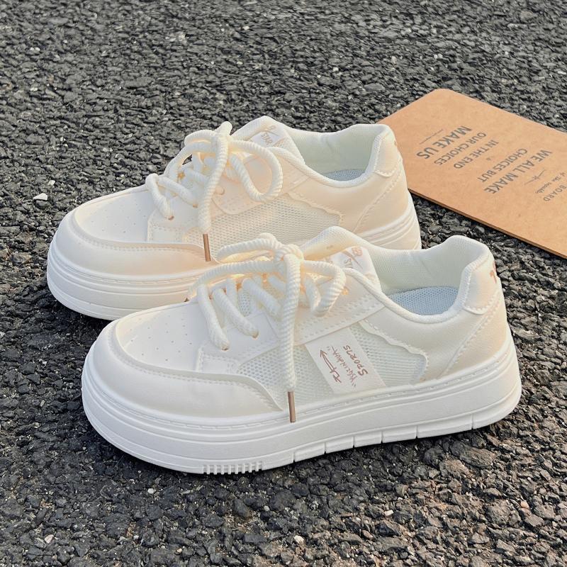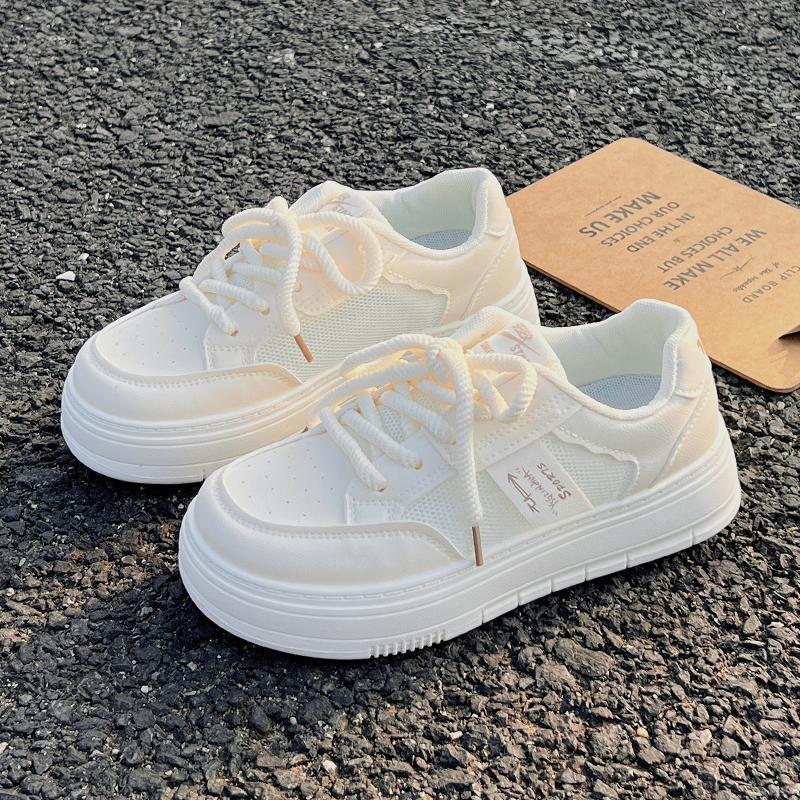 Tenis Blancos para Mujer Verano 2024 Malla Delgada Transpirable Zapatos Deportivos Zapatos de Corte Bajo Estudiante con Cordones Cruzados Verano Nuevo Estilo